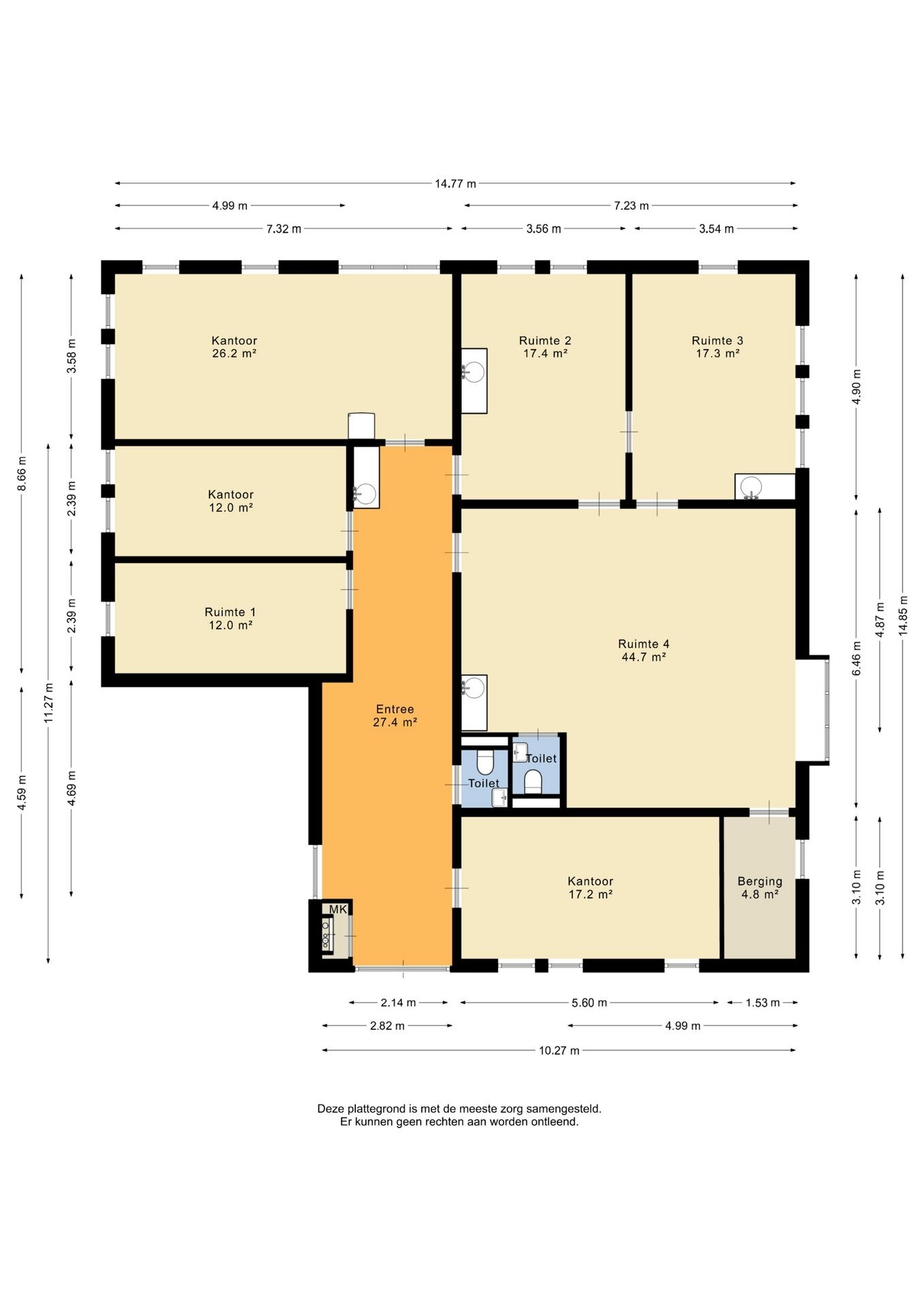 Object: kantoor / praktijkruimte op de 1e verdieping, onderdeel uitmakend van een medisch centrum. Vloeroppervlakte: - circa 100 m² kantoor / praktijkruimte - circa 28 m² toeslag algemene- en gezamenlijke ruimte. Totaal 128 m² De navolgende kamers behoren tot het gehuurde: Kamer 1: 12 m² Kamer 2: 17,4 m² Kamer 3: 17,3 m² Kamer 4: 49,5 m² De overige ongenummerde kamers…