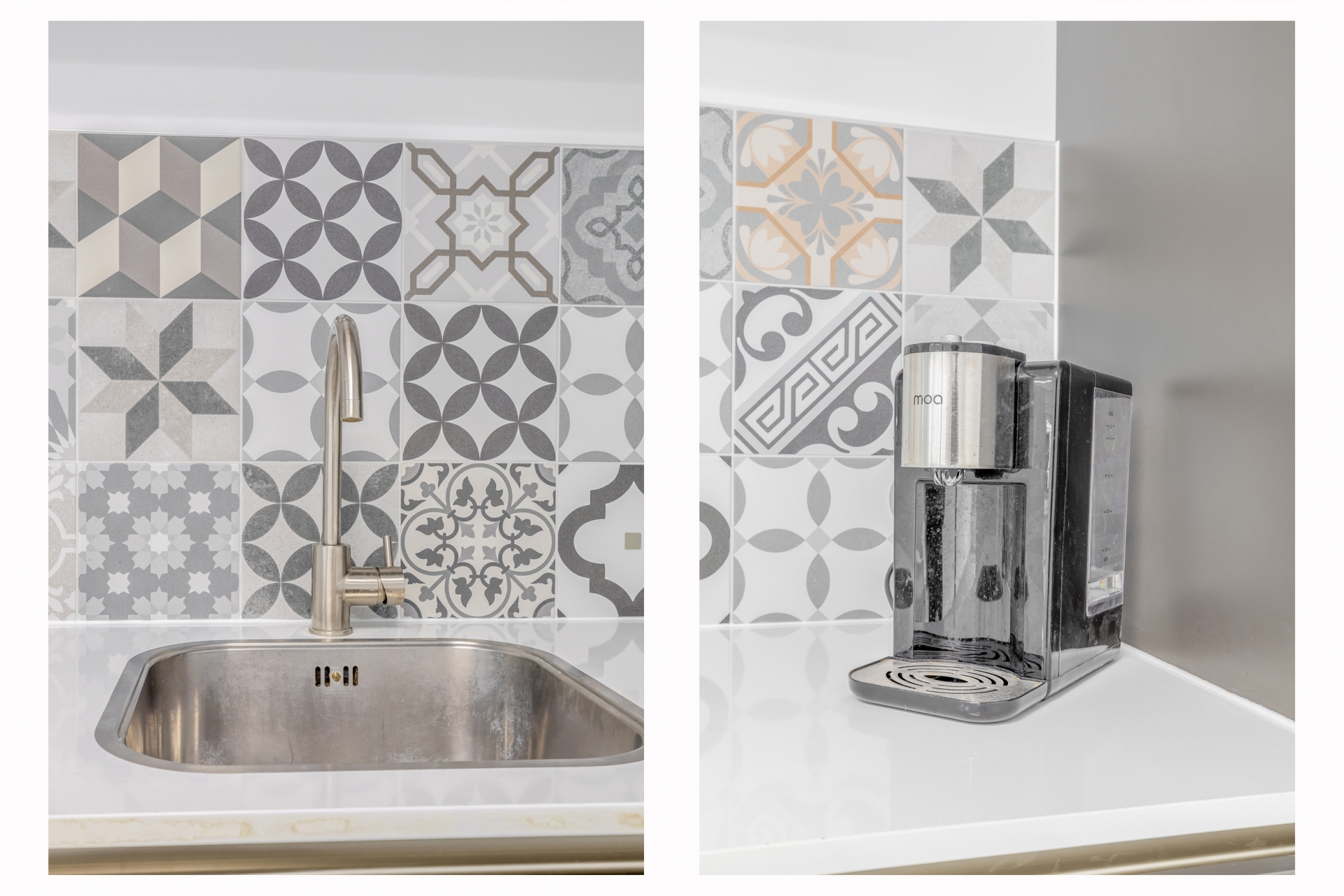 - Keuken met gootsteen, koelkast, combimagnetron, boiler en vaatwasmachine