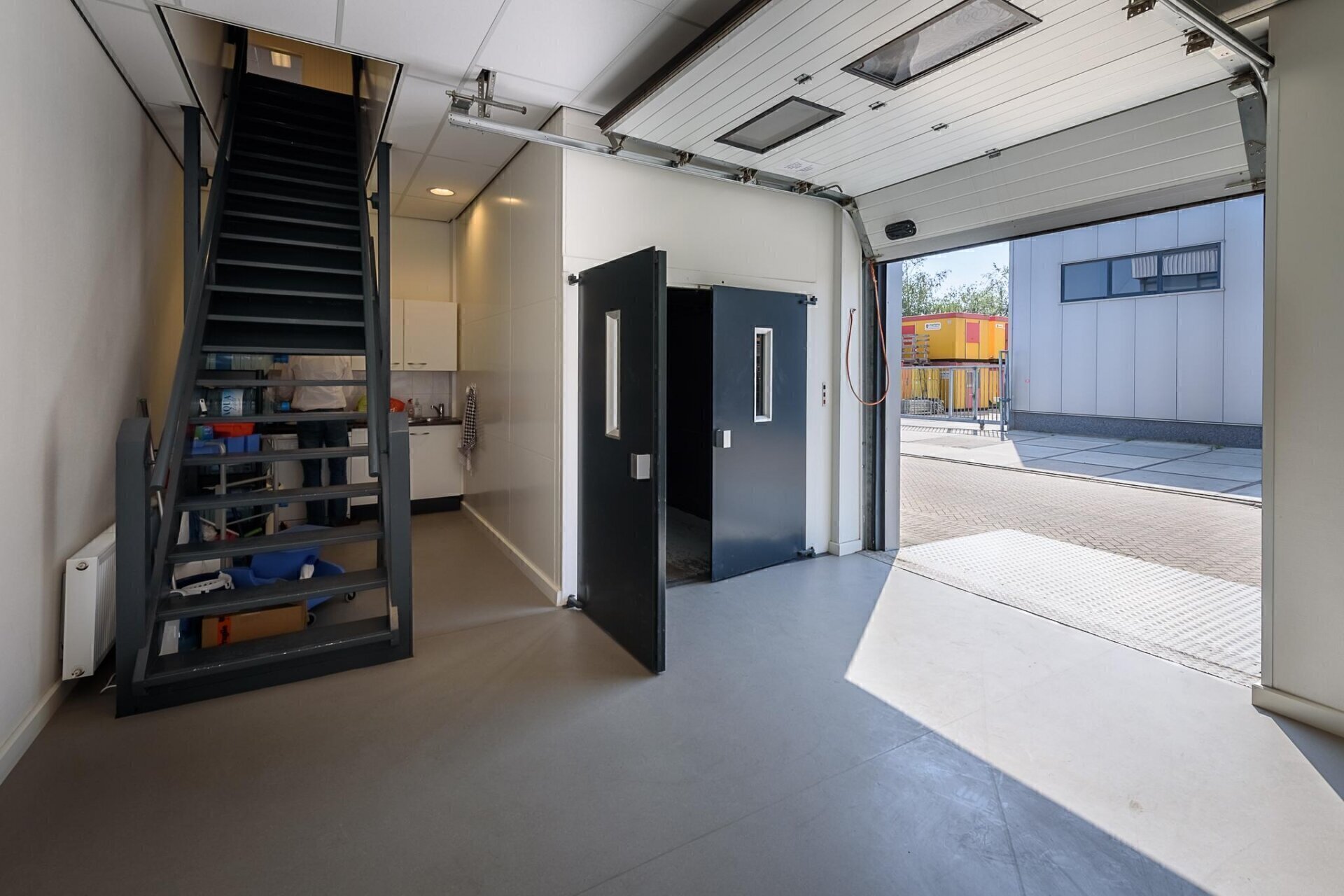 Opslagruimte met diverse kleinere werkruimtes en kantine welke bereikbaar zijn met de goederenlift.