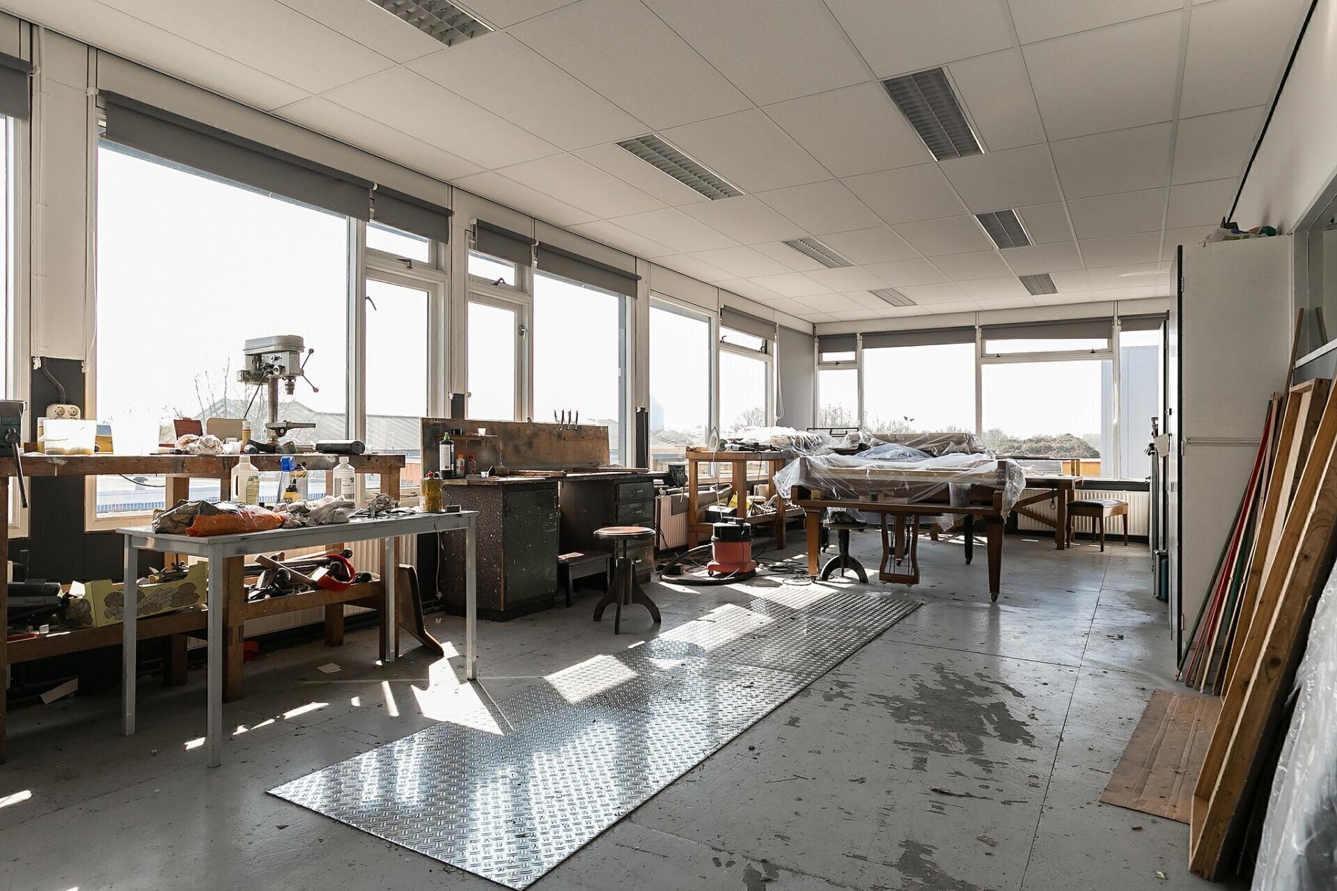 • systeemplafond (3m hoogte), voorzien van verlichtingsarmaturen;