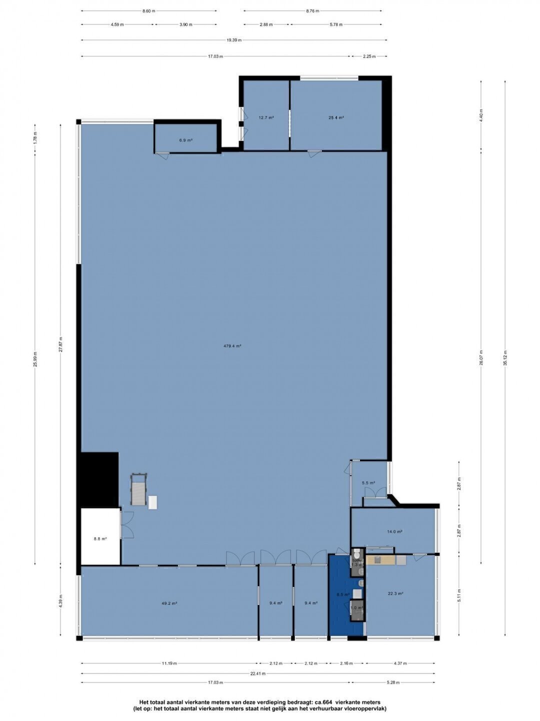 1e verdieping ca. 664 m²