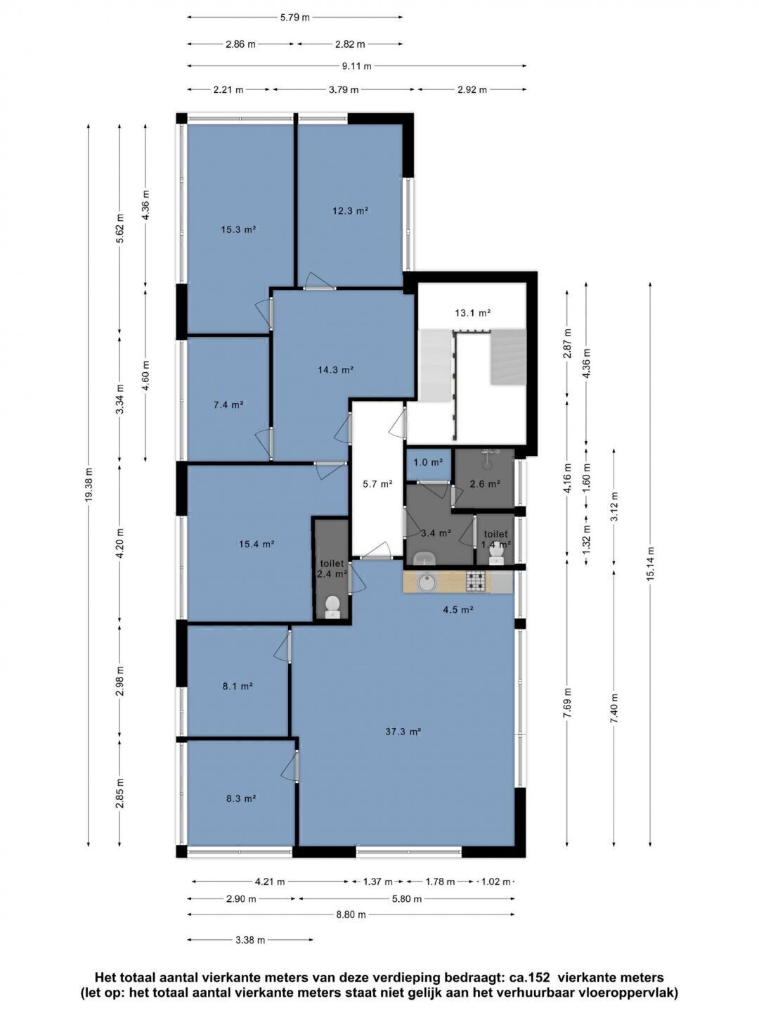 SEPARAAT BOVENGELEGEN KANTOOR ca. 152 m² (bereikbaar via separaat trappenhuis)