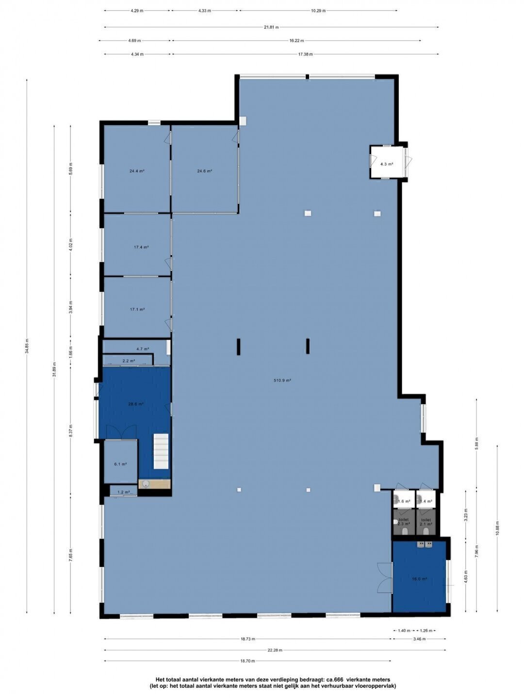 - Oppervlakte kantoor ca. 1482 m2