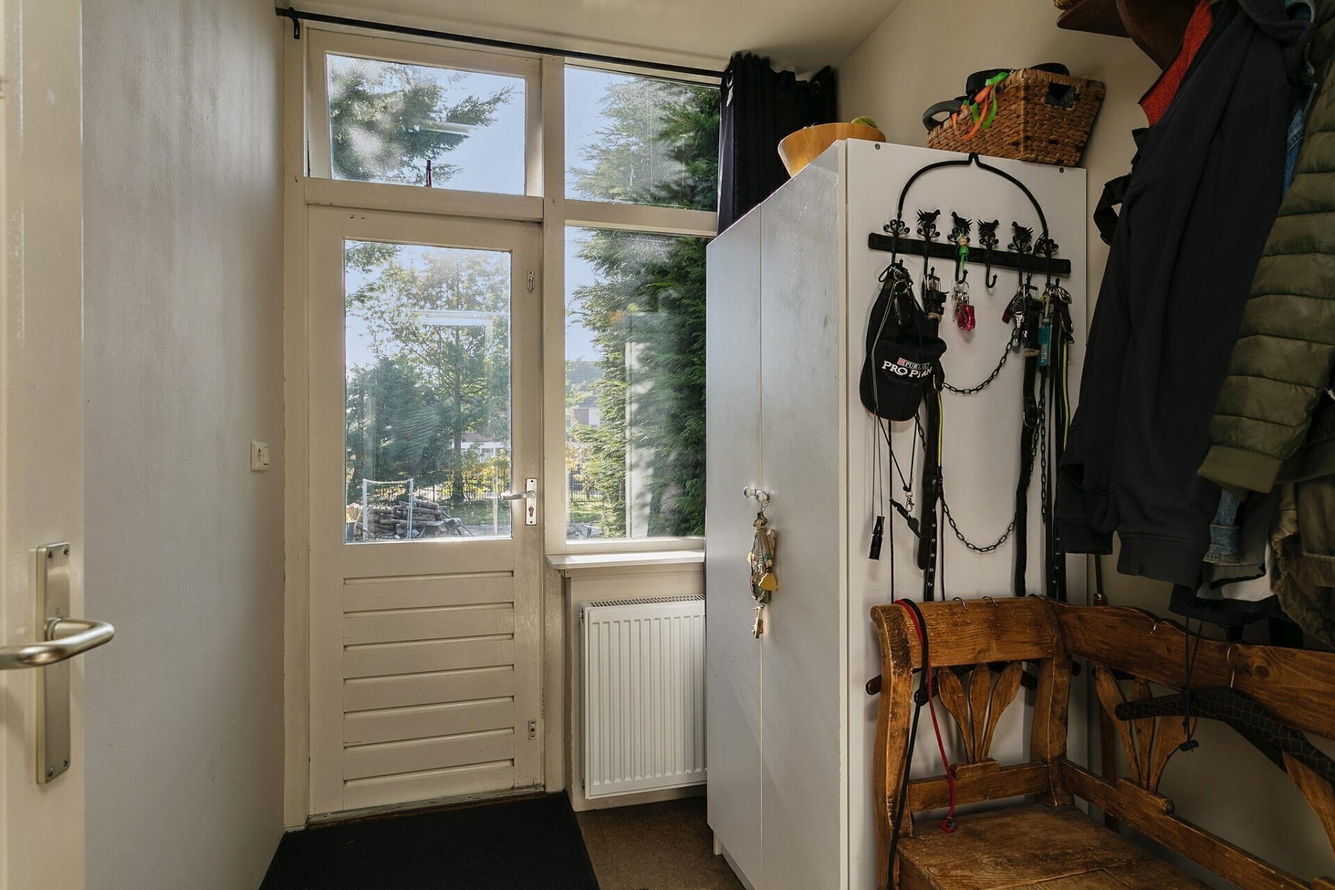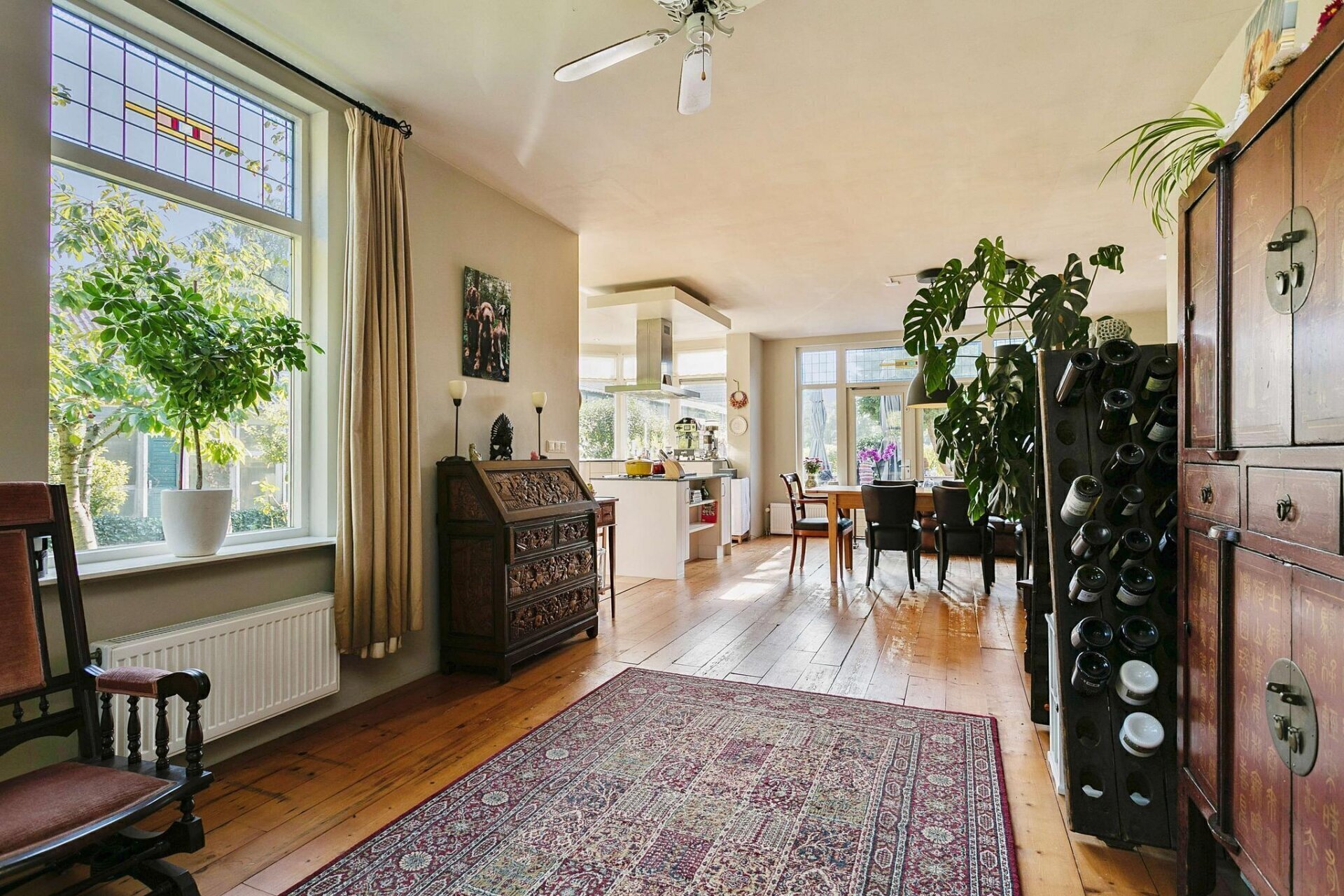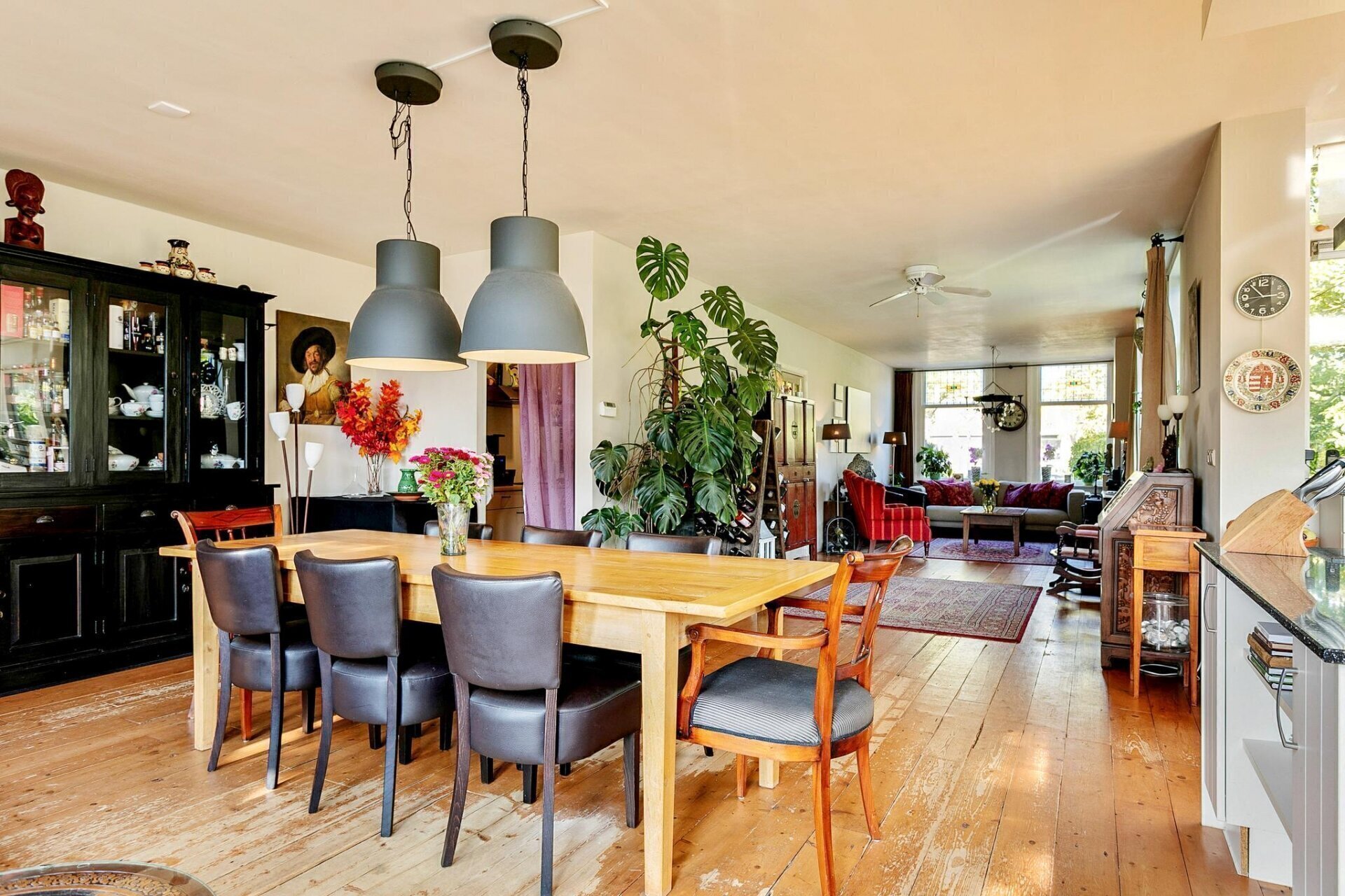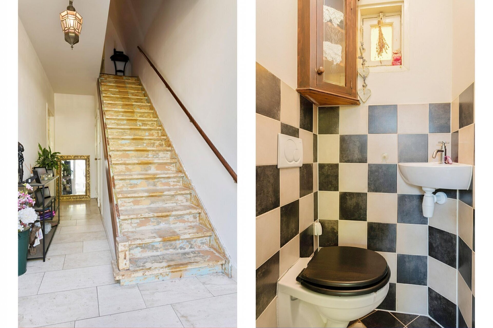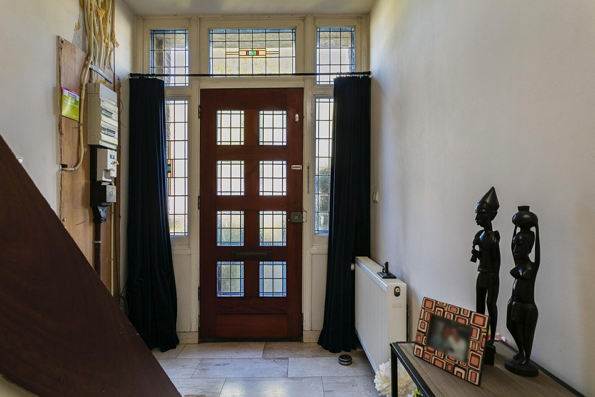 Imposante intreden met veel originele details zoals het “Melkmeisjes kozijn†met origineel glas in lood, het trappenhuis welk u toegang geeft nar de etage en tot de ruimtes op de begane grond. woning waaronder het toilet, de kelder en woonkamer.