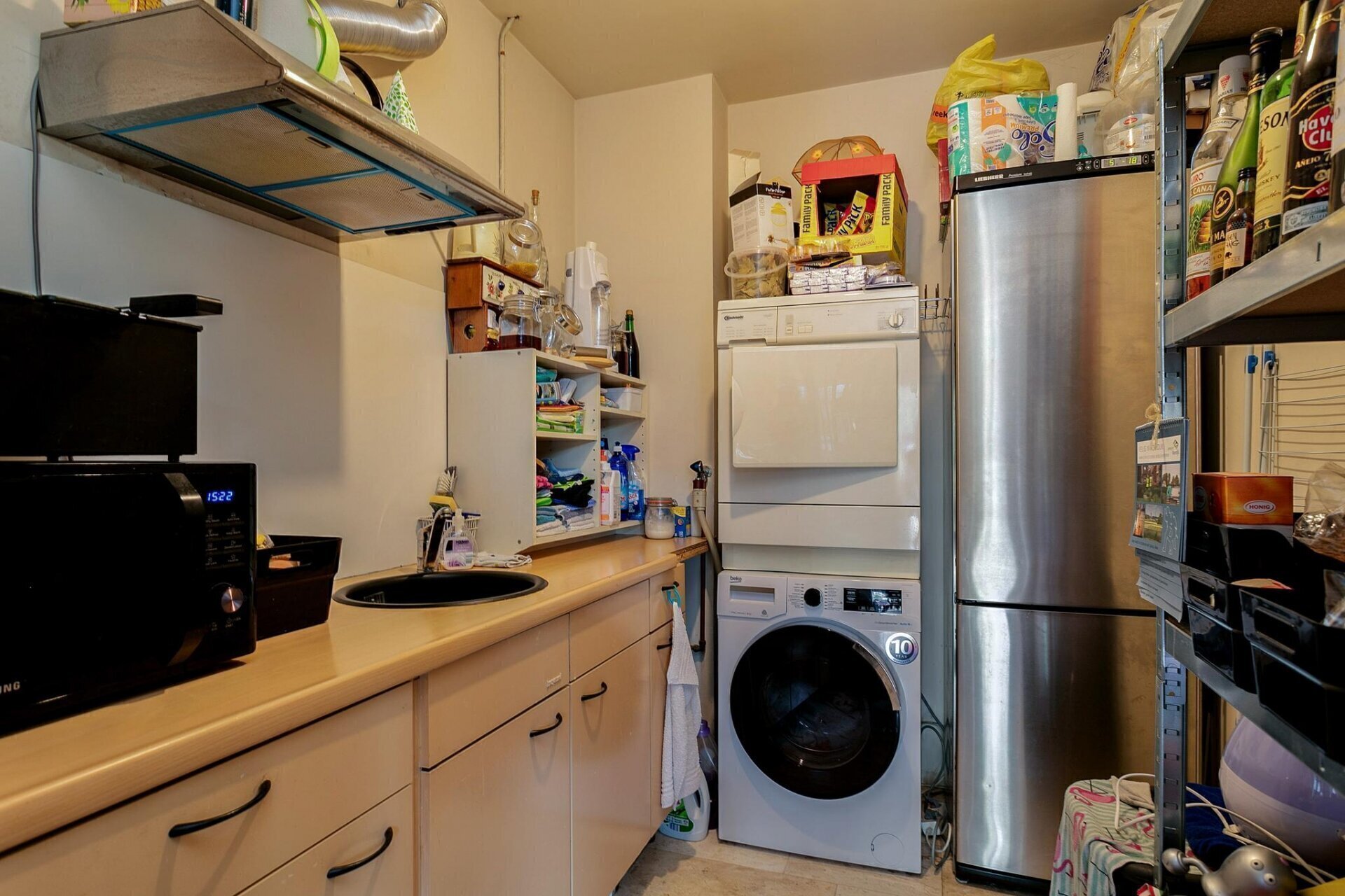 De oude keuken is omgebouwd naar een bijkeuken met de opstalplaats van de was- en droogvoorzieningen en CV- ketel (Viking HR 2008). Via de woonkeuken komt u in de berging/hal deze geeft doorgang naar de tuin.