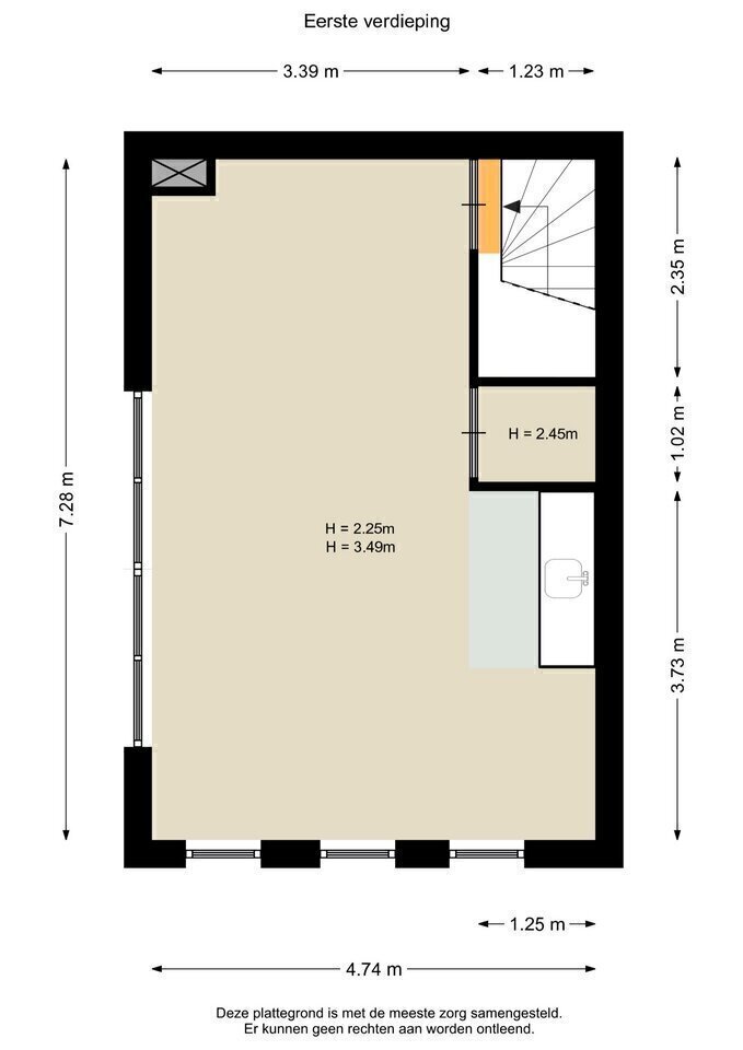 Vloeroppervlakte: totale circa 104 m² BVO, verdeeld over;
