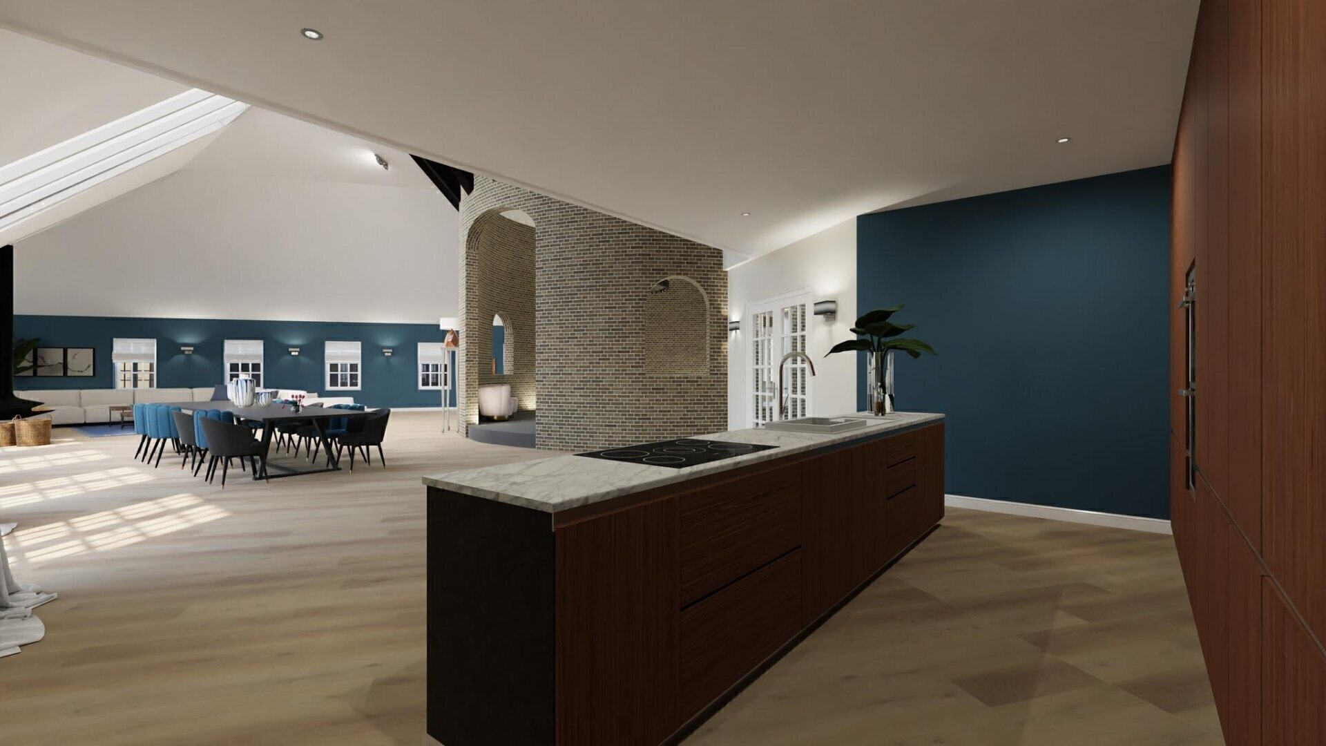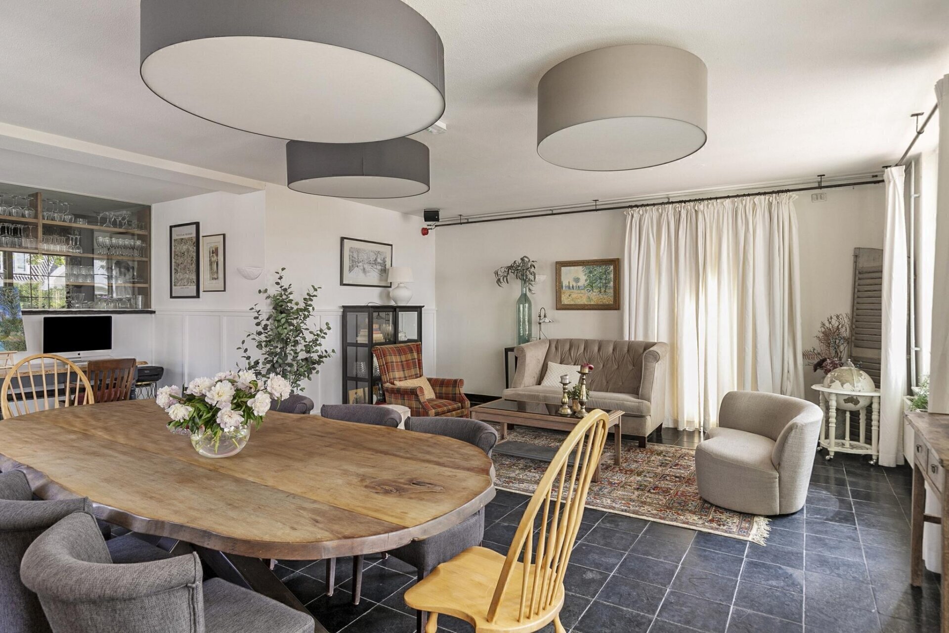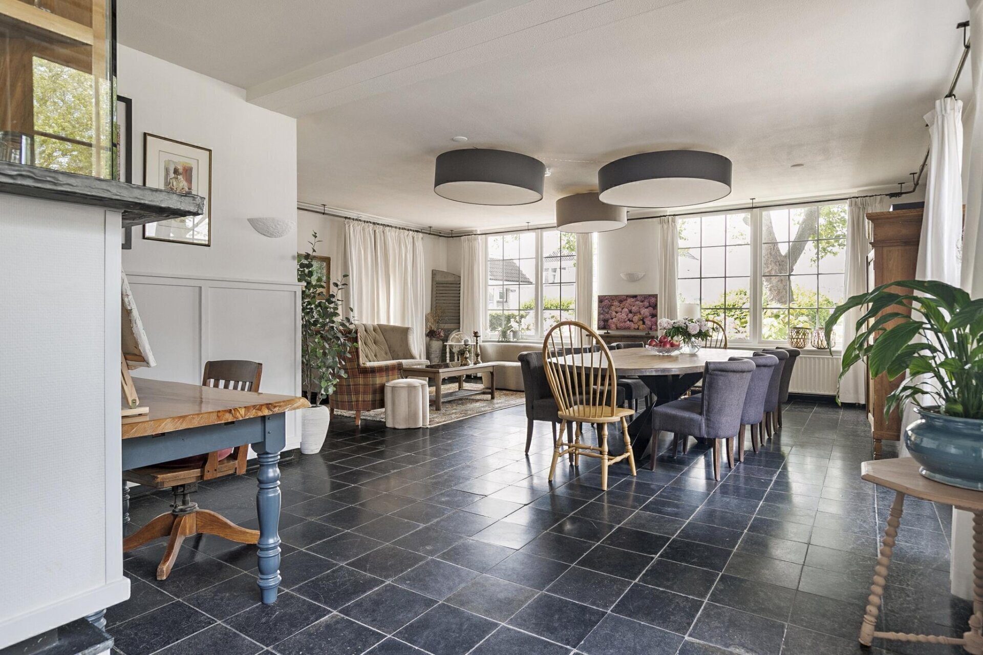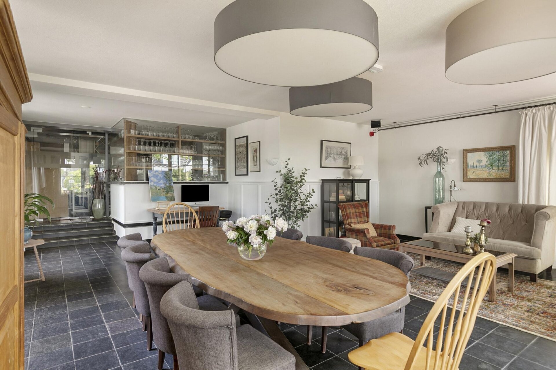 De rechtervleugel is een open ruimte waarbij u tot in de nok kunt kijken, wat een zeer ruimtelijk effect geeft mede door de vele raampartijen.