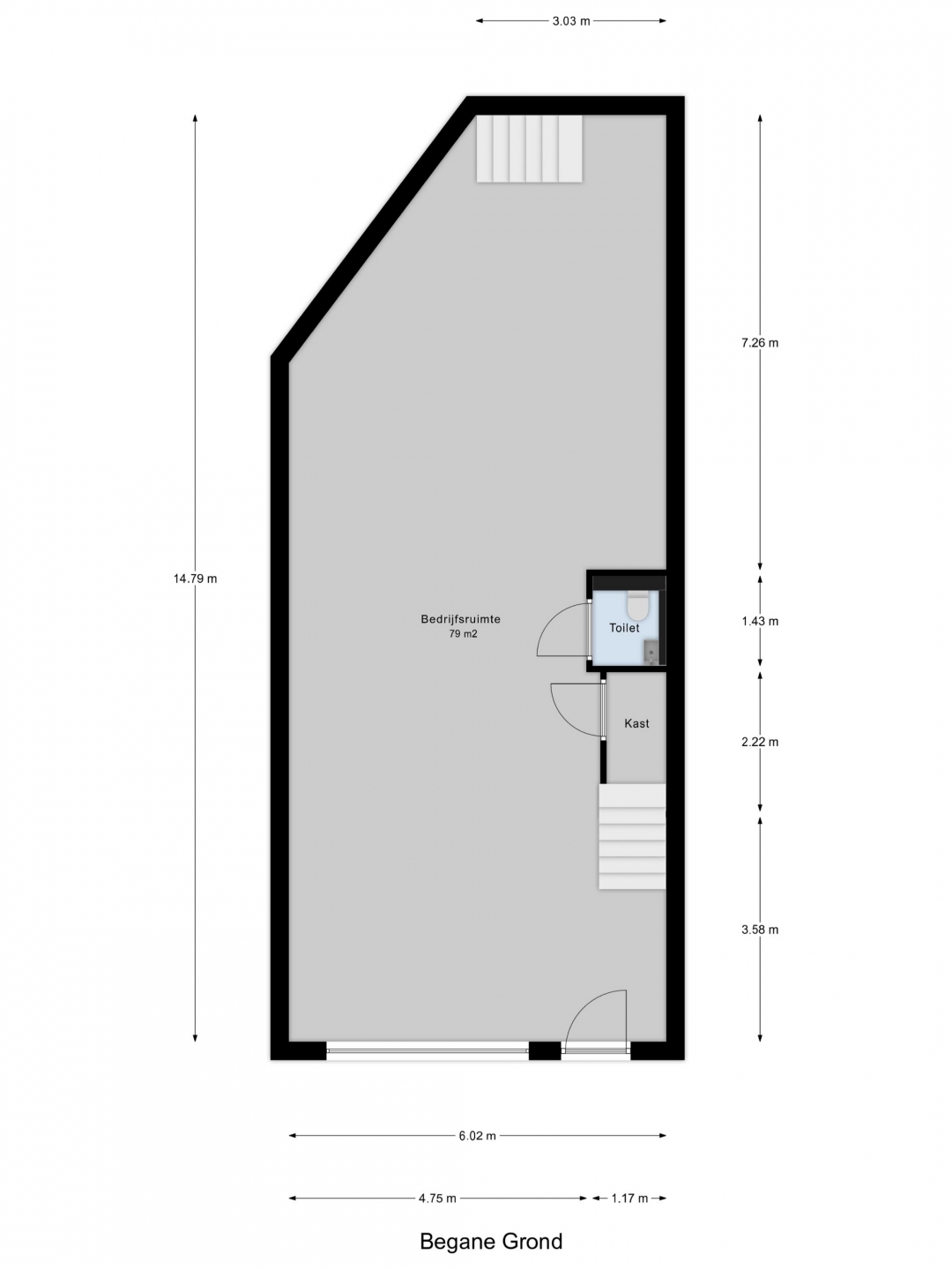 begane grond: ca. 77 m² bvo;