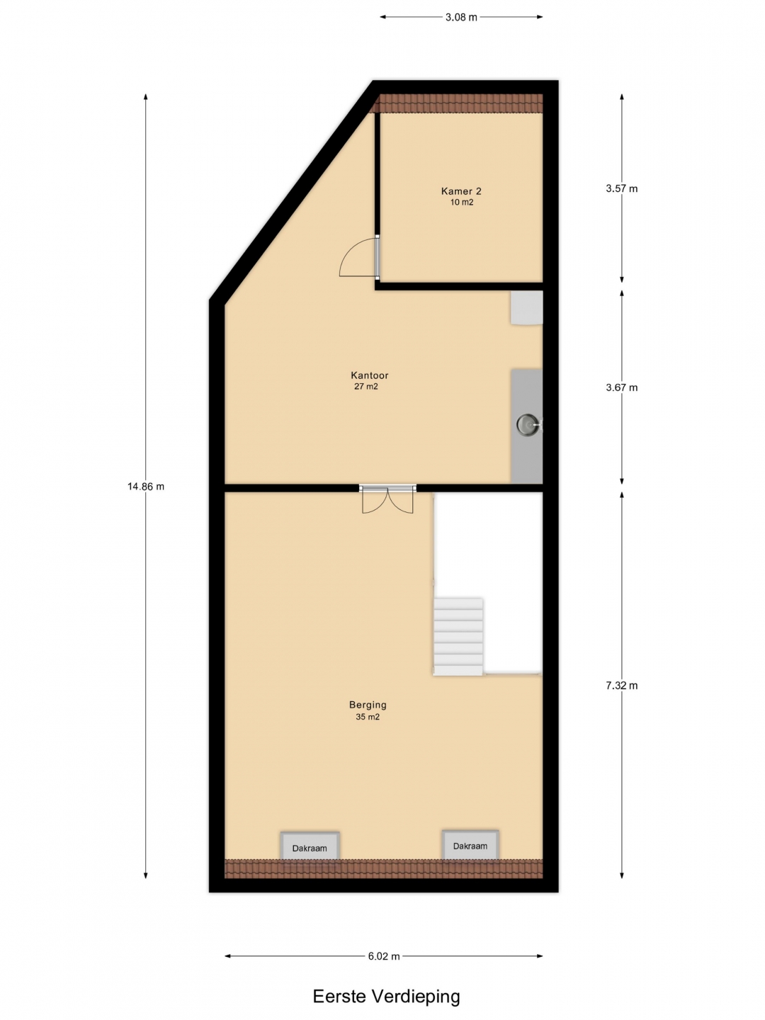 eerste verdieping: ca. 77 m² bvo.