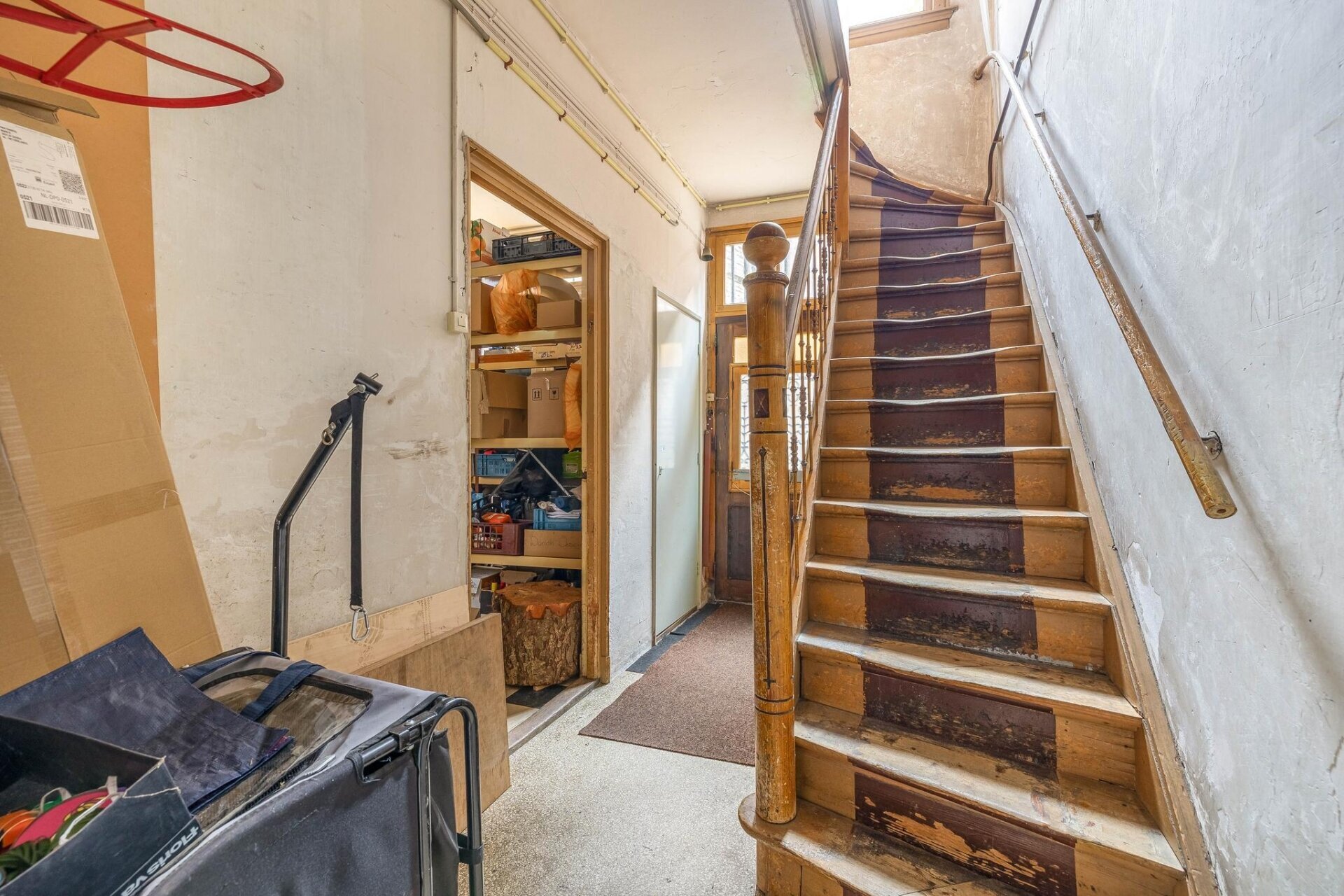 Werkkamer met vaste kasten. Het achterhuis is nog niet gemoderniseerd en biedt volop potentie: denk aan het creëren van een zelfstandig appartement, een B&B, werkruimte of extra slaapkamers. Het kan eventueel intern worden verbonden met het voorhuis.