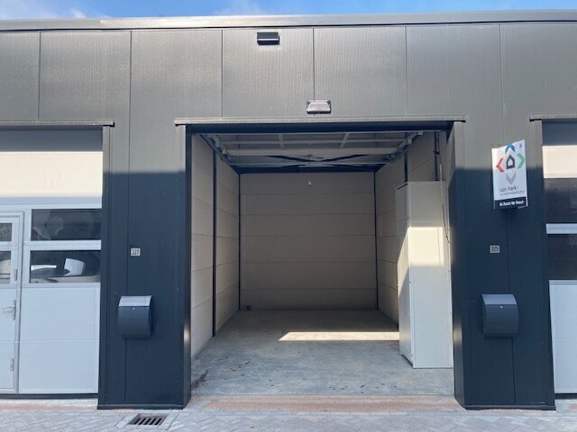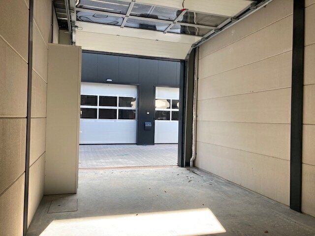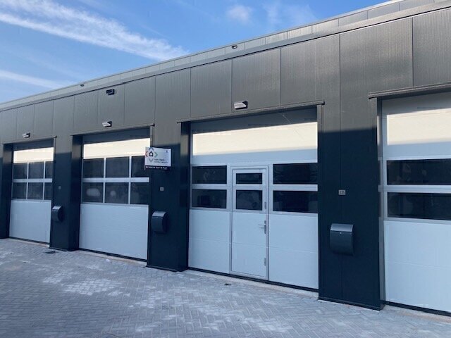- elektrische bediende geïsoleerde sectionaaldeur (3.2 m1 b. x 3.6 m1 h.) met loopdeur;