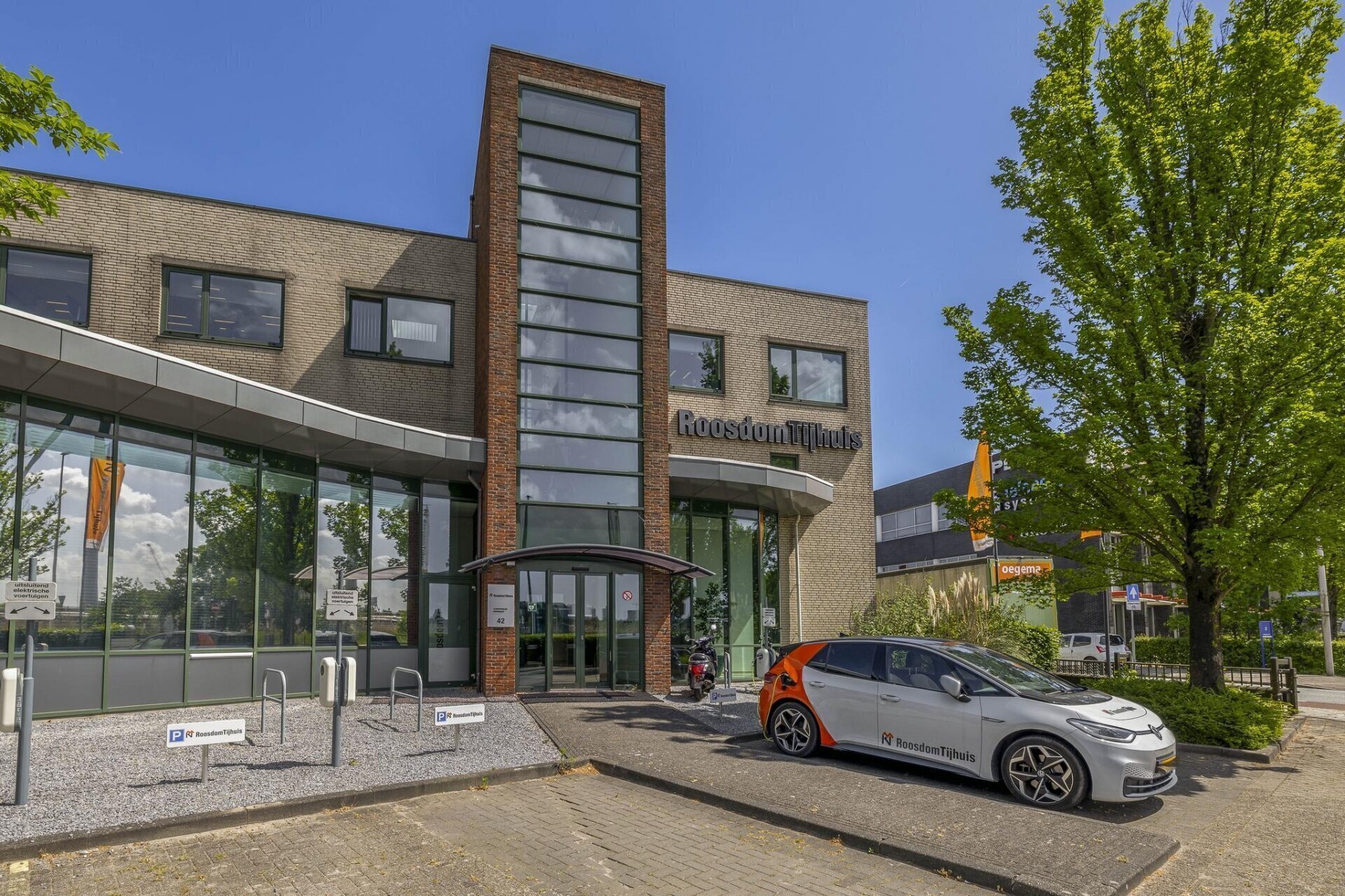 Op eigen terrein zijn 8 parkeerplaatsen beschikbaar, waarvan een deel met laadpalen voor elektrische voertuigen.