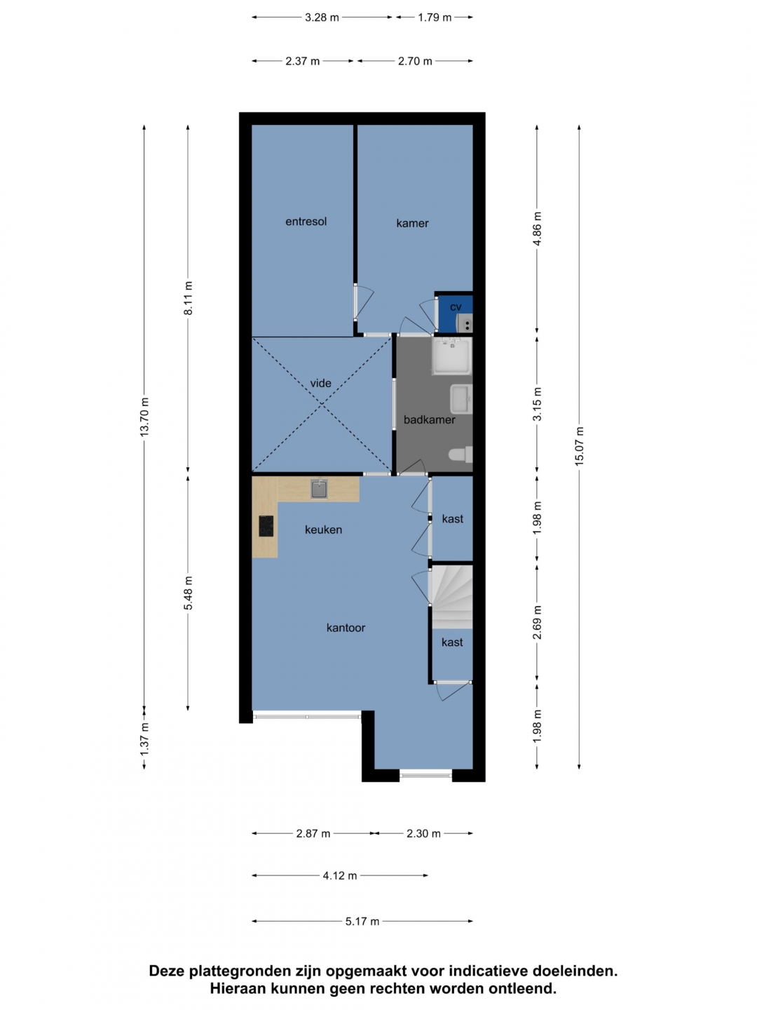 Vrije hoogte onder entresol: ca 2,75 m¹
