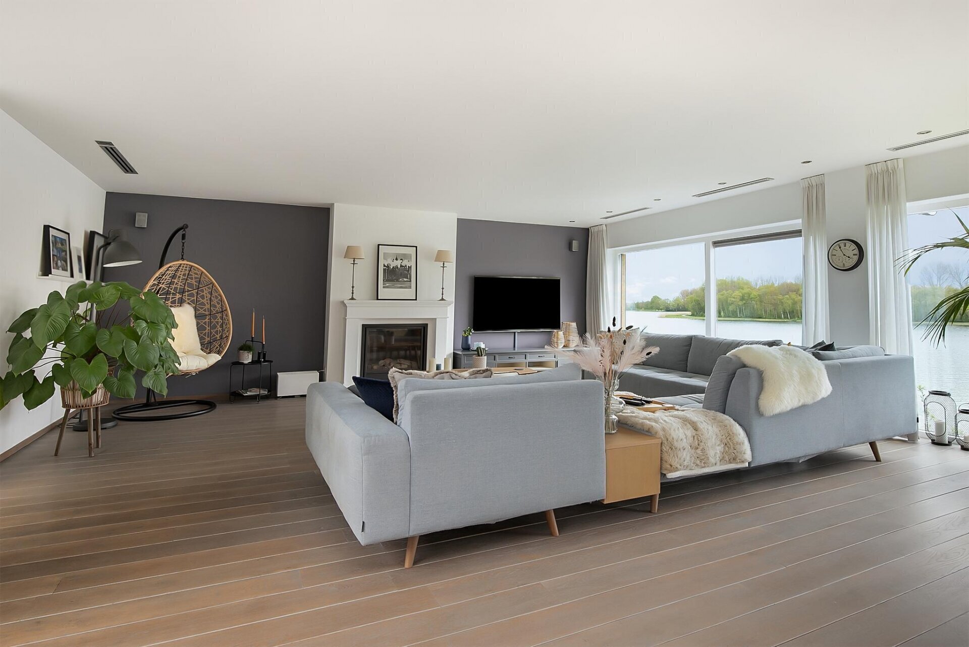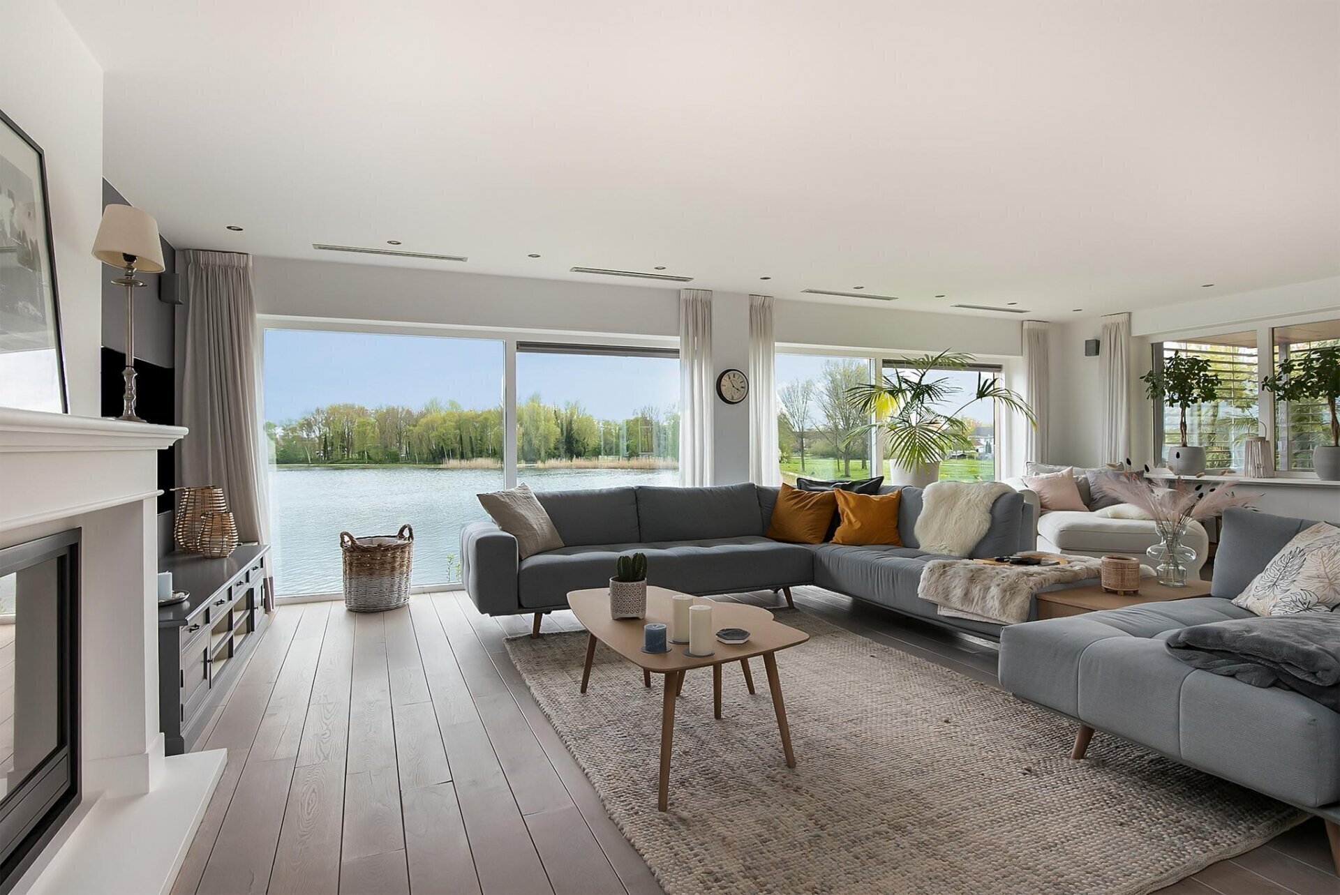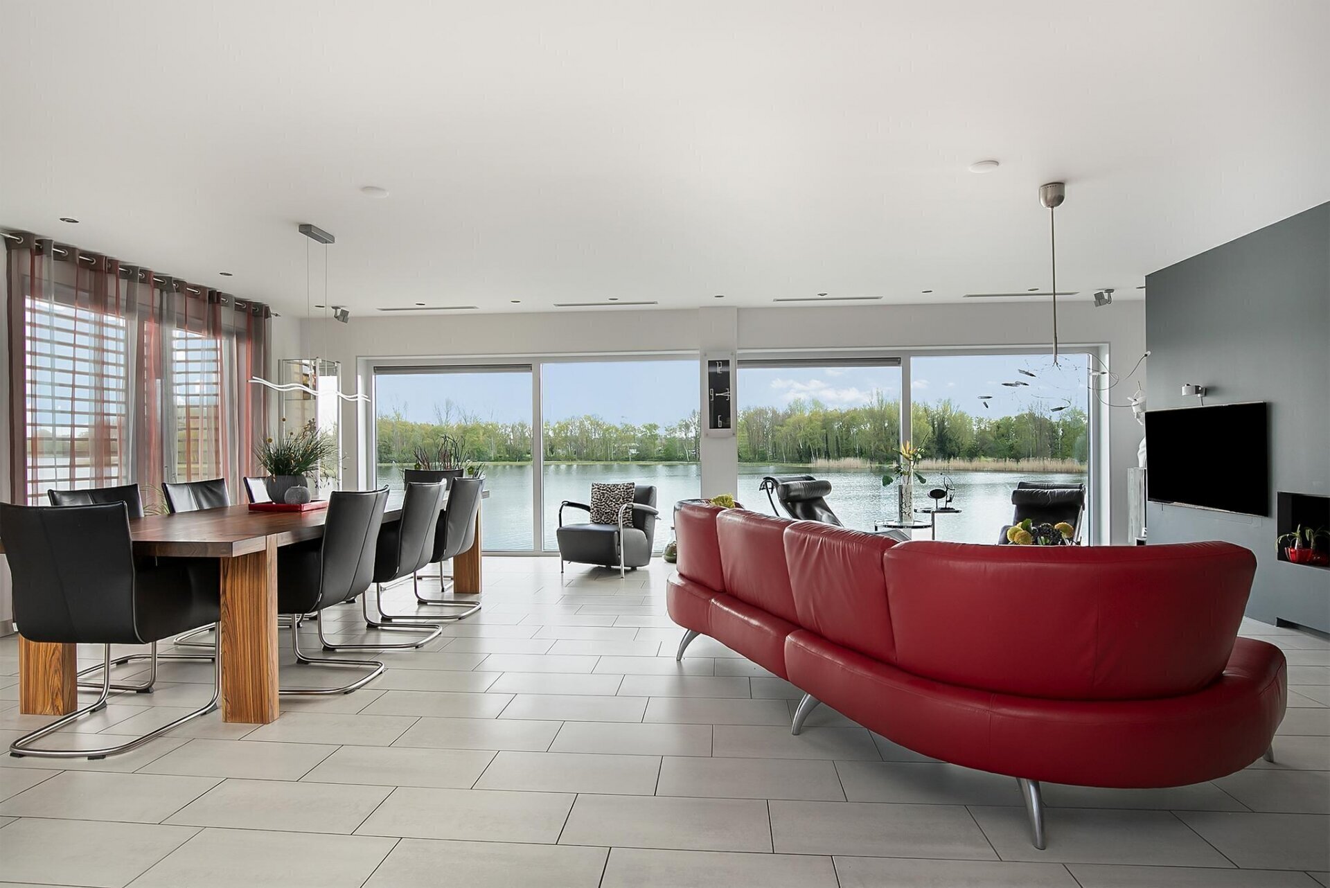 De hele kavel grenst aan het water, met een steiger en zelfs een stukje strand! Denkt u aan alle mogelijkheden van recreatie, sport en ontspanning die hier te realiseren zijn.