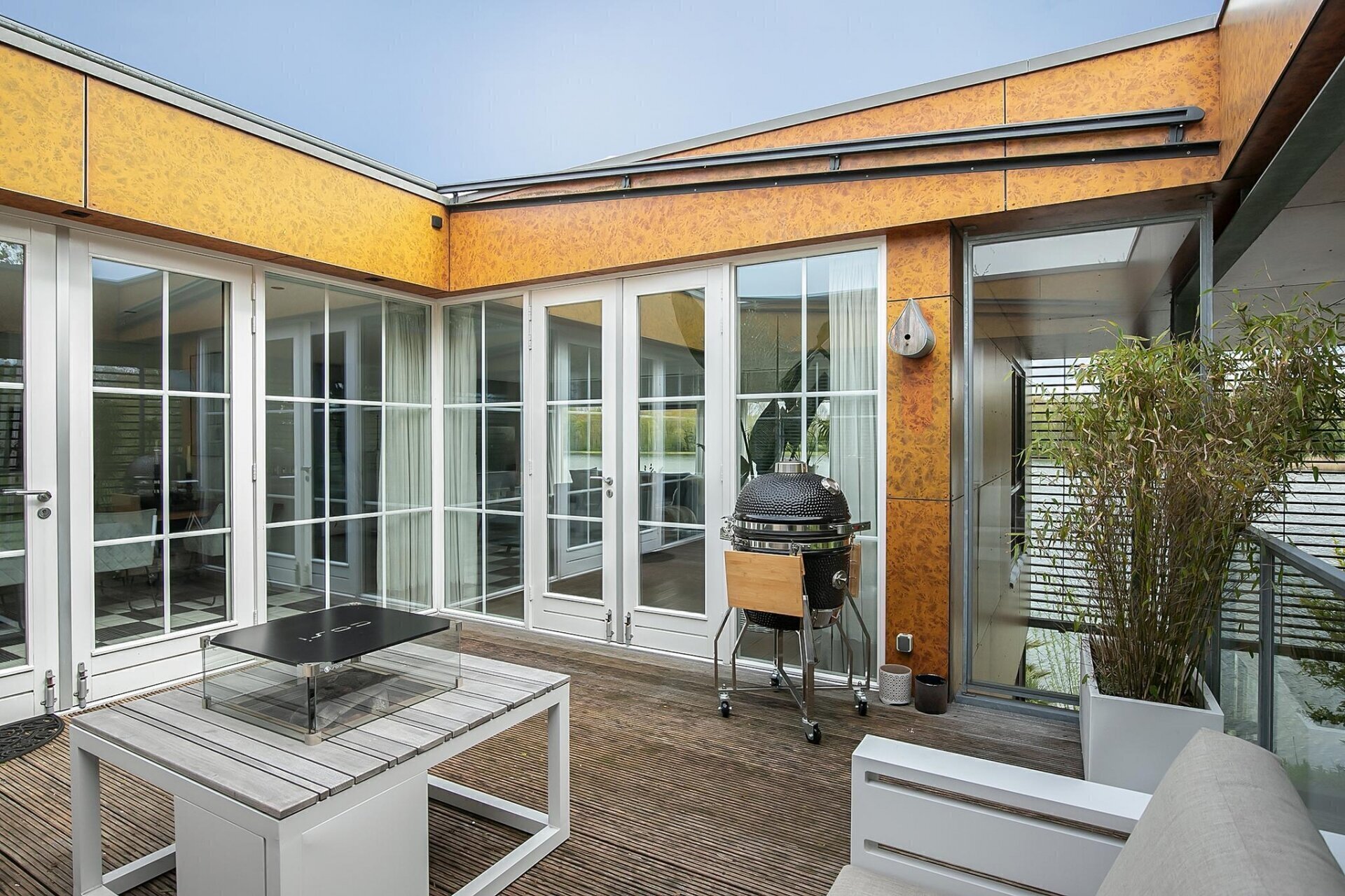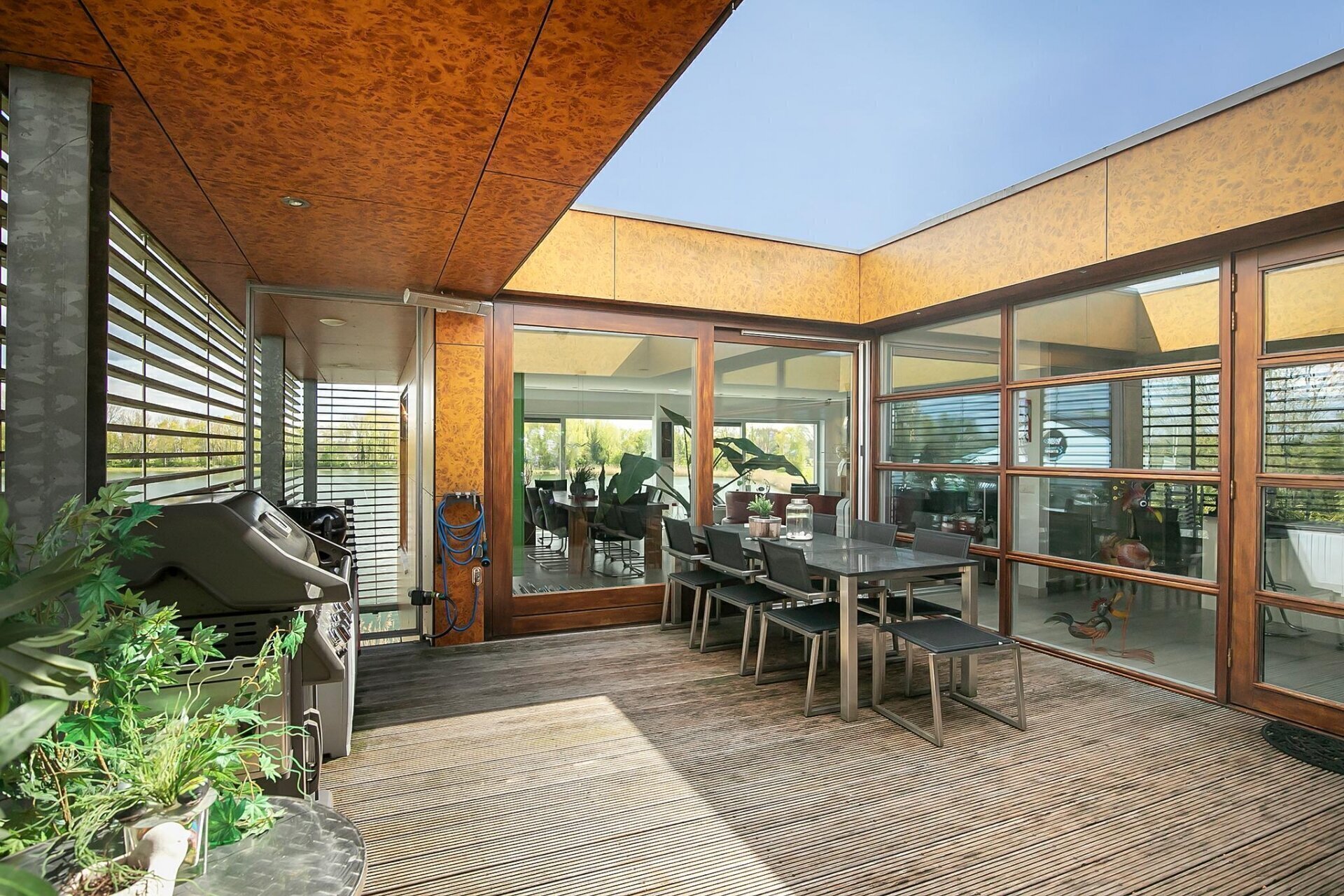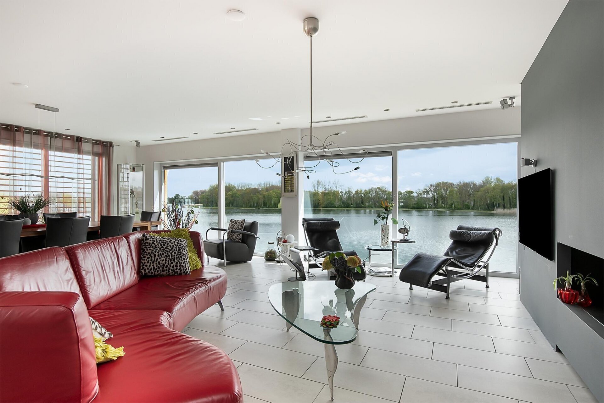De hele kavel grenst aan het water, met een steiger en zelfs een stukje strand! Denkt u aan alle mogelijkheden van recreatie, sport en ontspanning die hier te realiseren zijn.