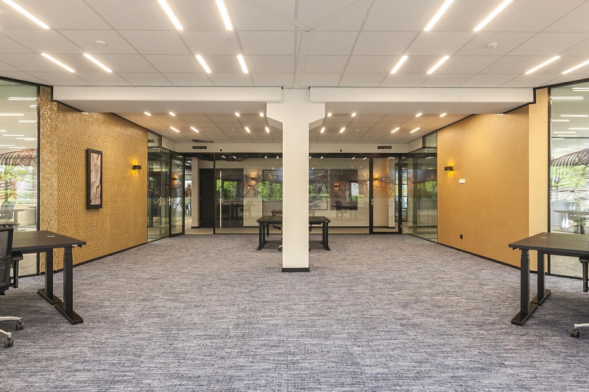 Dit kantoorgebouw is volledig getransformeerd waarbij er een combinatie is gemaakt van vernieuwende architectuur en moderne technieken en IT faciliteiten. Aanvullend een fantastische lounge area met onder meer de ‘living room’ voor informeel overleg en de ‘Green room’ (vergaderruimte ‘de kas’), waarbij u binnen in het echte groen het buitengevoel krijgt. En niet te vergeten de ‘Travel room’ voor grotere groepen. Naast vergaderen kunt u deze ruimtes ook reserveren voor uw borrel, bijeenkomst of lunch. Iedere kantoorruimte op de begane grond is voorzien van vloerverwarming/vloerkoeling en daglicht gestuurde verlichting. Ook beschikt iedere ruimte over aanvullende koeling! Zowel daglicht als aanvullende koeling kunt u regelen via een smartphone of tablet. Uw bezoekers worden bij binnentreden ontvangen door een hostess in de centrale meet & greet area.