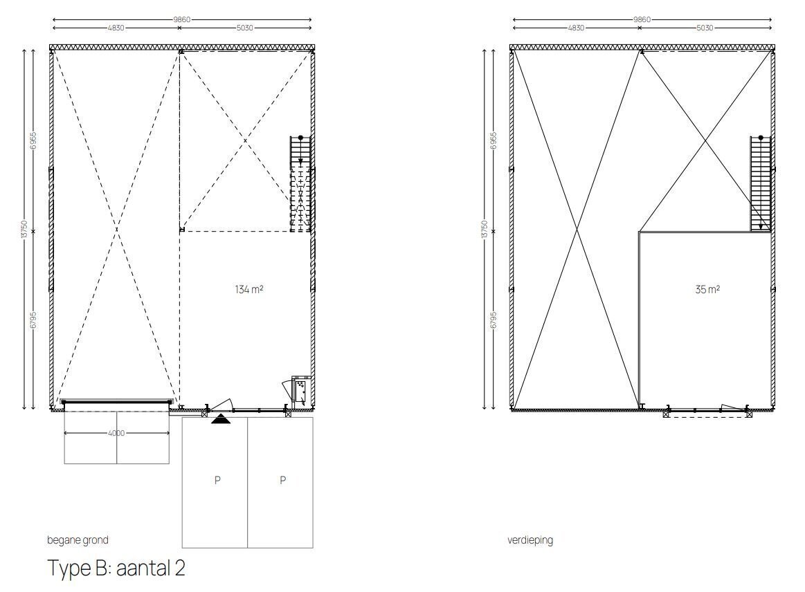 De units beschikken over een vrije hoogte van ca. 8 m1 meter op de begane grond, op het deel waar geen verdiepingsvloer boven ligt.