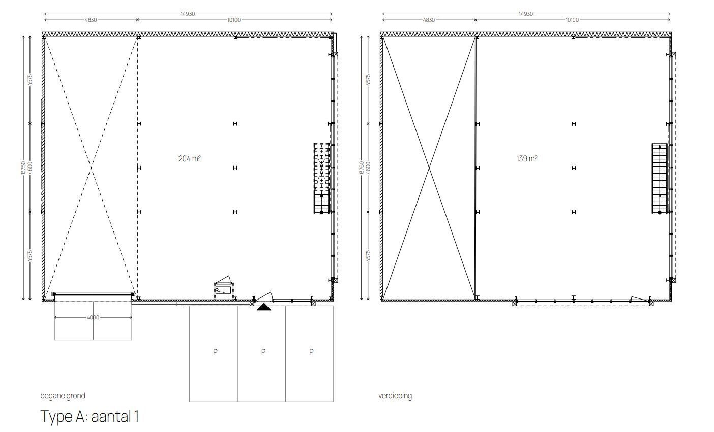 De units beschikken over een vrije hoogte van ca. 8 m1 meter op de begane grond, op het deel waar geen verdiepingsvloer boven ligt.