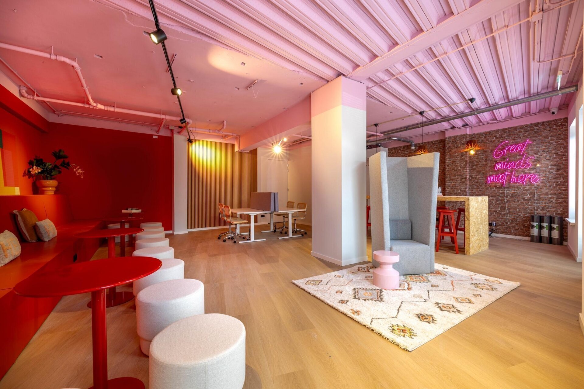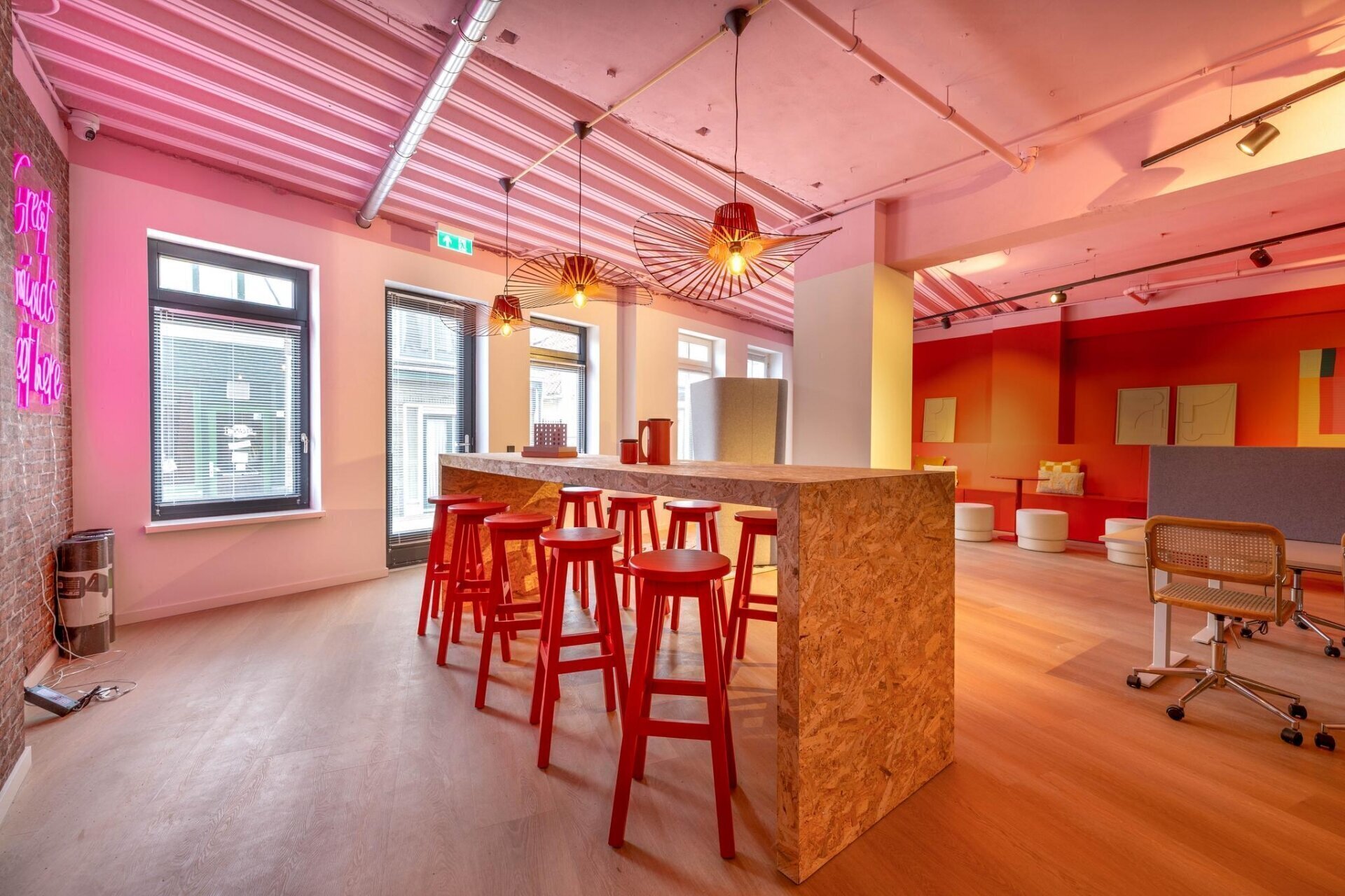 De ruimte is in 2023 compleet vernieuwd, inclusief installaties, afwerking en sanitair. Het resultaat? Een eigentijdse en creatieve kantooromgeving met een warme uitstraling, design verlichting, industriële details en diverse werkzones. De kantoorruimte heeft een oppervlakte van ca. 71 m², een hoogte van 2,54 meter en biedt volop flexibiliteit voor een eigen indeling.
