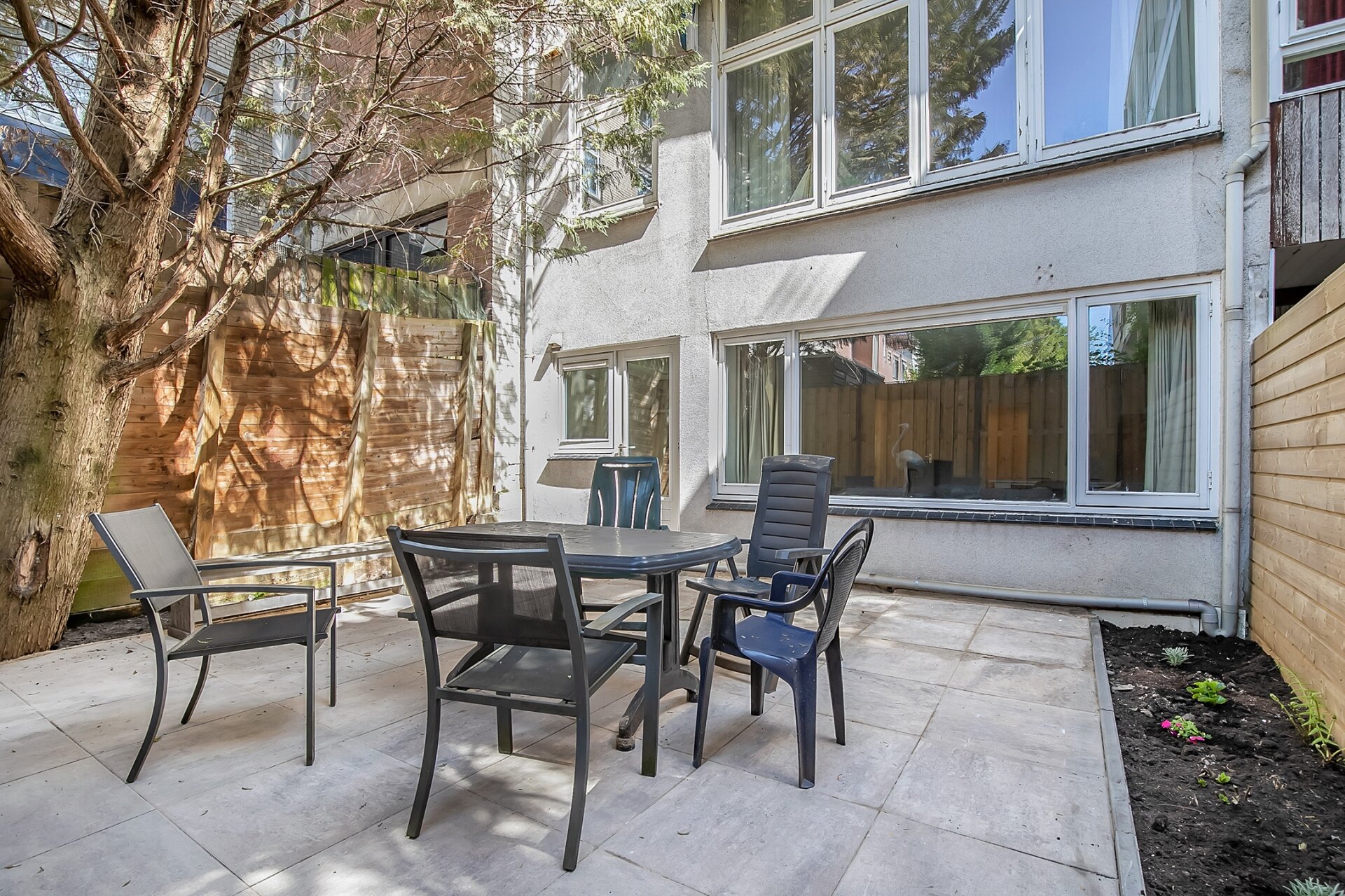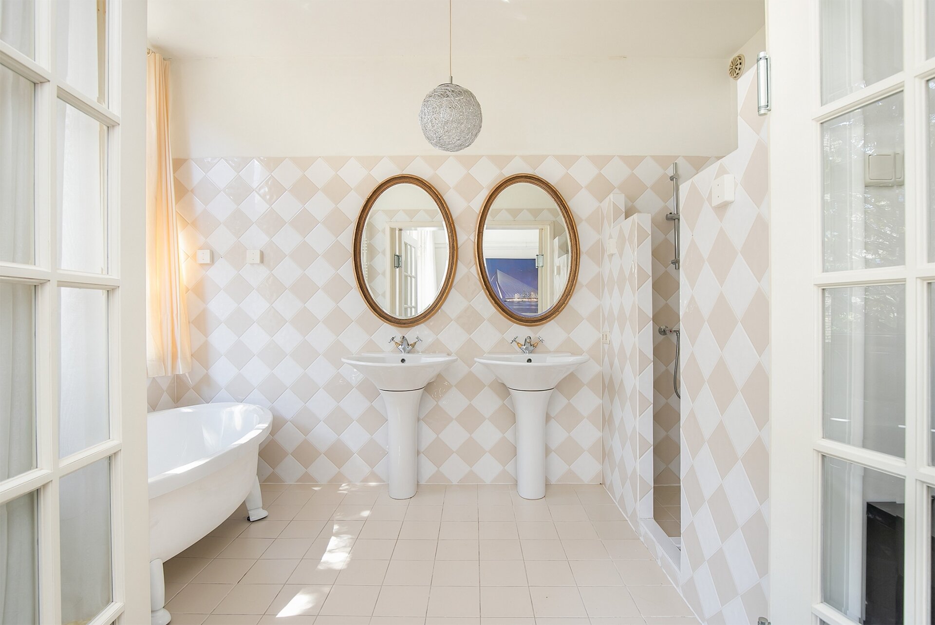 De overloop biedt toegang tot diverse vertrekken. Aan de voorzijde bevindt zich een slaapkamer met ingebouwde kasten en een keukentje. Aan de achterzijde vind je een riante slaapkamer met een brede dakkapel, wastafel en zonnig terras. Op deze etage is er ook een tweede badkamer, voorzien van een ligbad, inloopdouche en wastafel met meubel. Terug in de hal vind je een separaat toilet met wastafel, de opstelling voor de CV-ketels en aansluitingen voor de wasmachine en droger.