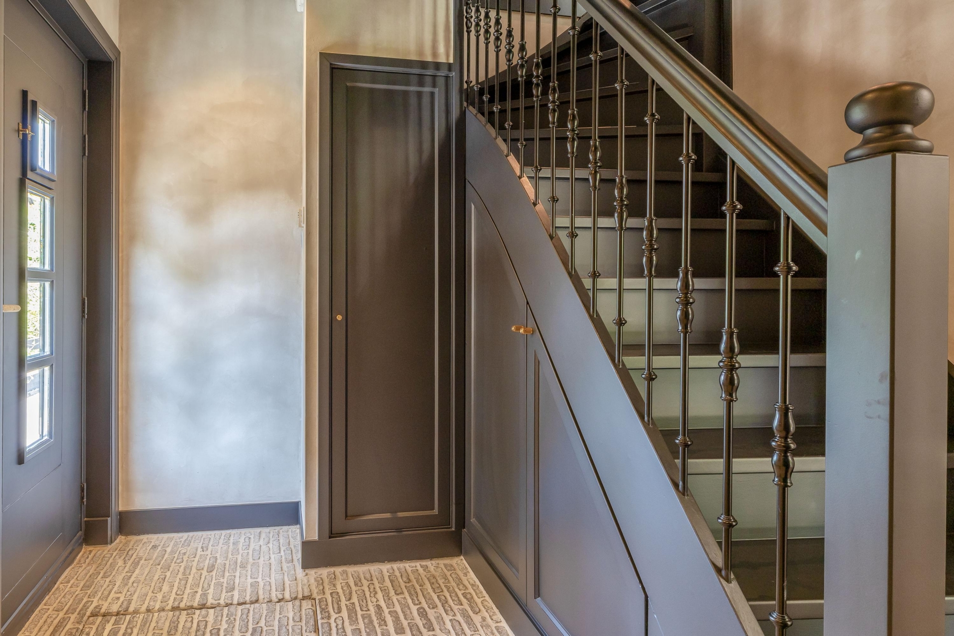 De keuken vormt het kloppend hart van de woning. Hier komen esthetiek en functionaliteit samen in een ruimte die uitnodigt tot koken, tafelen en samenzijn. De combinatie van verfijnde kleurstelling en zorgvuldig gekozen materialen geeft deze keuken een warme, exclusieve uitstraling. Niet alleen is het een volwaardige werkplek voor culinaire creativiteit, maar ook de ideale plek voor lange avonden met vrienden of familie. De open verbinding met de woonkamer onderstreept de samenhang van het interieur.