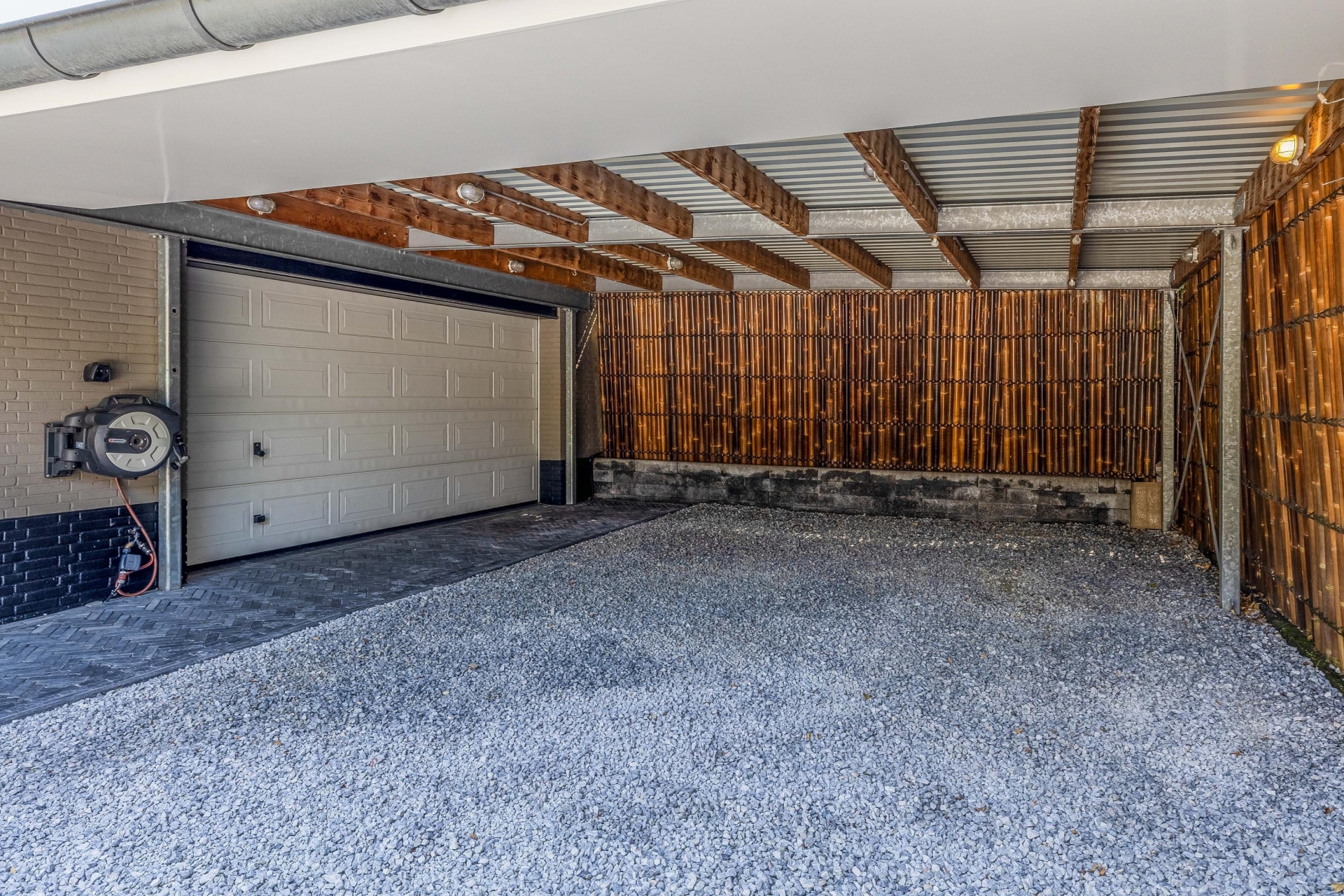 De luxe ervaring wordt doorgetrokken in het bijgebouw, ingericht als comfortabele lounge met bar en eigen toilet. Deze veelzijdige ruimte biedt volop mogelijkheden, zoals een hobbyruimte, thuiskantoor of plek om gasten te ontvangen. De hoogwaardige afwerking sluit perfect aan bij de woning en de tuin. In de royale, verwarmde garage en onder de riante carport is er voldoende ruimte voor meerdere luxe voertuigen. De elektrisch bedienbare toegangspoorten zorgen voor optimale veiligheid.