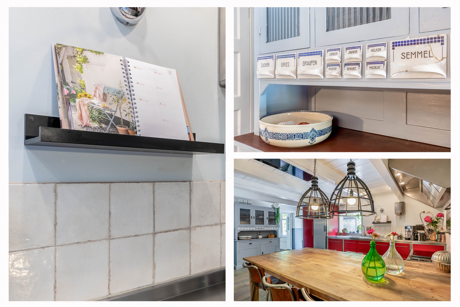 Het hele pand ademt karakter: van de ontvangsthal met antieke schouw, hardstenen vloer en verborgen doorgangen, de sfeervolle woonkamer met authentieke houten vloerdelen en houtkachel, tot en met de opkamer, nu in gebruik als werkkamer en de wijnkelder onder de opkamer.