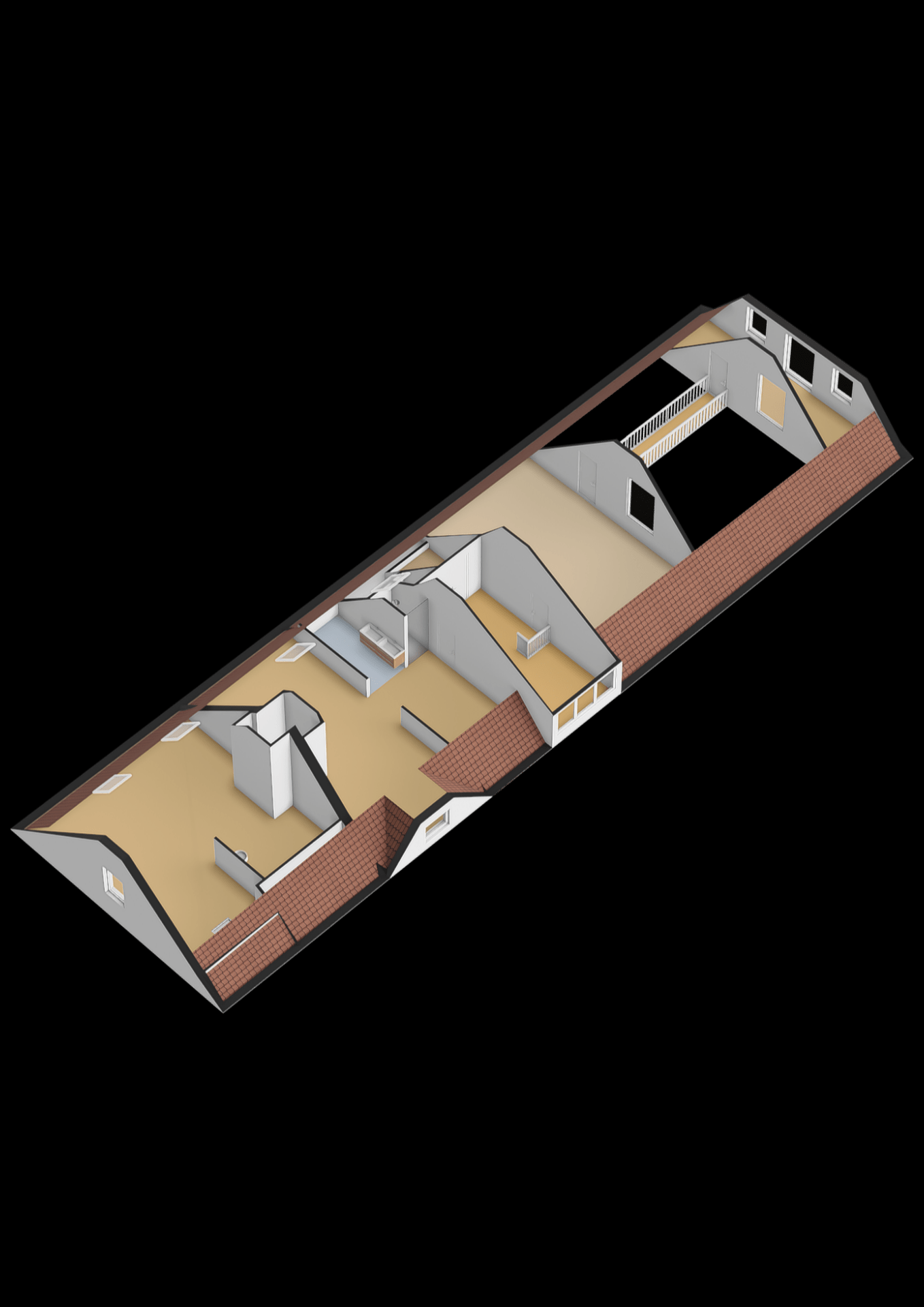 Fraaie trappartij, ruime overloop met dakkapel, apart toilet en inloopkast, riante slaapkamer met 2 nieuwe dakramen badkamer en suite uit 2020 met inloopdouche, 2 wastafels en vloerverwarming, amusementsruimte met biljart en bioscoop, die eventueel ook prima te gebruiken is als slaapkamer en doorgang met loopbrug over het zwembad naar de achterste slaapkamer met houten vloerdelen.
