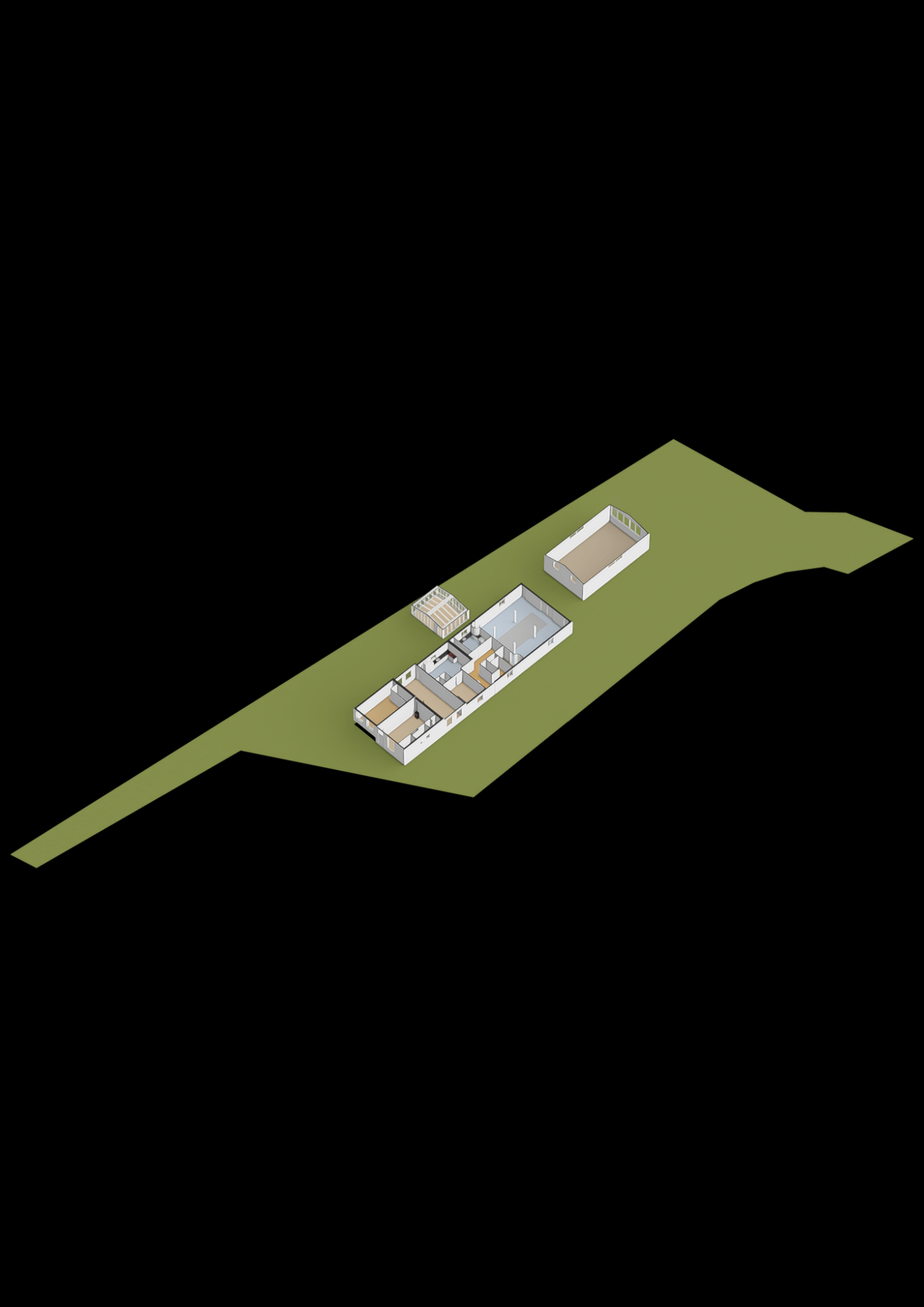 Het erf is voorzien van een royale garage/schuur van ruim 80m², een ruime kas, waar het ook op koelere dagen heerlijk vertoeven is, en een sfeervolle overkapping direct grenzend aan de keuken. Voor paardenliefhebbers zijn er drie paardenboxen aanwezig, in het verleden is er een gedraineerde all-weather rijbak en uitloopbak aangelegd. Het geheel is stijlvol afgezet met een dubbelspaaks hekwerk en toegankelijk via een automatische toegangspoort.
