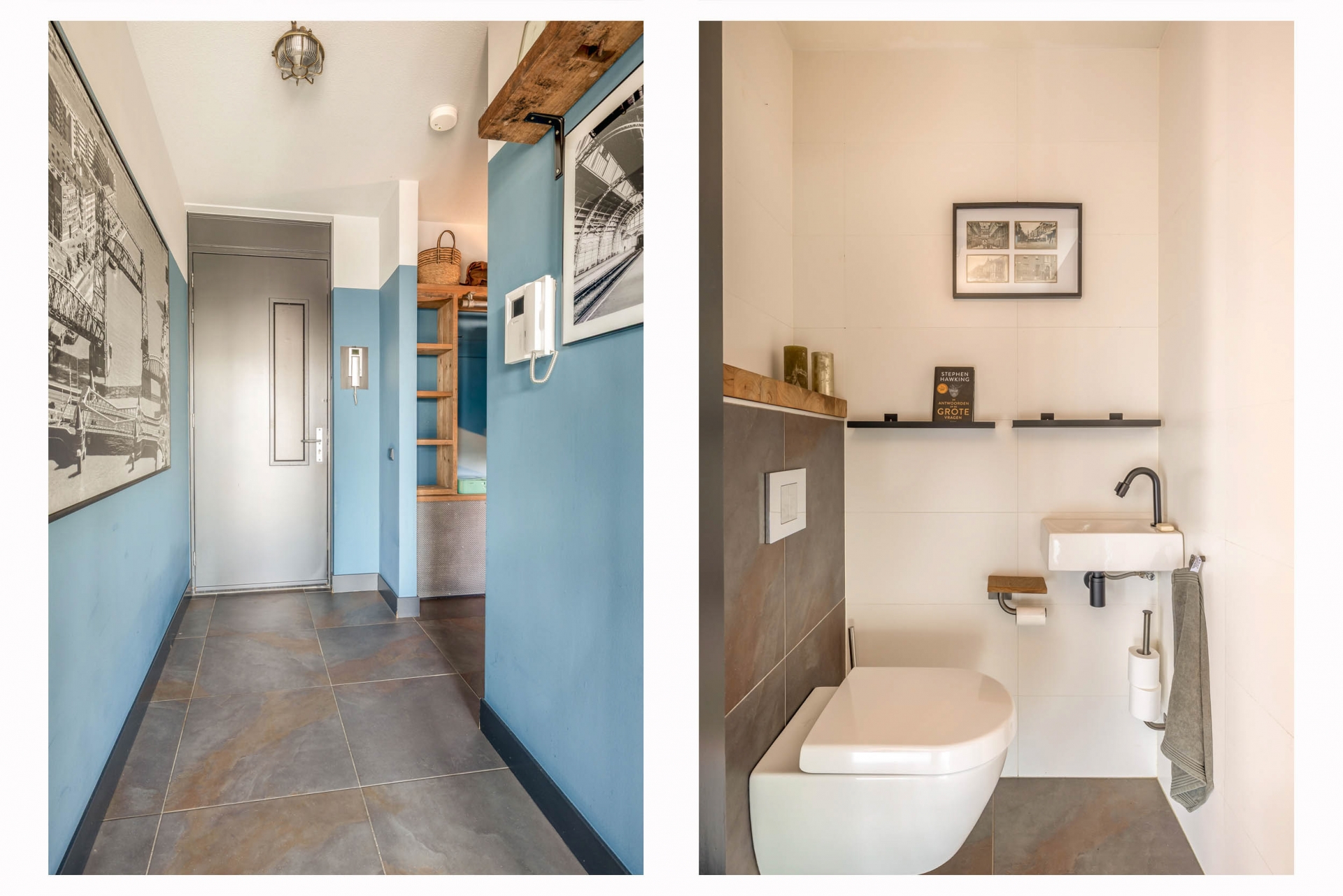 In de centrale hal van bevinden zich de 2 toegangsdeuren tot het penthouse, de meterkast en vaste bergkasten.