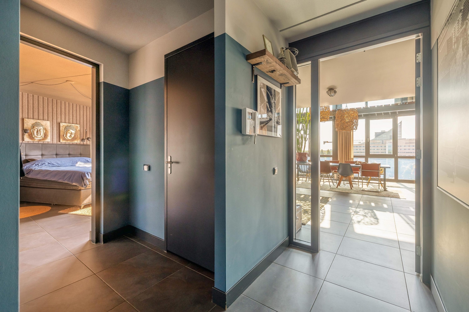 Wonen op niveau krijgt hier een heel nieuwe betekenis. Dit dubbel penthouse op de 8e en 9e verdieping biedt een woonoppervlakte van maar liefst 251 m² en is daarmee een zeldzaam ruim stadsappartement. Alles aan dit huis ademt comfort, luxe en privacy. Dankzij het ontbreken van directe buren geniet je hier van rust, stilte en volledige vrijheid. De panoramische raampartijen zorgen voor een spectaculair uitzicht op de skyline van Rotterdam, de Brienenoord en de lichten van de Kuip – dat verveelt werkelijk nooit. En dat uitzicht loopt naadloos door in de buitenruimte: verspreid over twee niveaus beschik je over in totaal 98 m² aan dakterrassen, ideaal op het zuidoosten én zuidwesten. Dat betekent: ochtendzon én avondzon met prachtige zonsondergangen.