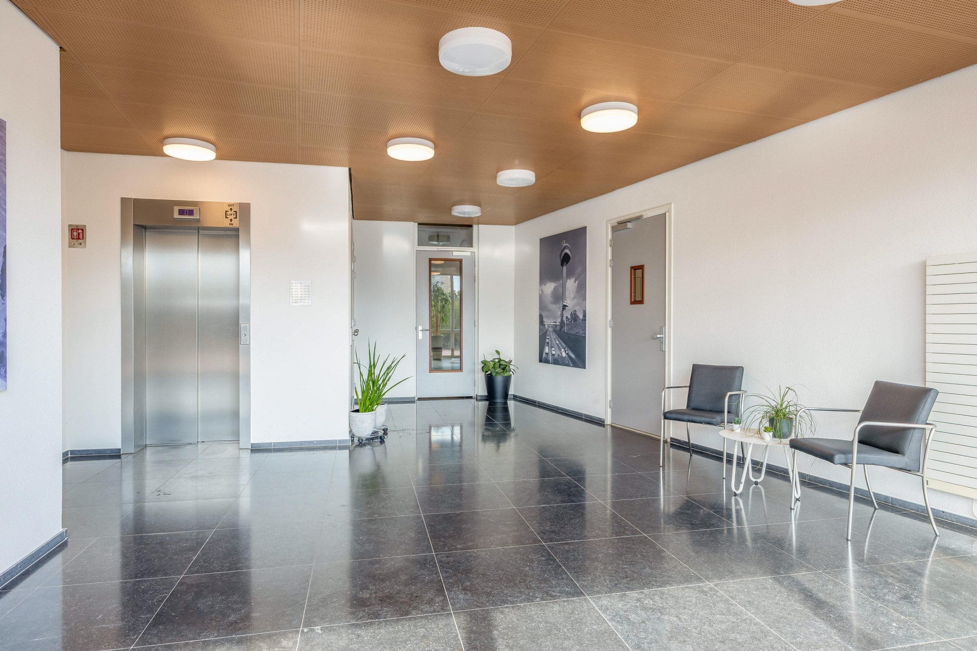 De afgesloten entree, ruime hal met lift, videofoon en toegang naar de berging en parkeerkelder.
