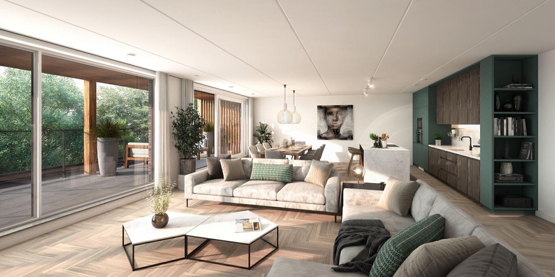 Voor welk type u ook gaat, in ieder appartement is alles heerlijk gelijkvloers, zonder in te hoeven boeten aan ruimte. Alle appartementen hebben een fijne buitenruimte en de penthouses hebben rondom een dakterras van maar liefst 128 m² en 152 m²!