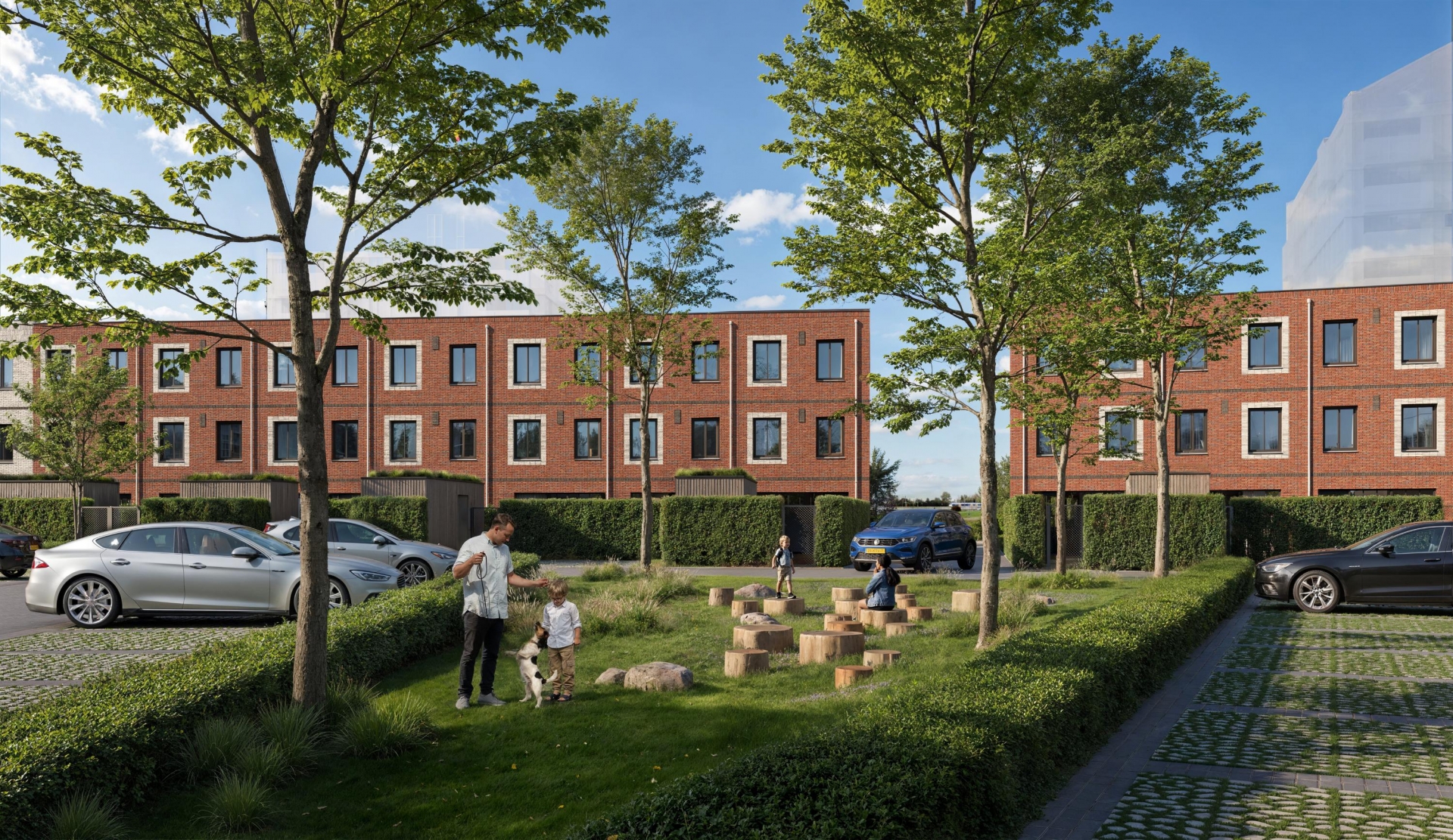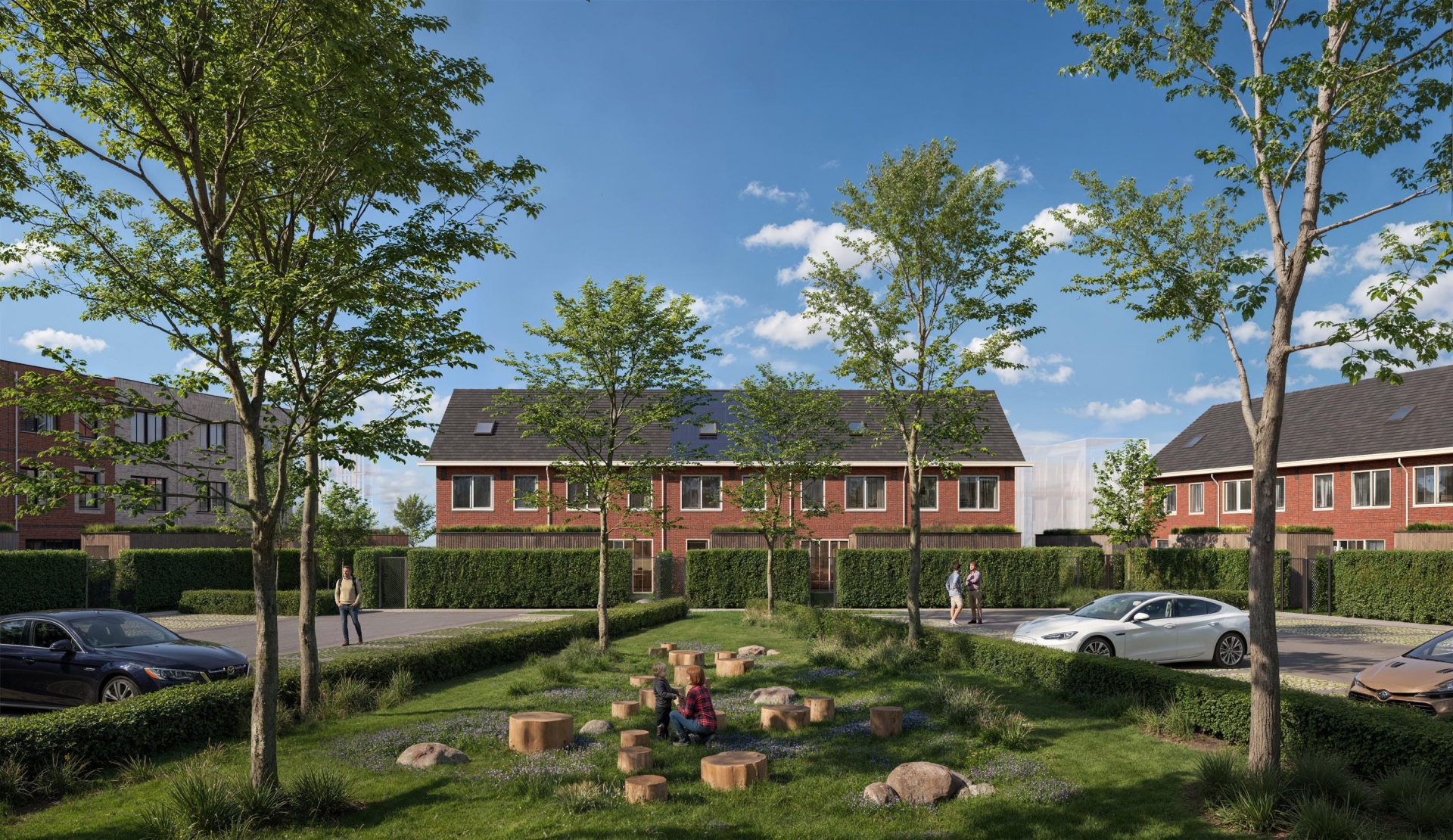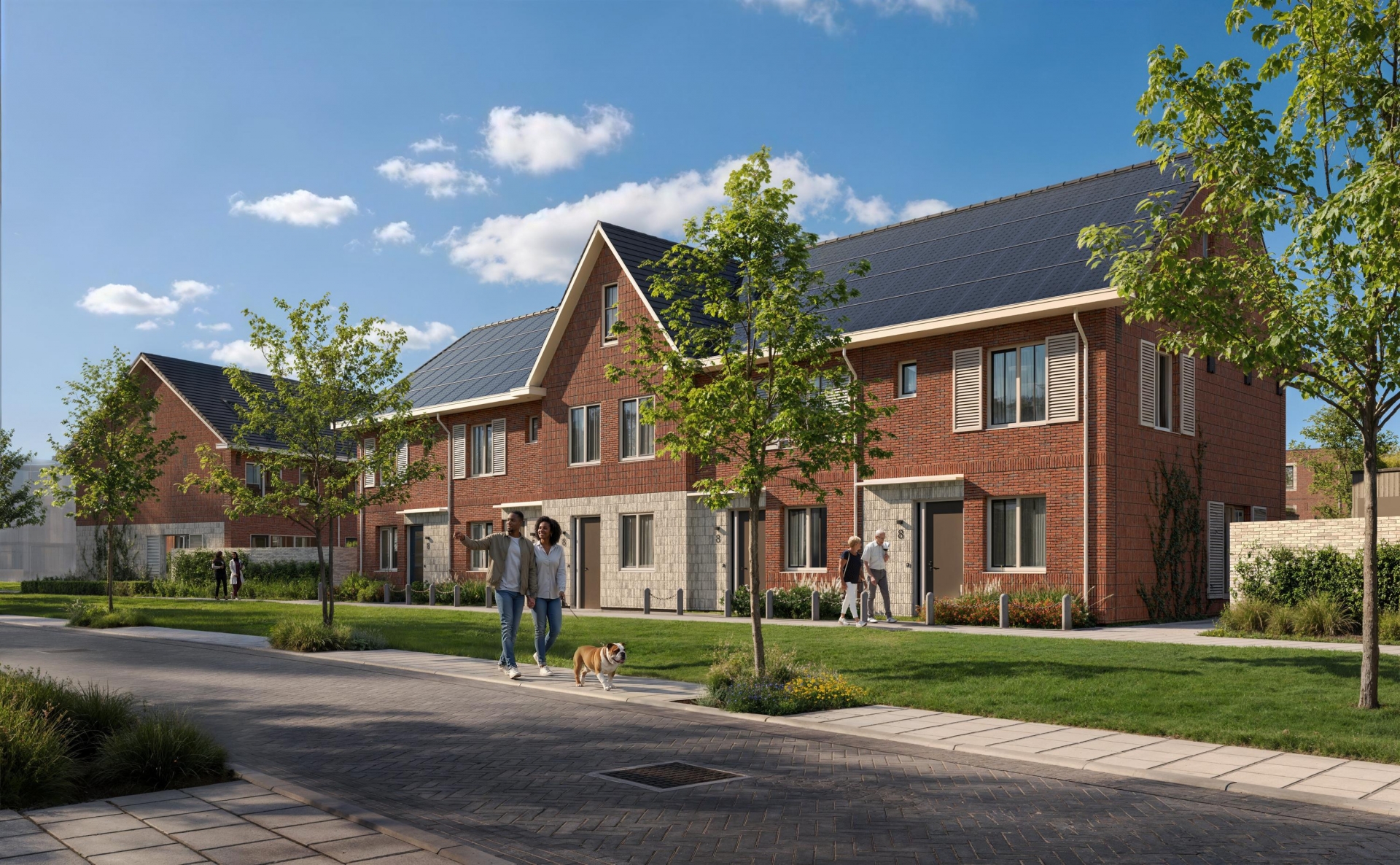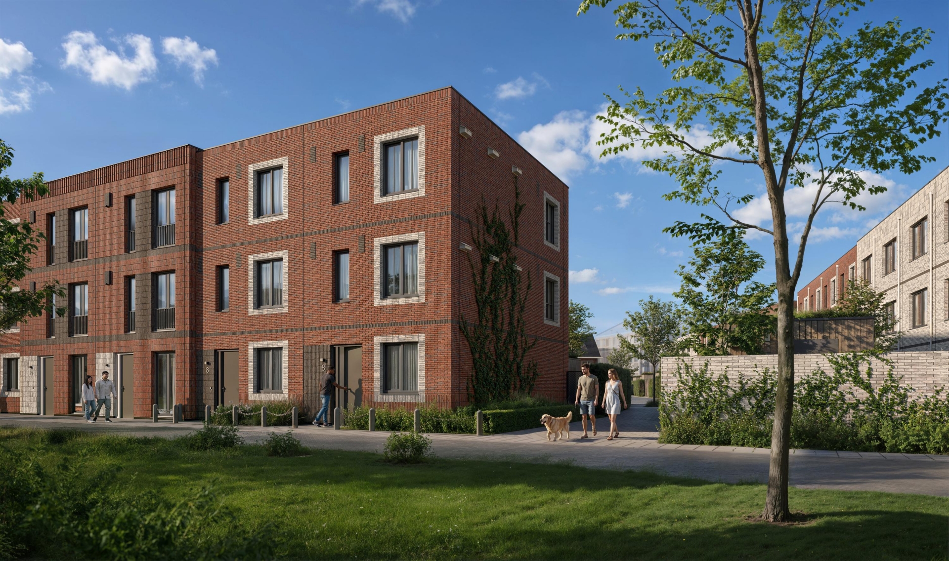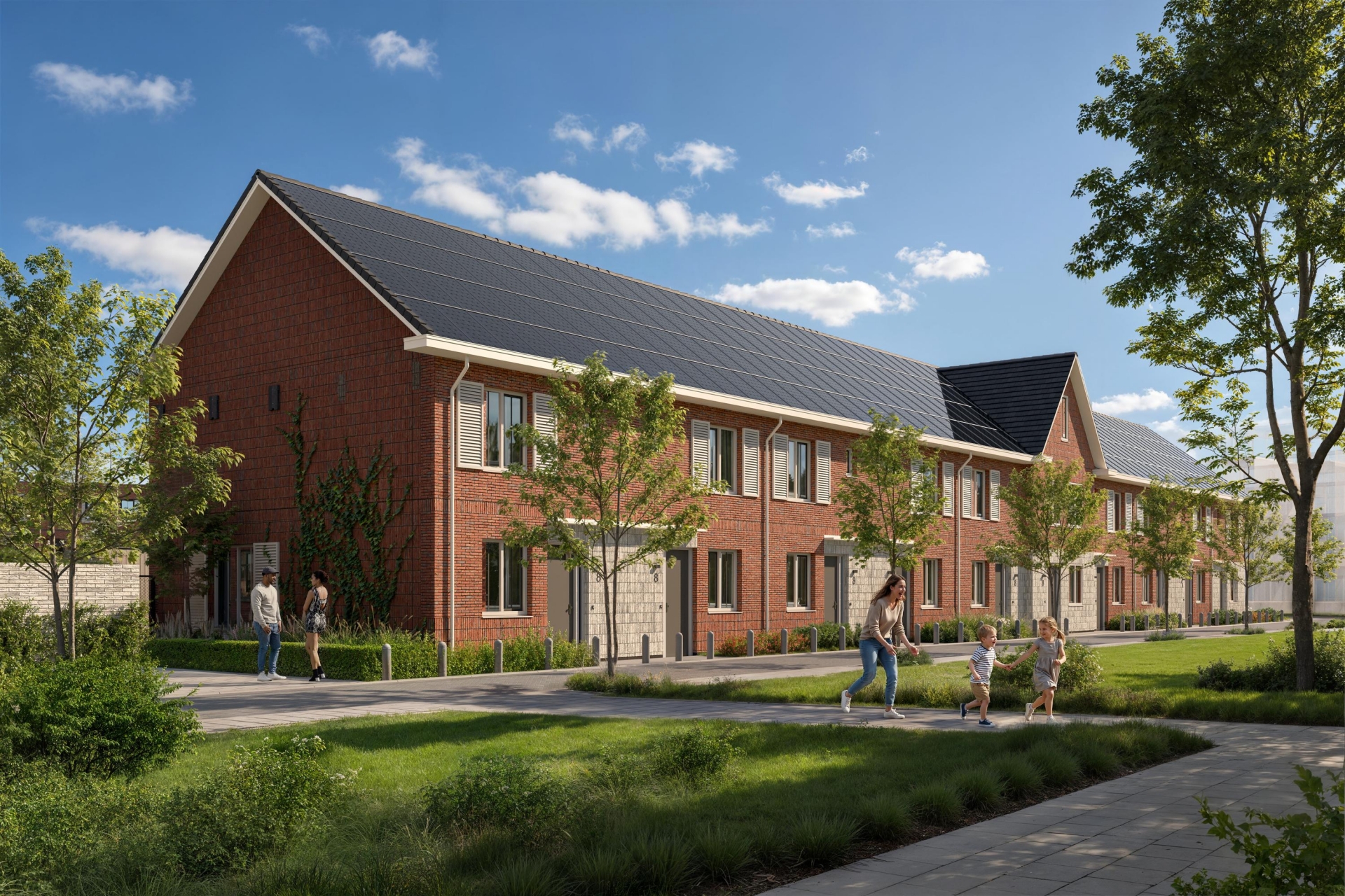 Er zijn eengezinswoningen met een plat dak en eengezinswoningen met kap. De steenkleuren wisselen, de gevels verspringen en als je goed kijkt zie je allerlei speelse details in het metselwerk. Sommige typen hebben een tuitgevel en springen er extra uit door de donkere steenkleur en er zijn woningen met als optie een dakkapel. Doordat de woningen ook nog eens in grootte en ligging verschillen, heb je echt wat te kiezen.
