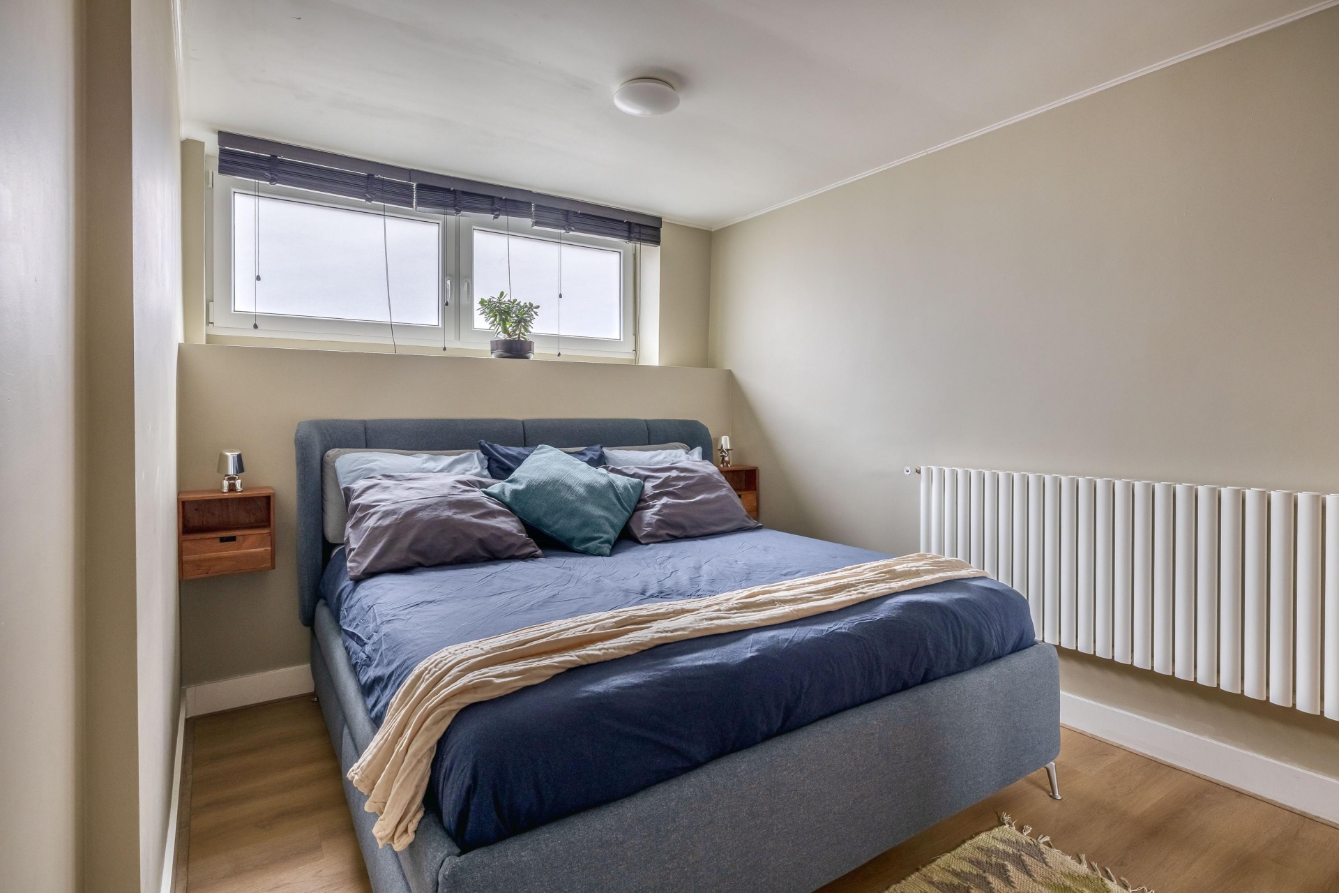 Het souterrain doet absoluut niet onder voor de bovenverdieping. Dankzij een plafondhoogte van 2,40 meter (en zelfs 2,64 meter in de master bedroom!) voelt dit als een volwaardige woonlaag. De ruime hal geeft toegang tot alle vertrekken: drie comfortabele kamers, een moderne badkamer, wasruimte en berging (inloopkast). De master bedroom ligt aan de achterzijde en is bijzonder ruim, met meer dan 7 meter lengte is hier plek voor slapen én werken. De tweede slaapkamer aan de voorzijde is perfect als logeerkamer, werkplek of kinderkamer. De badkamer is stijlvol uitgevoerd met dubbele wastafel, inloopdouche en een tweede toilet.