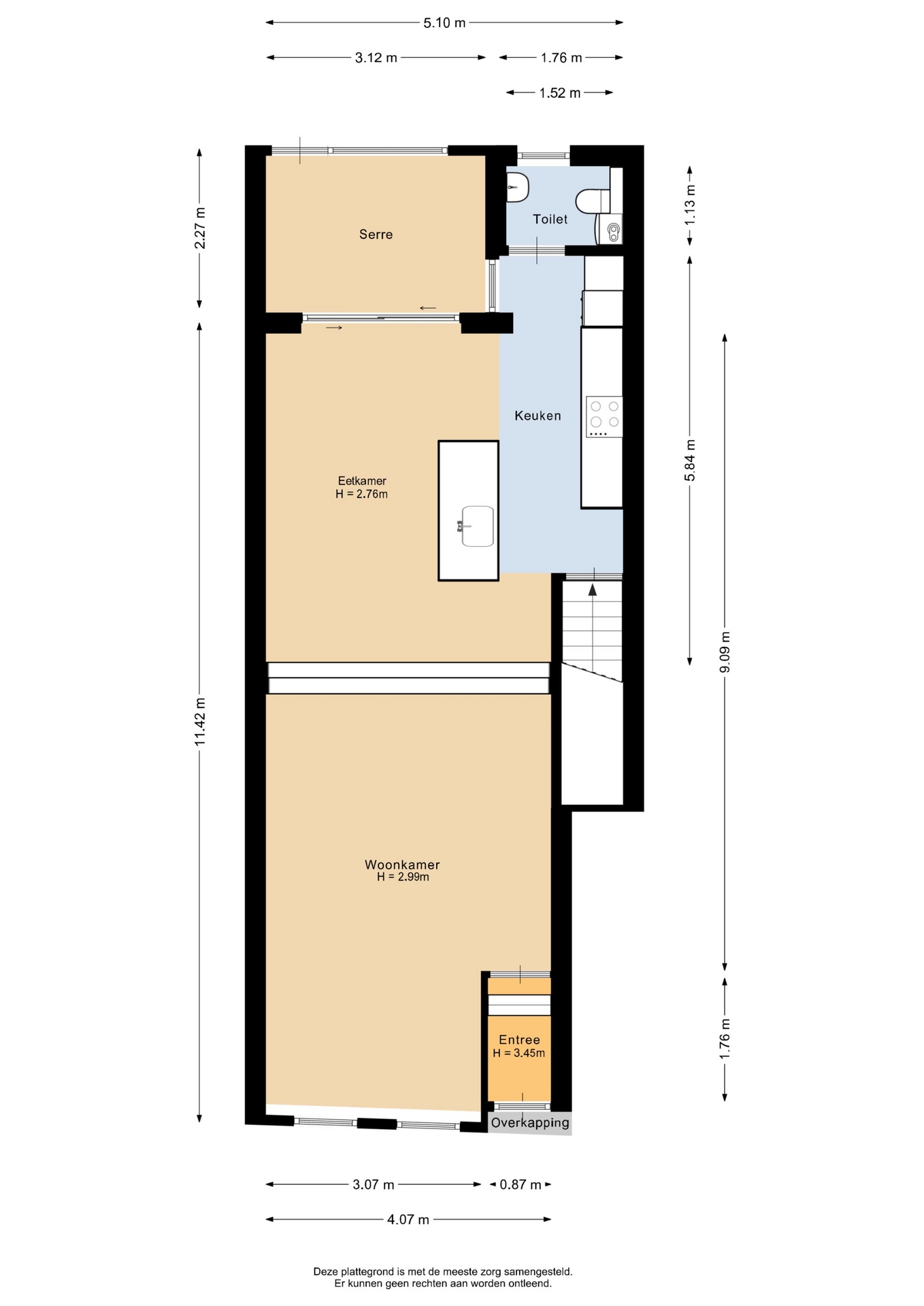 “Deze informatie is door ons met de nodige zorgvuldigheid samengesteld. Onzerzijds wordt echter geen enkele aansprakelijkheid aanvaard voor enige onvolledigheid, onjuistheid of anderszins, dan wel de gevolgen daarvan. Alle opgegeven maten en oppervlakten zijn indicatief.”