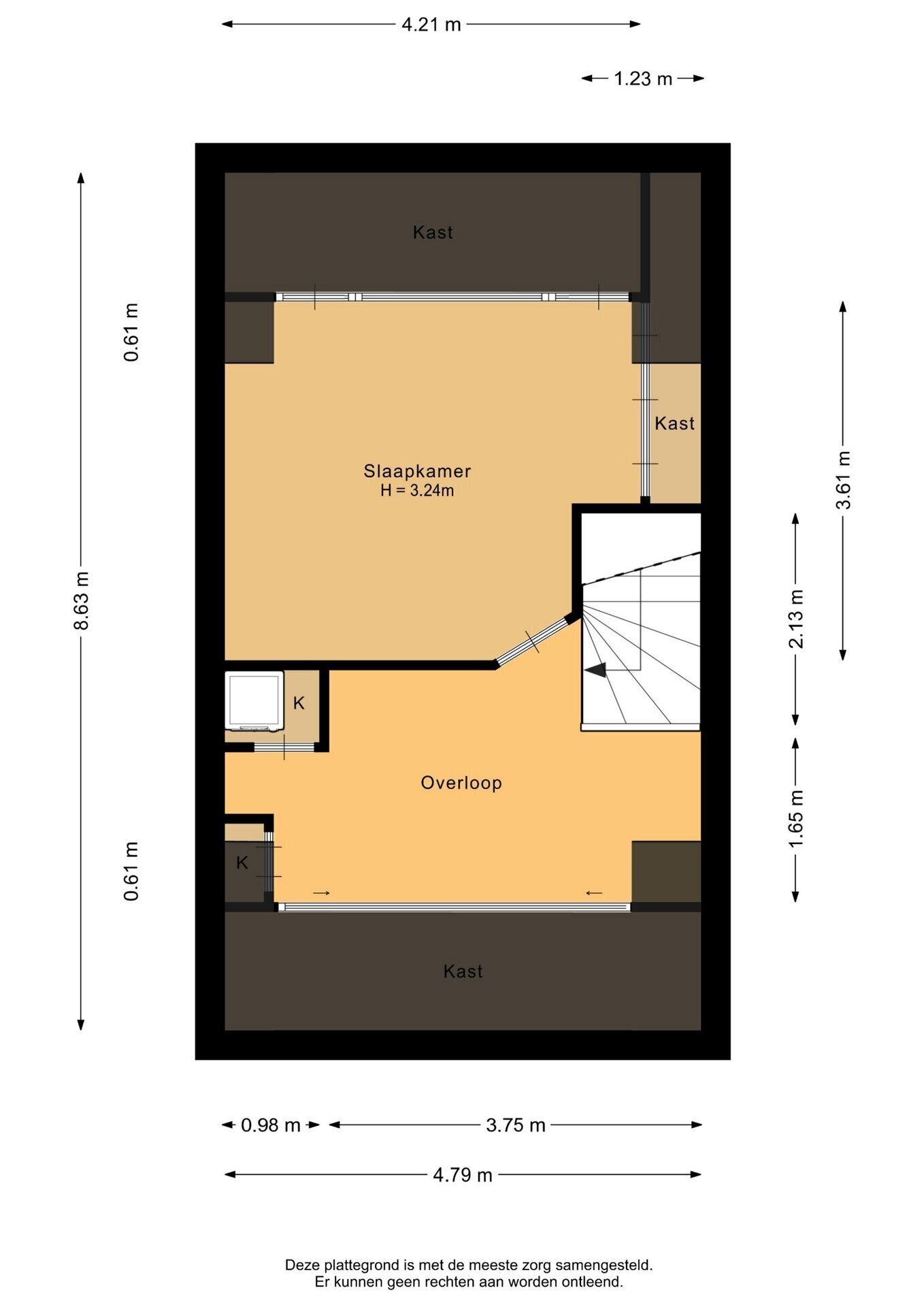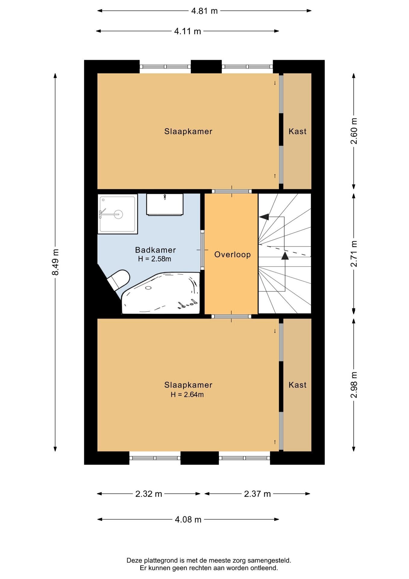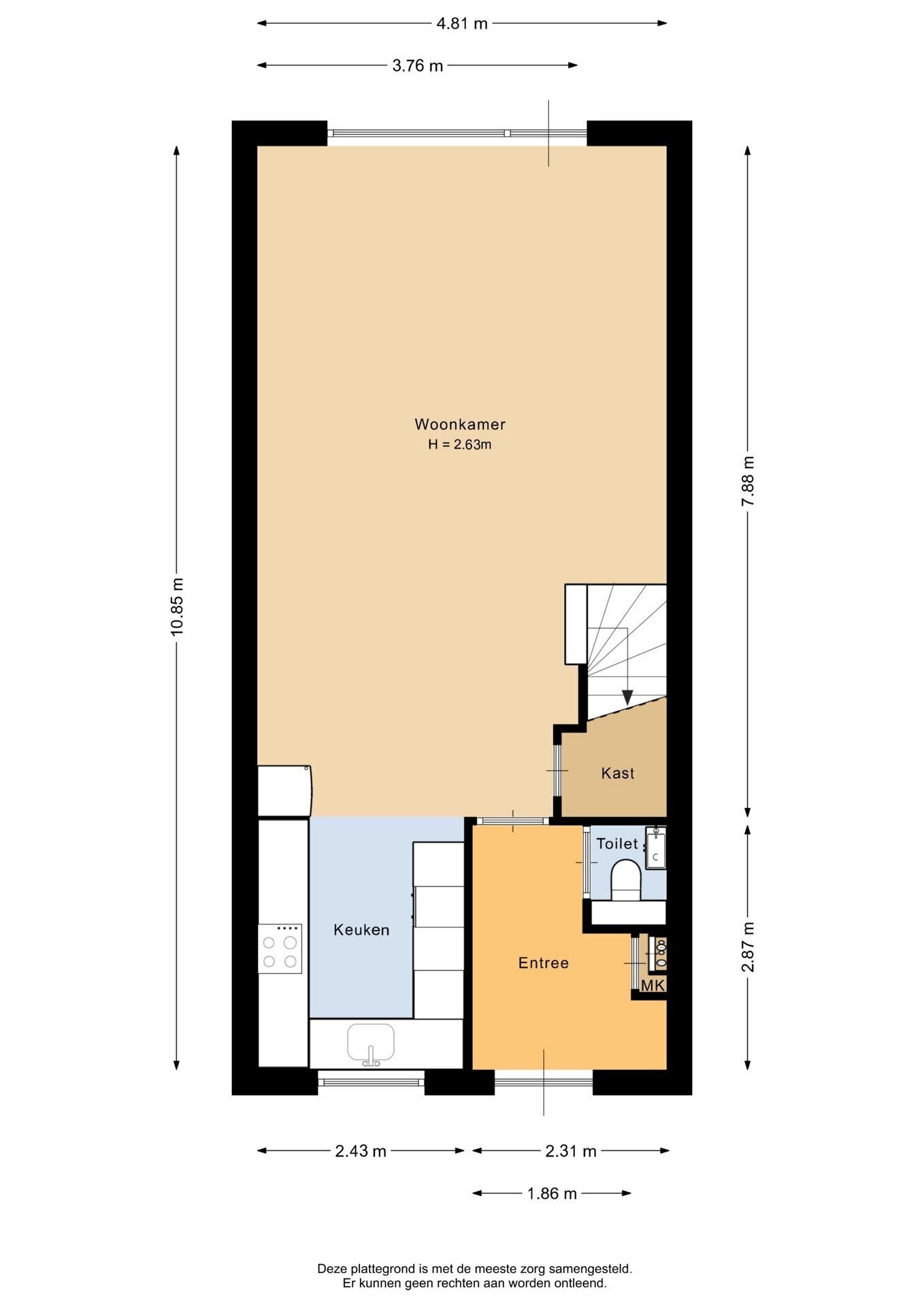 “Deze informatie is door ons met de nodige zorgvuldigheid samengesteld. Onzerzijds wordt echter geen enkele aansprakelijkheid aanvaard voor enige onvolledigheid, onjuistheid of anderszins, dan wel de gevolgen daarvan. Alle opgegeven maten en oppervlakten zijn indicatief.”