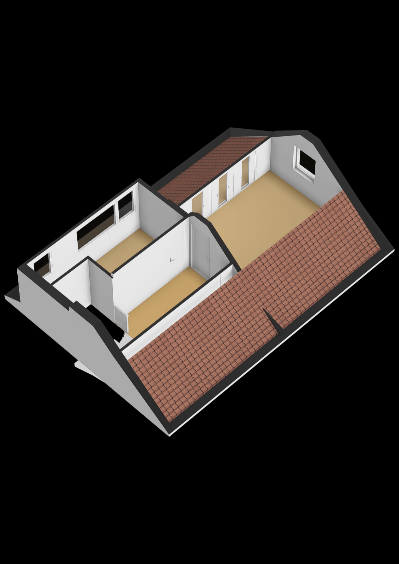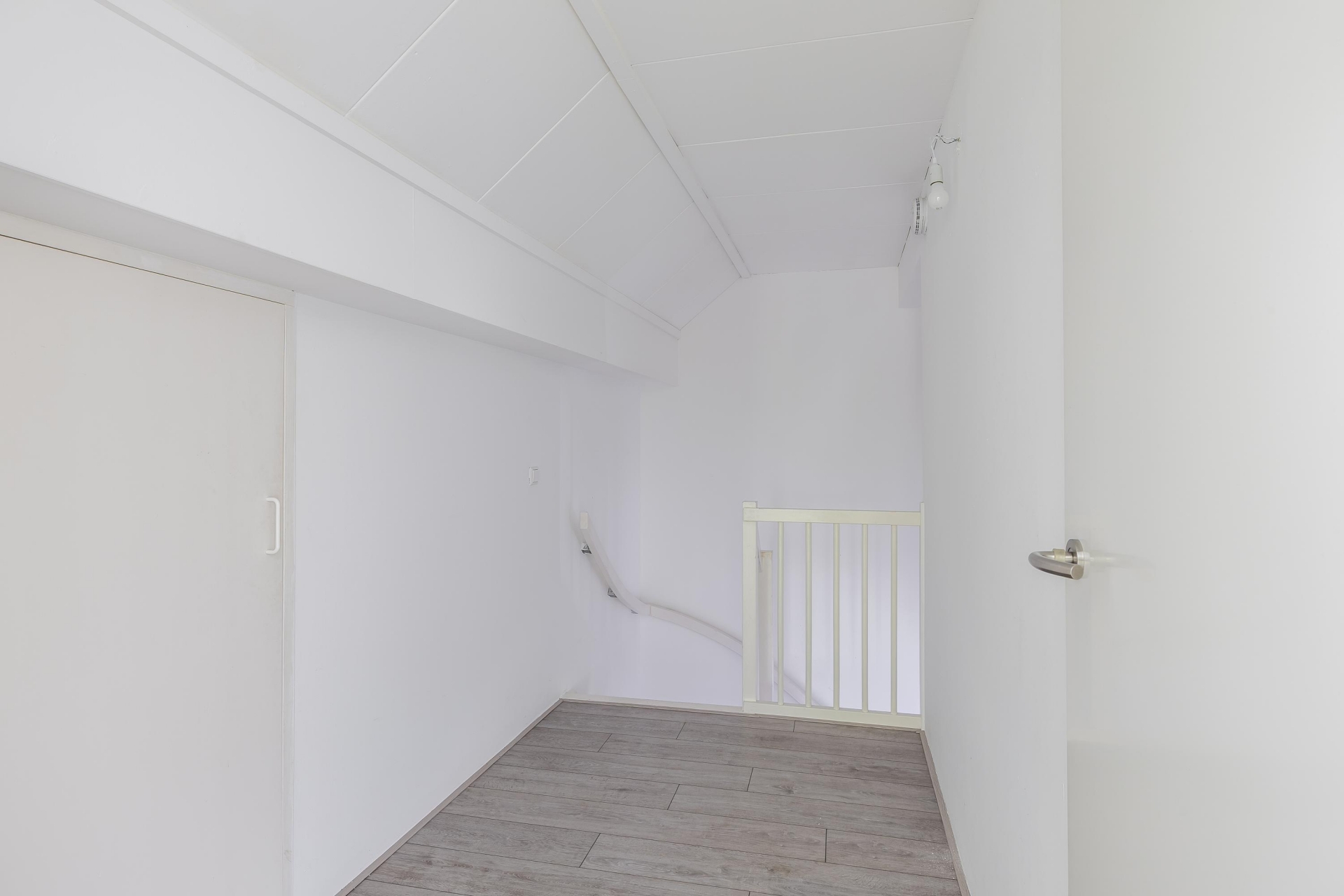 Overloop met bergruimte; 2 tal slaapkamers van respectievelijk circa 12 m2 en 7.9 m2. In de slaapkamers zijn lage temperatuur convectoren geplaatst.