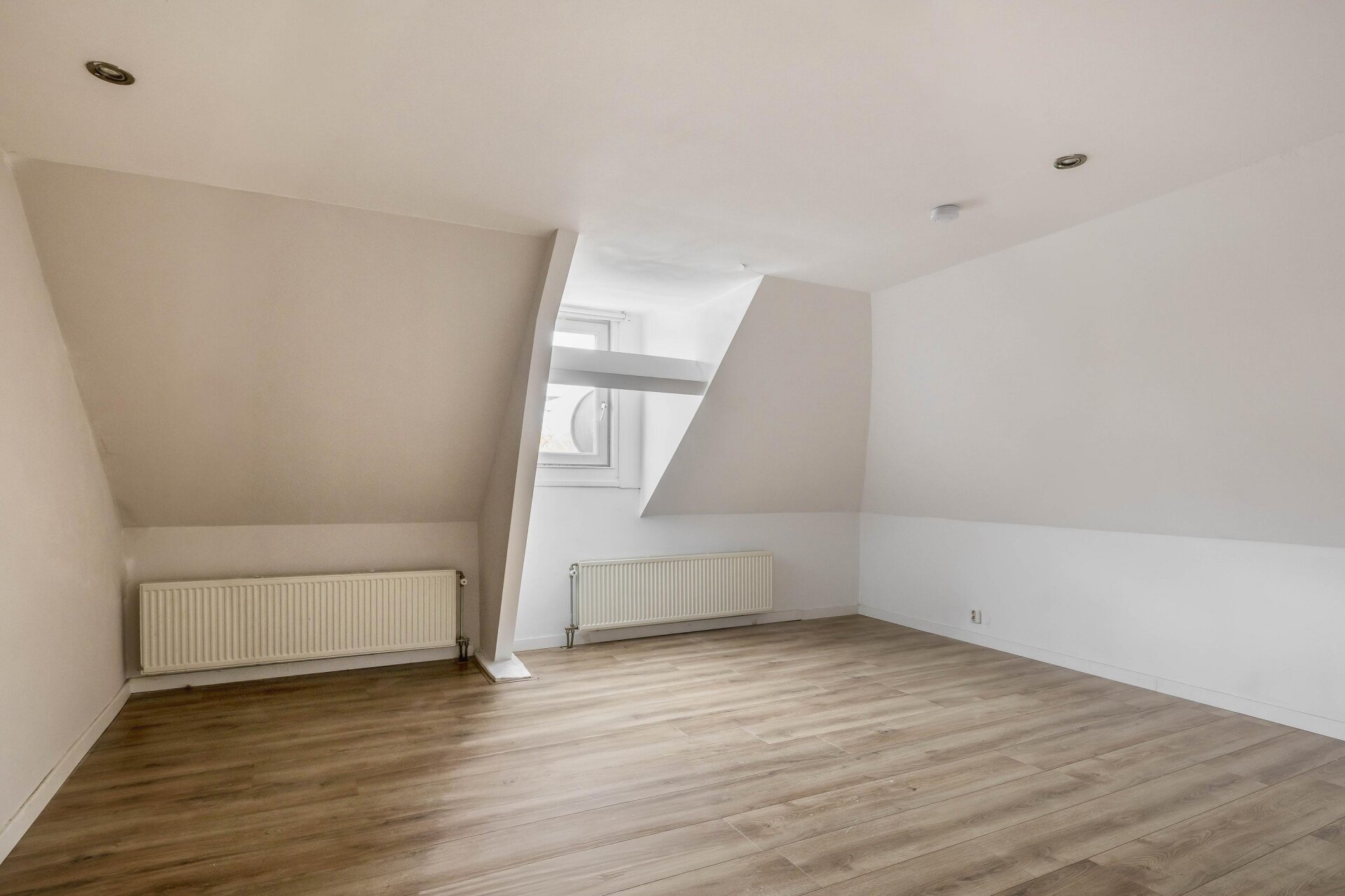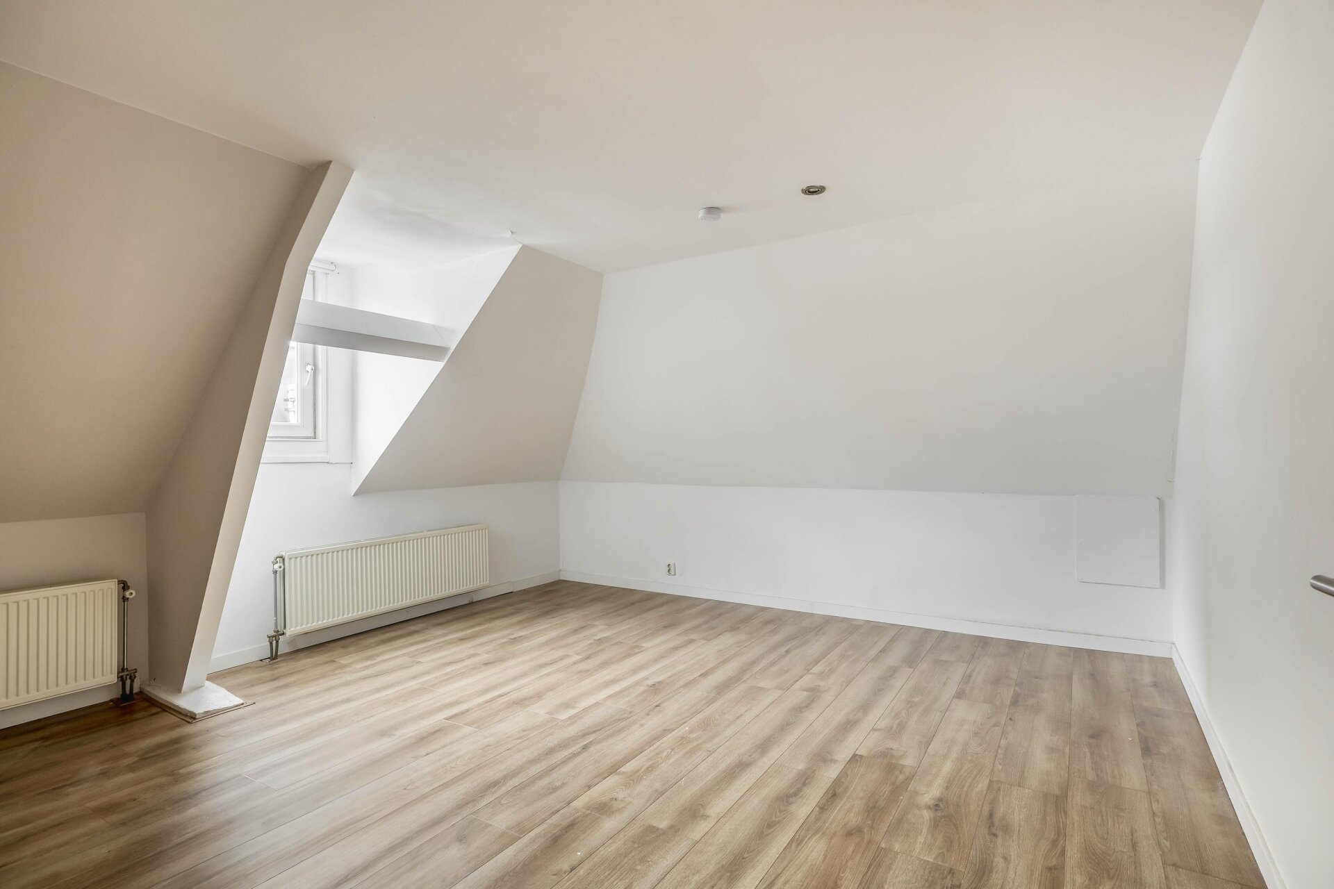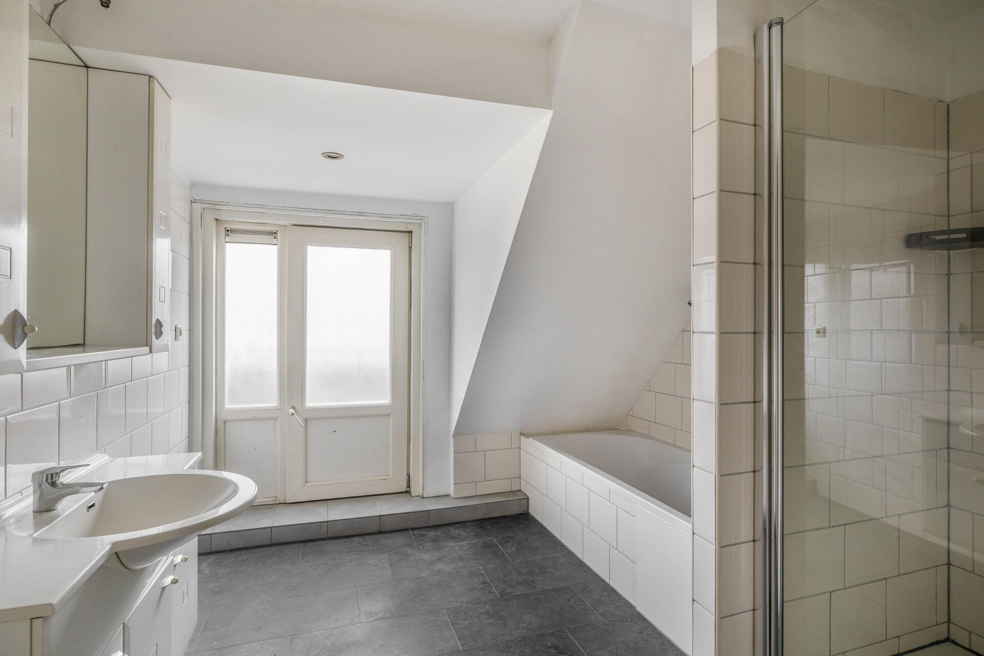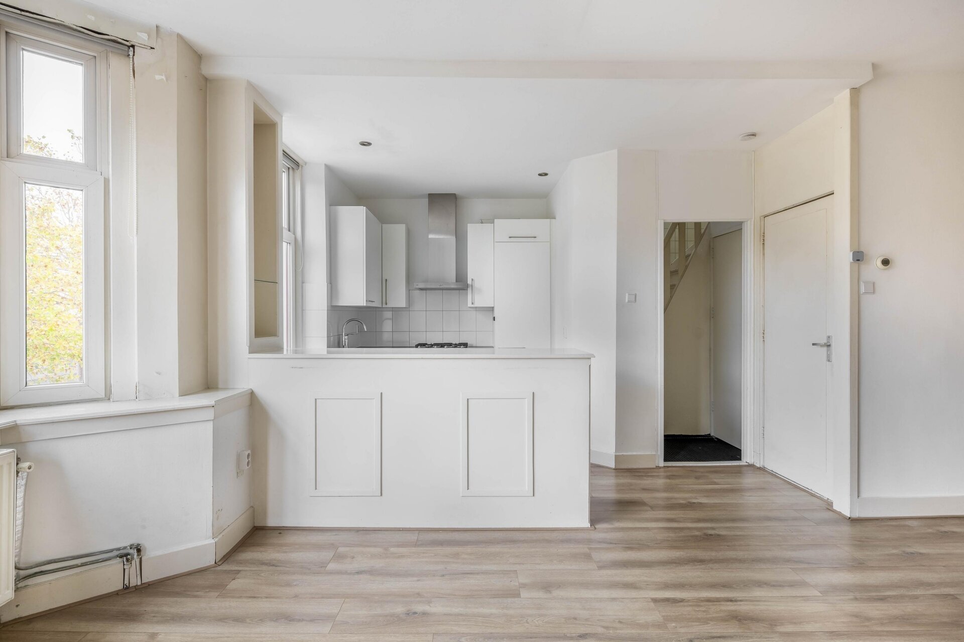 De keuken ligt aan de achterzijde en is praktisch ingericht, met voldoende kastruimte en plek voor apparatuur. De interne trap leidt naar de derde woonlaag, waar zich de slaapkamers bevinden. In totaal telt de woning vier kamers, waarvan drie te gebruiken zijn als slaapkamer en één als werk-, hobby- of logeerkamer. De badkamer is netjes en functioneel uitgevoerd met ruimte voor een wastafel en douche.