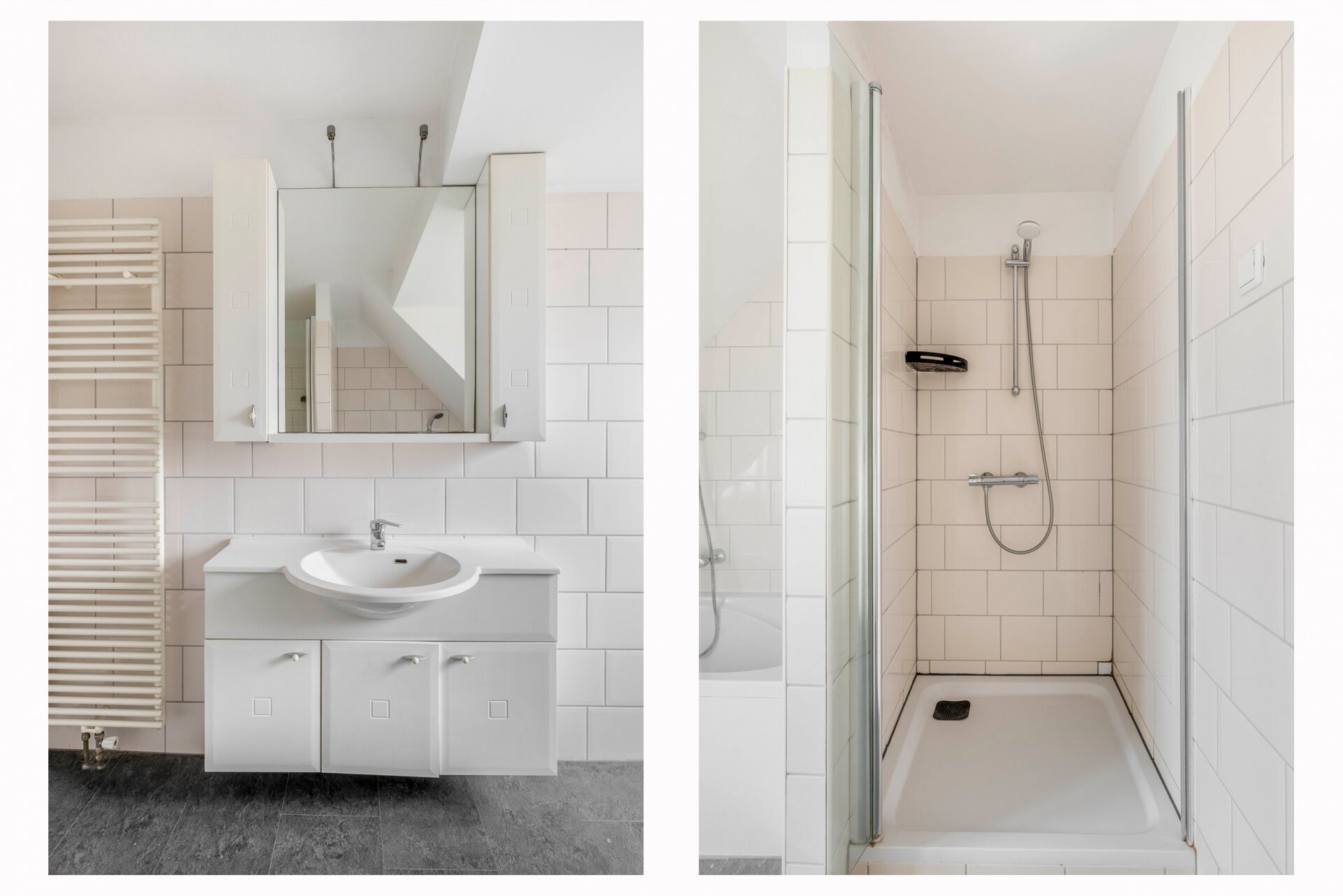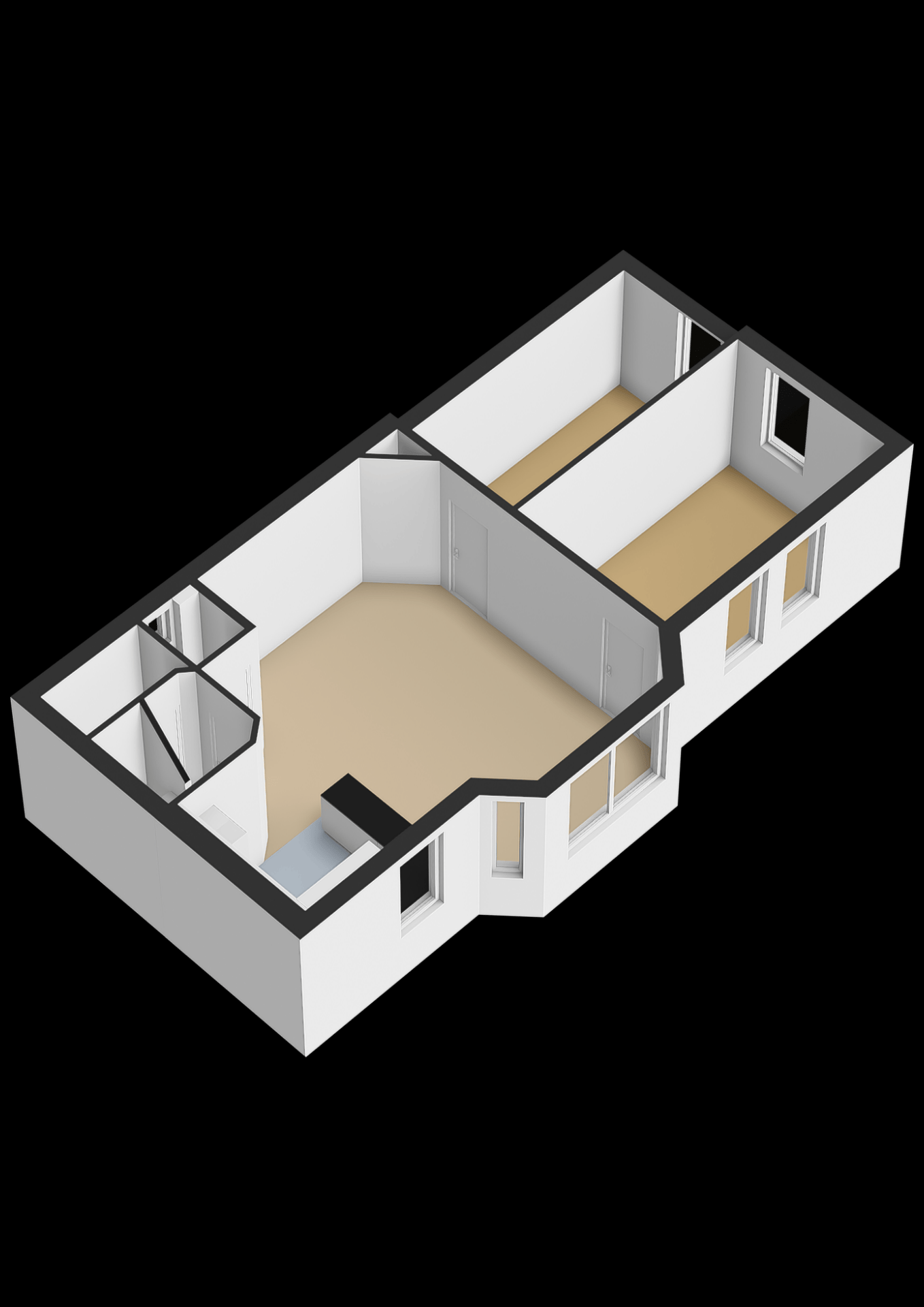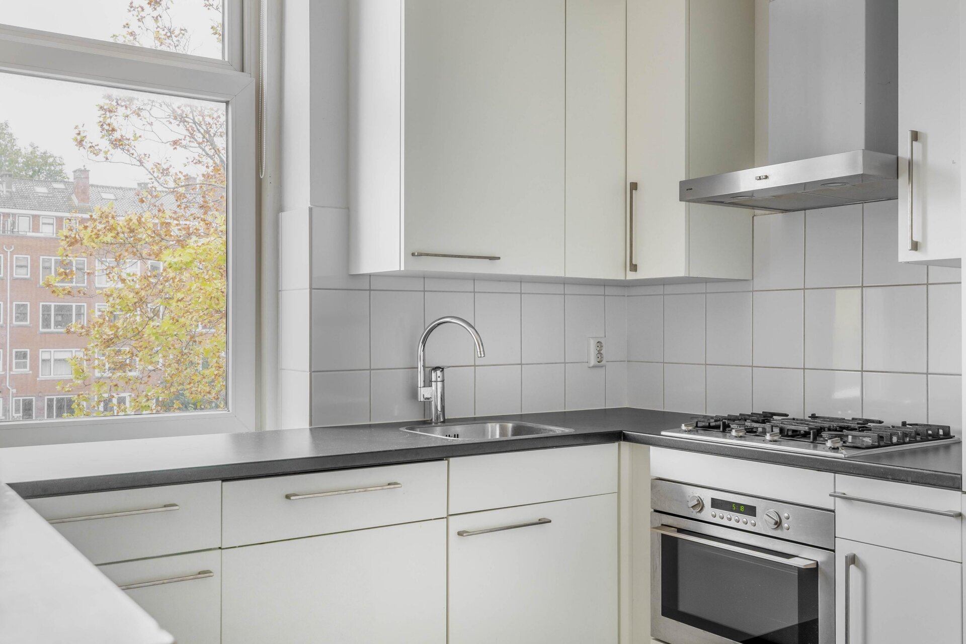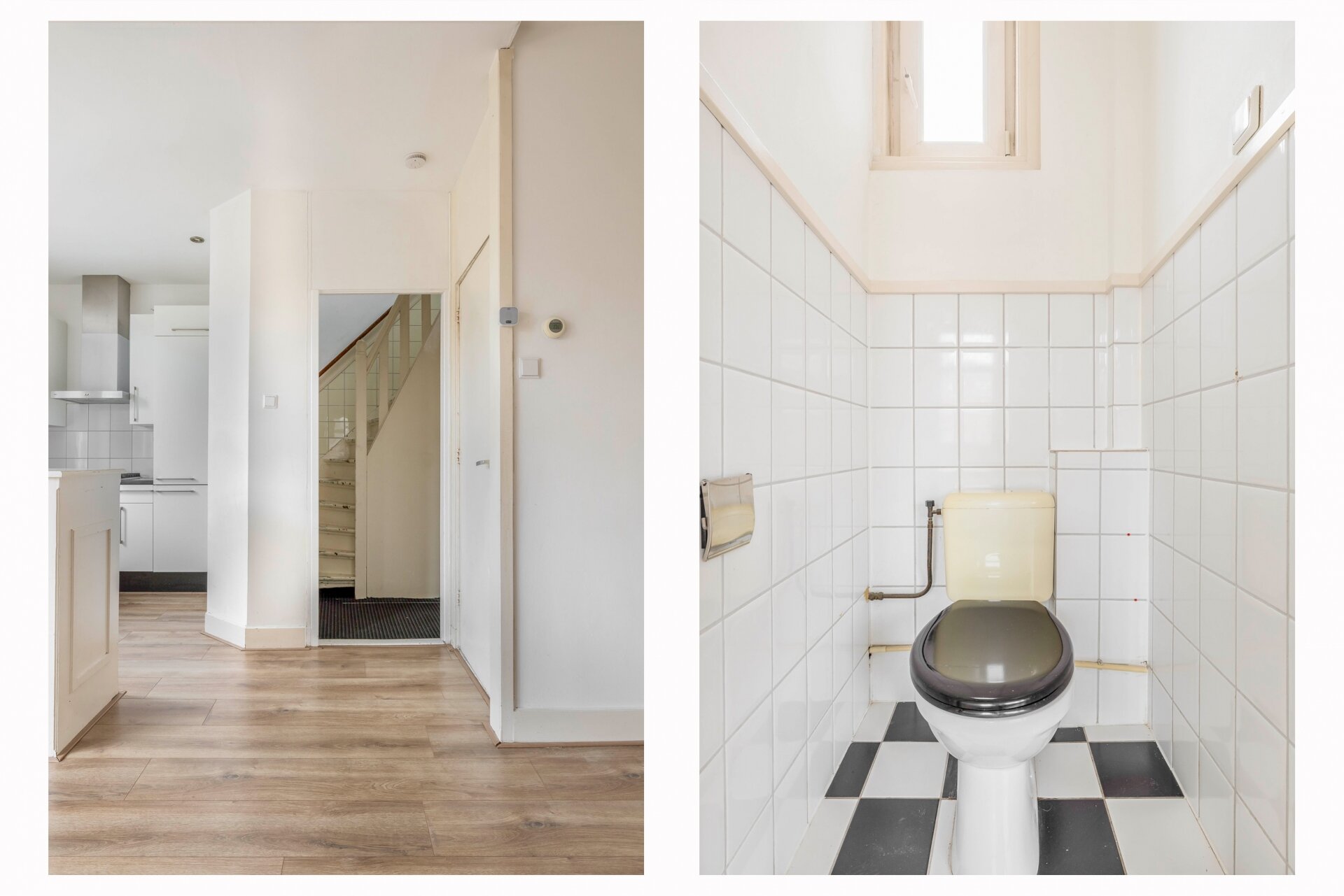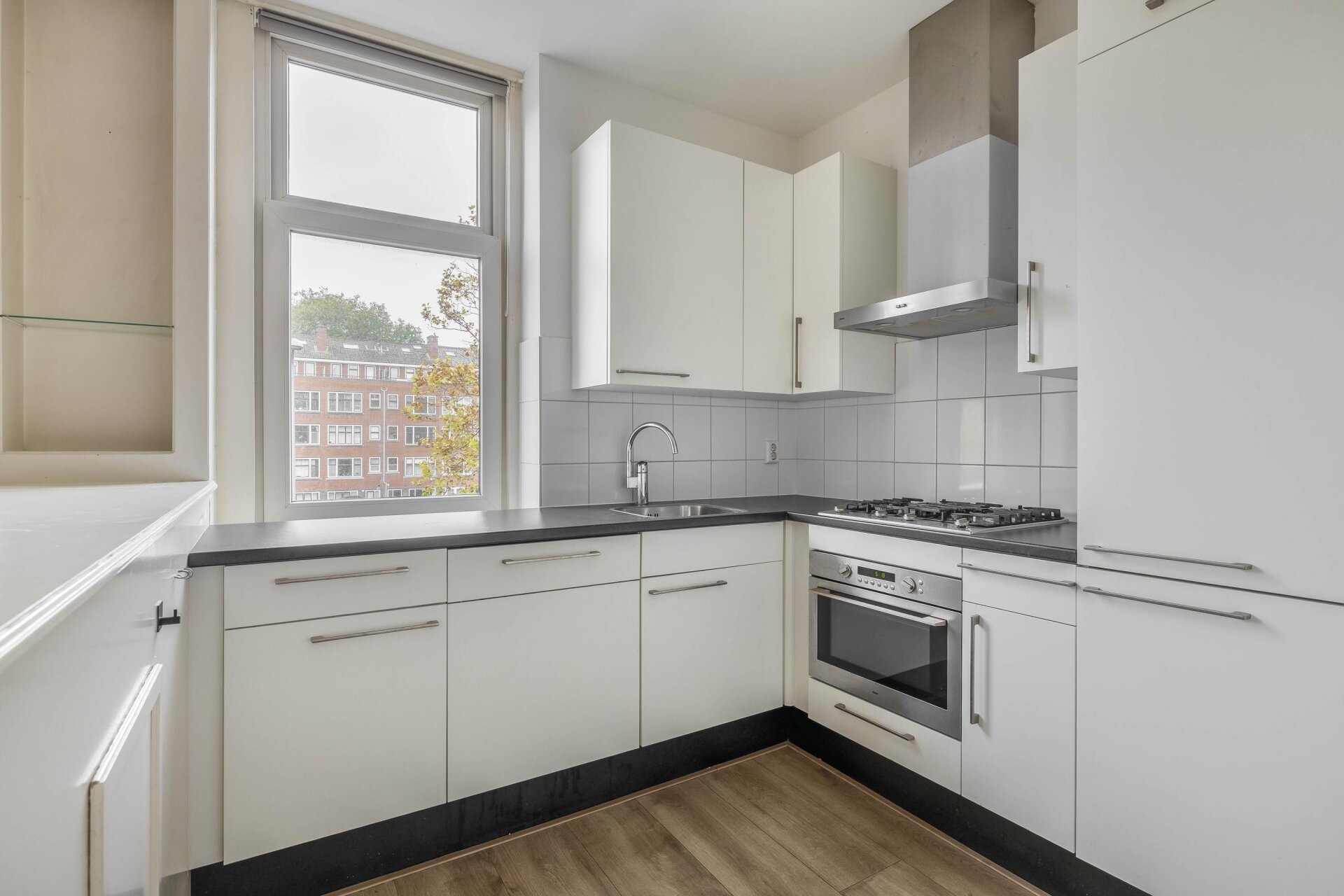 De keuken ligt aan de achterzijde en is praktisch ingericht, met voldoende kastruimte en plek voor apparatuur. De interne trap leidt naar de derde woonlaag, waar zich de slaapkamers bevinden. In totaal telt de woning vier kamers, waarvan drie te gebruiken zijn als slaapkamer en één als werk-, hobby- of logeerkamer. De badkamer is netjes en functioneel uitgevoerd met ruimte voor een wastafel en douche.