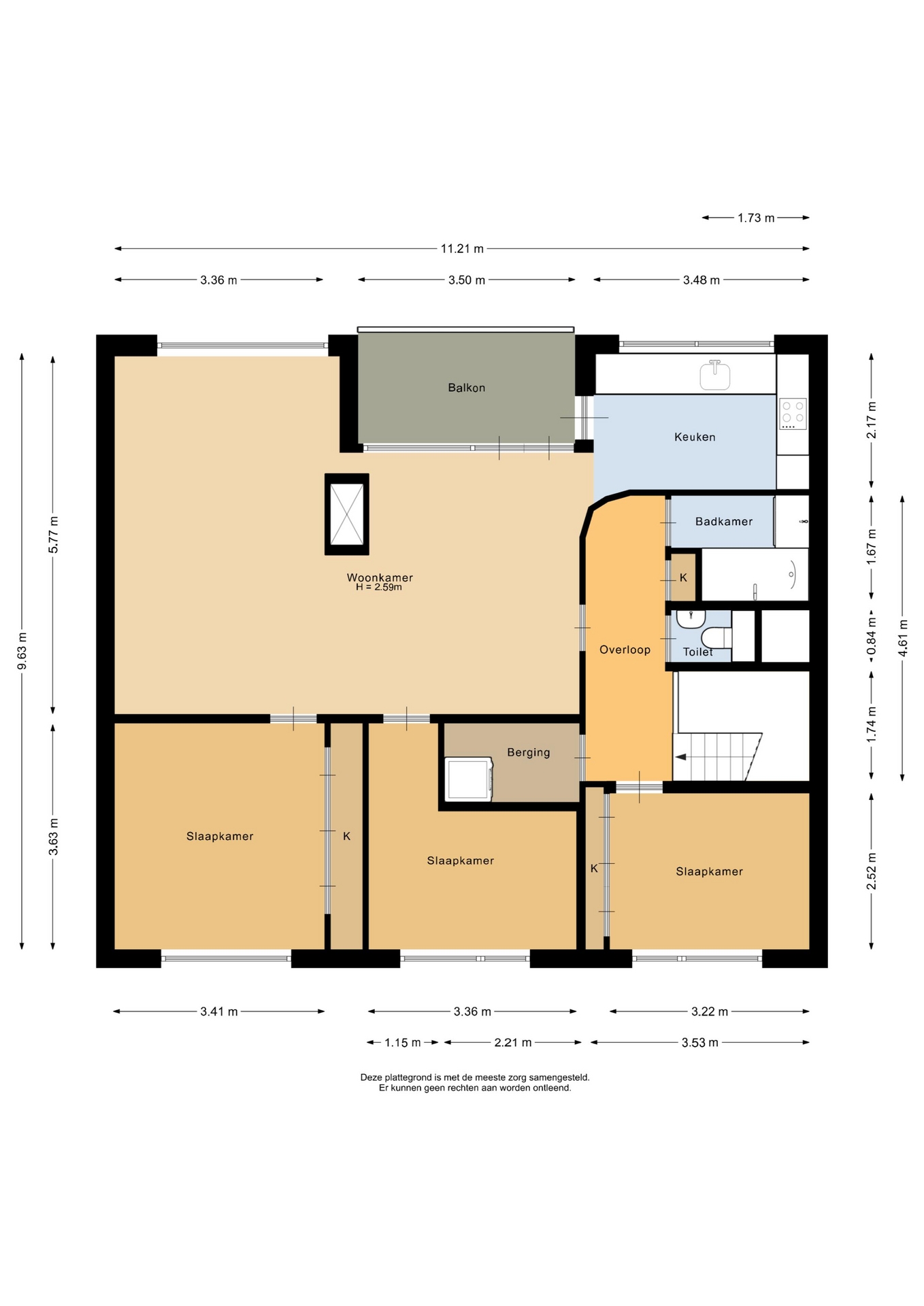 “Deze informatie is door ons met de nodige zorgvuldigheid samengesteld. Onzerzijds wordt echter geen enkele aansprakelijkheid aanvaard voor enige onvolledigheid, onjuistheid of anderszins, dan wel de gevolgen daarvan. Alle opgegeven maten en oppervlakten zijn indicatief.”
