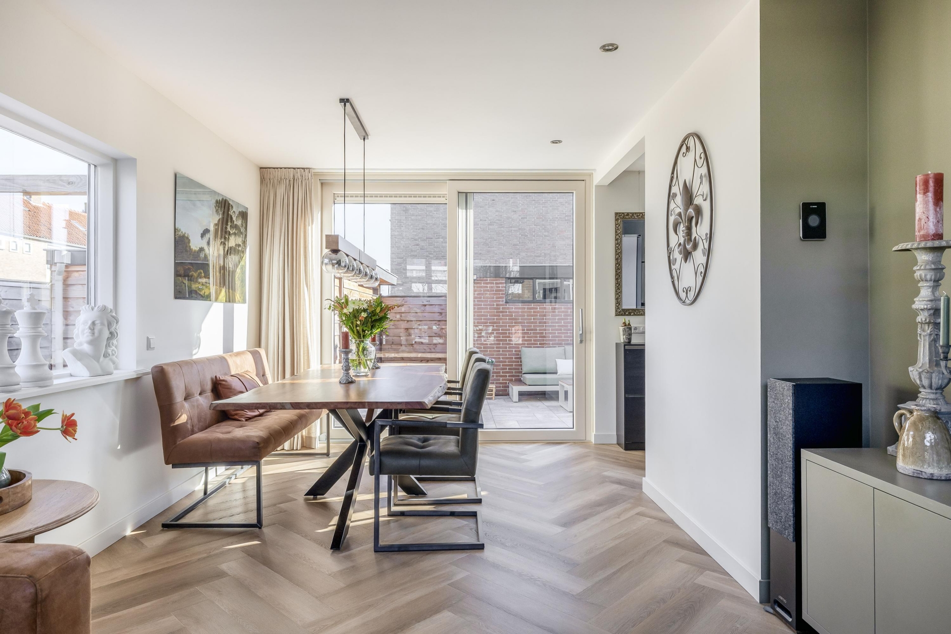 De afwerking is modern en neutraal, waardoor verschillende woonstijlen hier goed tot hun recht komen. Vanuit de woonkamer heb je een fijne verbinding met de keuken. Hierdoor blijven koken, eten en wonen mooi met elkaar verbonden, wat het dagelijks gebruik extra comfortabel maakt.