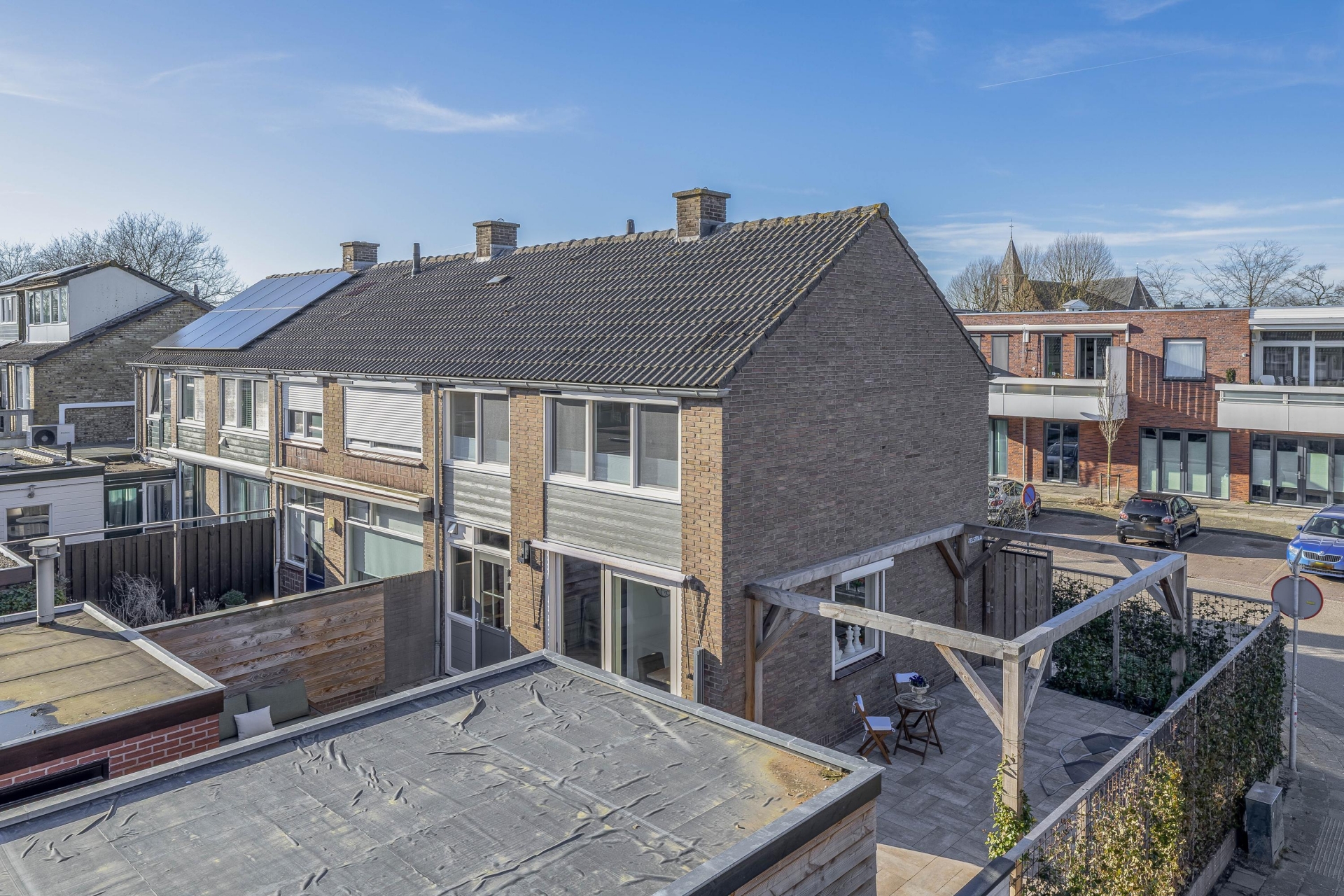 Daarnaast zorgt de hoekligging ervoor dat je net wat meer ruimte en privacy hebt dan bij een tussenwoning. De carport maakt het plaatje compleet: parkeren kan gewoon op eigen terrein en dat is in de praktijk ontzettend prettig.