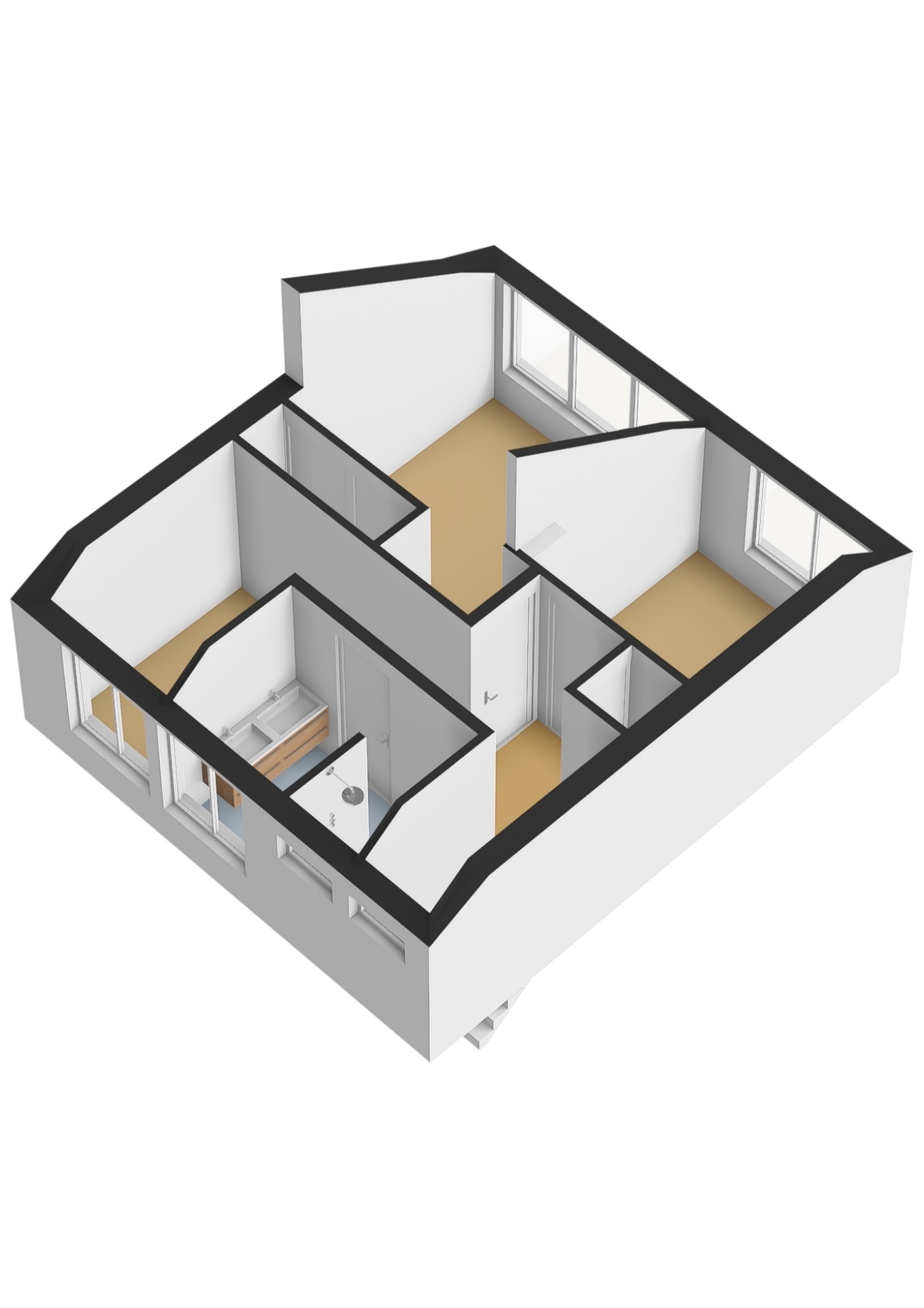 De badkamer is praktisch ingedeeld en voorziet in de dagelijkse behoeften. Samen met de drie slaapkamers en de logische indeling van de verdieping zorgt dit voor een comfortabel geheel waar je prettig kunt wonen.
