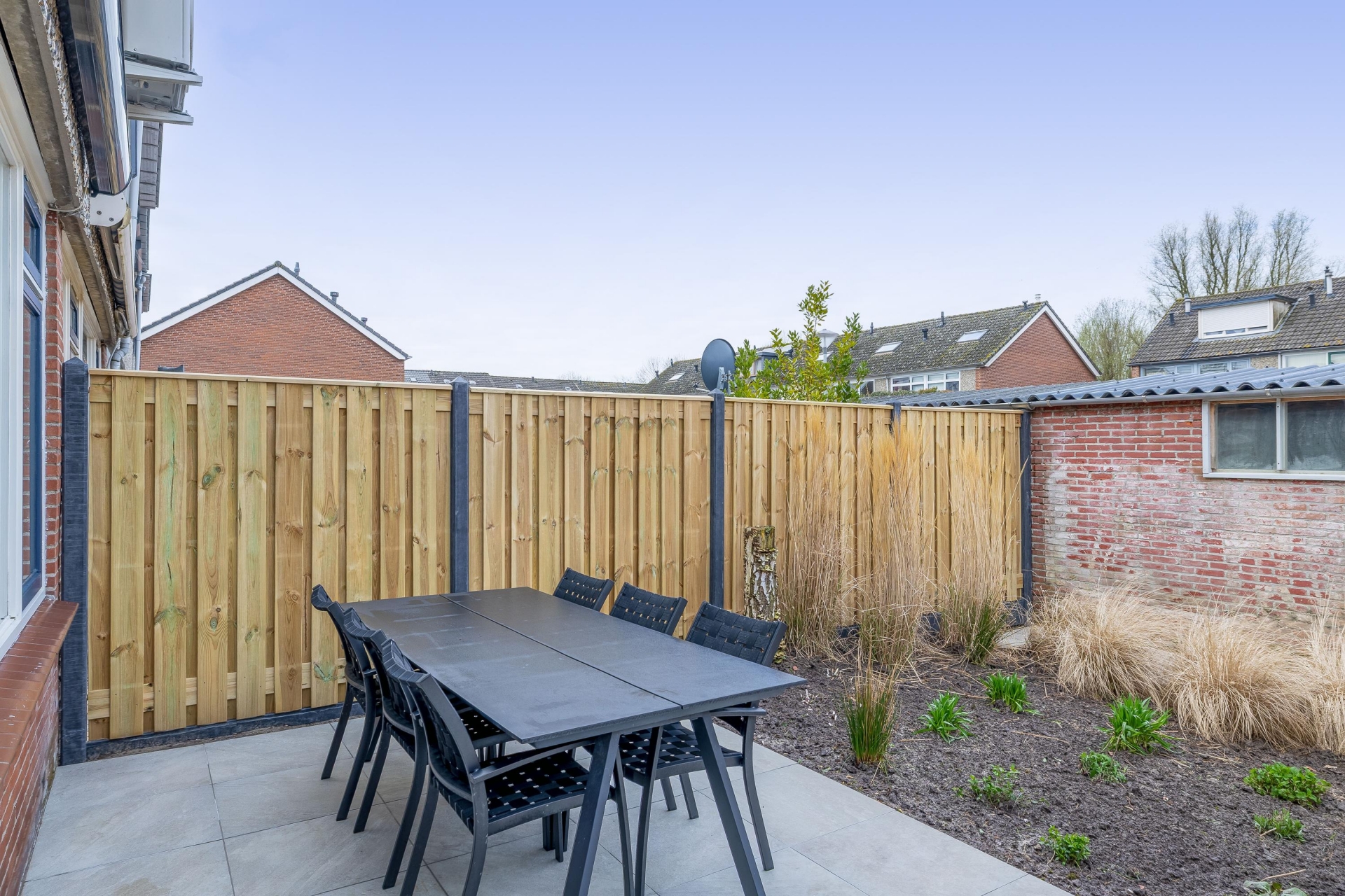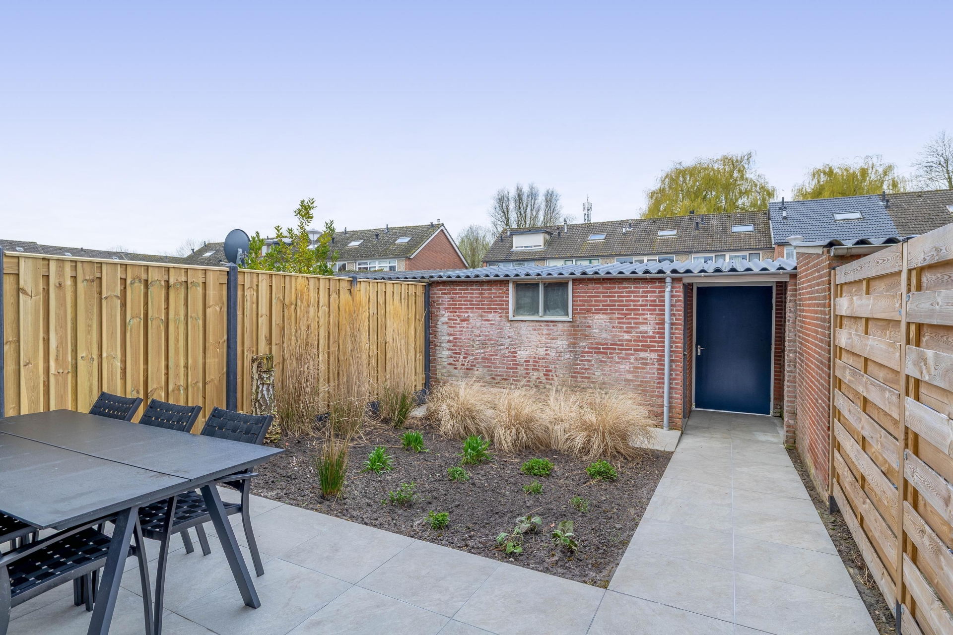 De achtertuin is een van de sterke punten van dit huis. Gelegen op het westen betekent dat je hier volop van de middag- en avondzon kunt genieten. De tuin is verzorgd aangelegd en onderhoudsvriendelijk, met een terras waar je heerlijk kunt zitten en een groen gedeelte dat voor sfeer zorgt. Achterin vind je een praktische berging en een achterom.