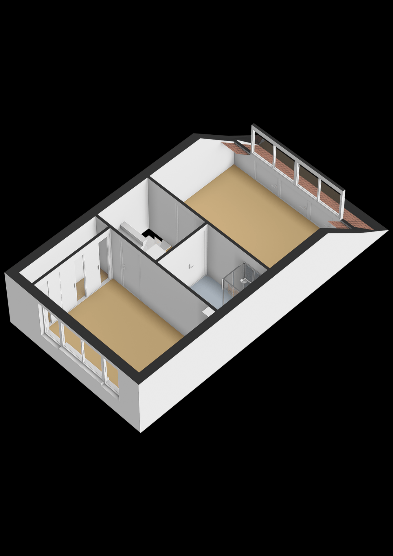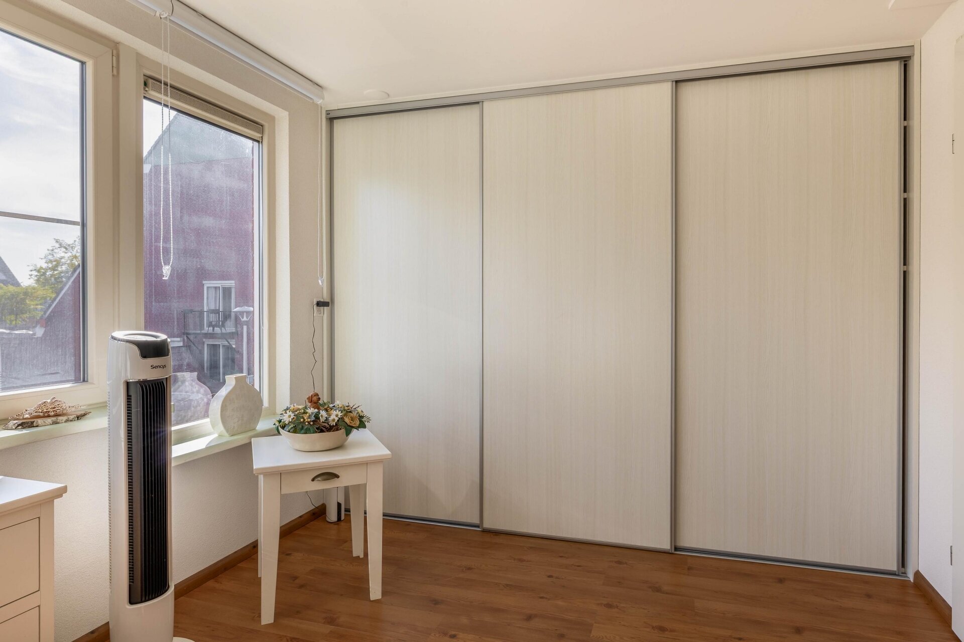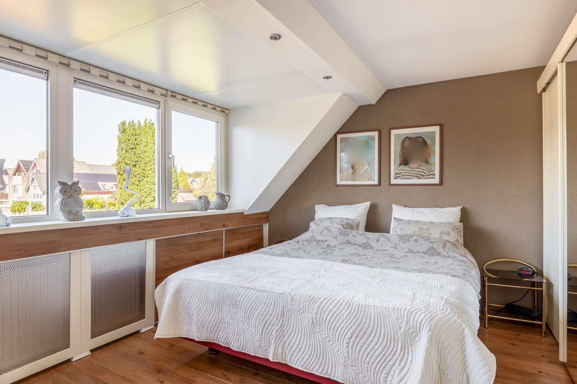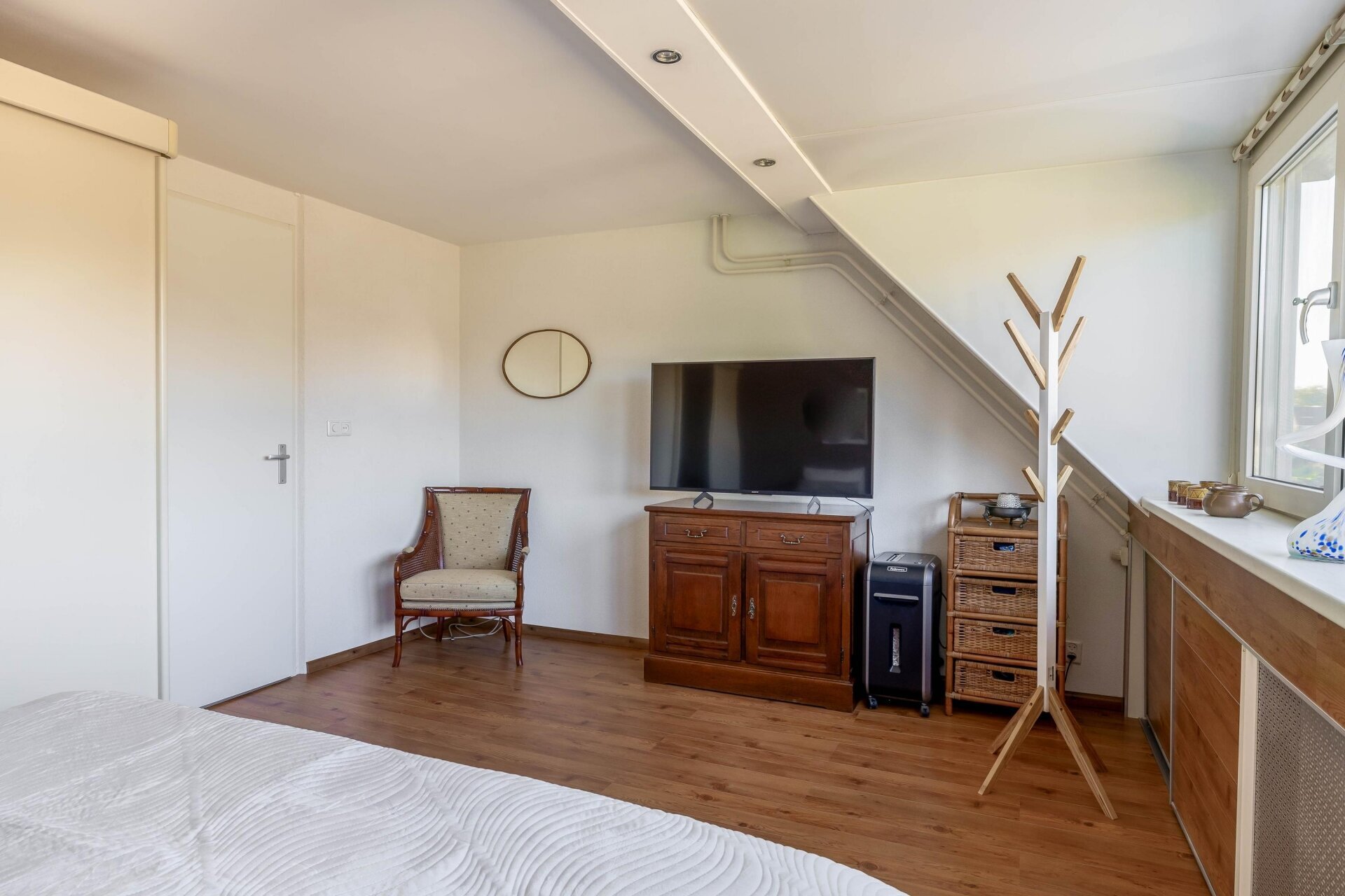 De royale master bedroom bevindt zich aan de achterzijde en is ontstaan door twee kamers samen te voegen. Deze kamer is voorzien van een kunststof dakkapel en handige knieschotten. Aan de voorzijde vind je een tweede slaapkamer met verhuisraam en schuifkastenwand. De centrale badkamer is compleet ingericht met een douche, toilet, wastafelmeubel en een handdoekradiator.