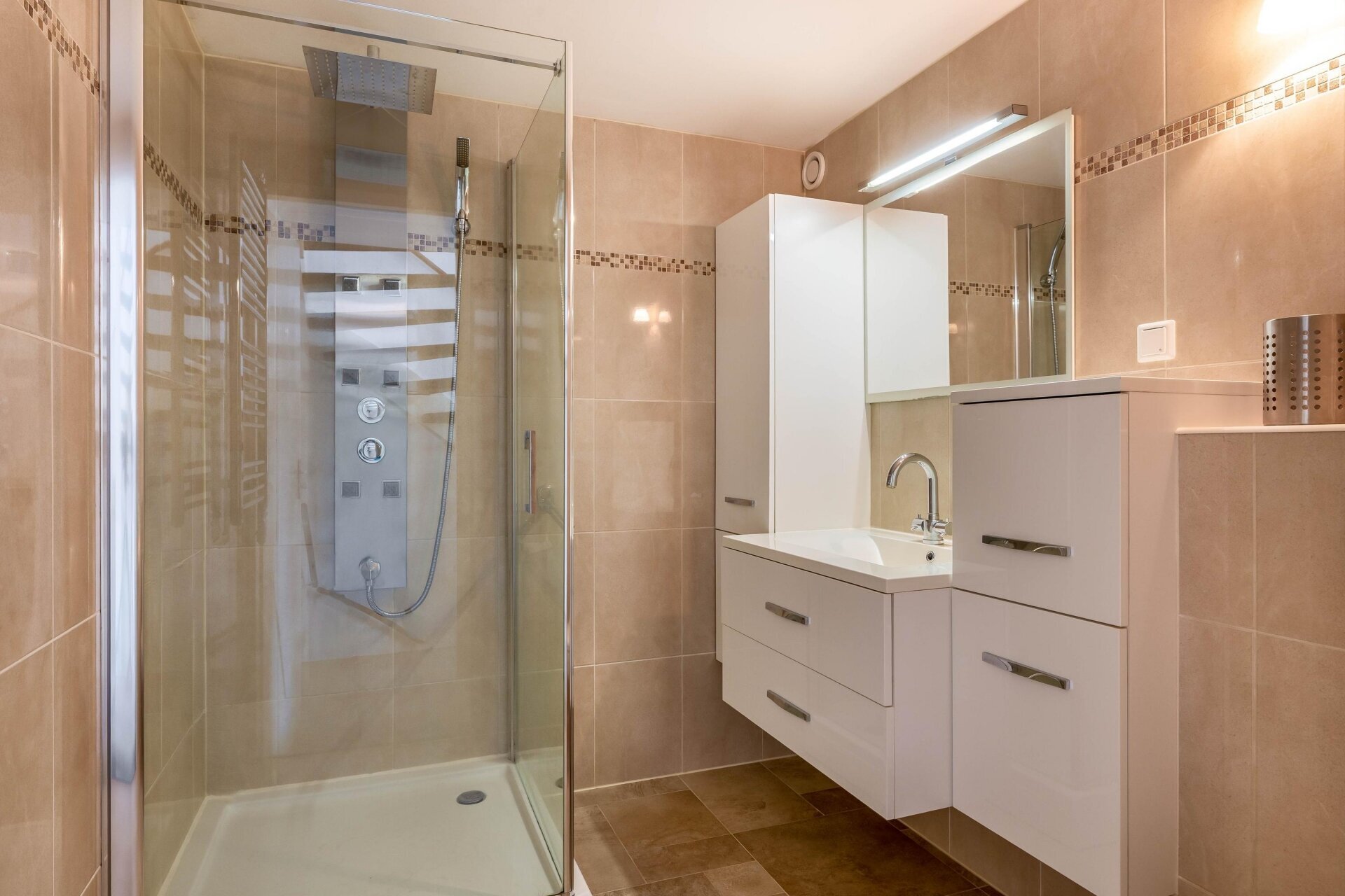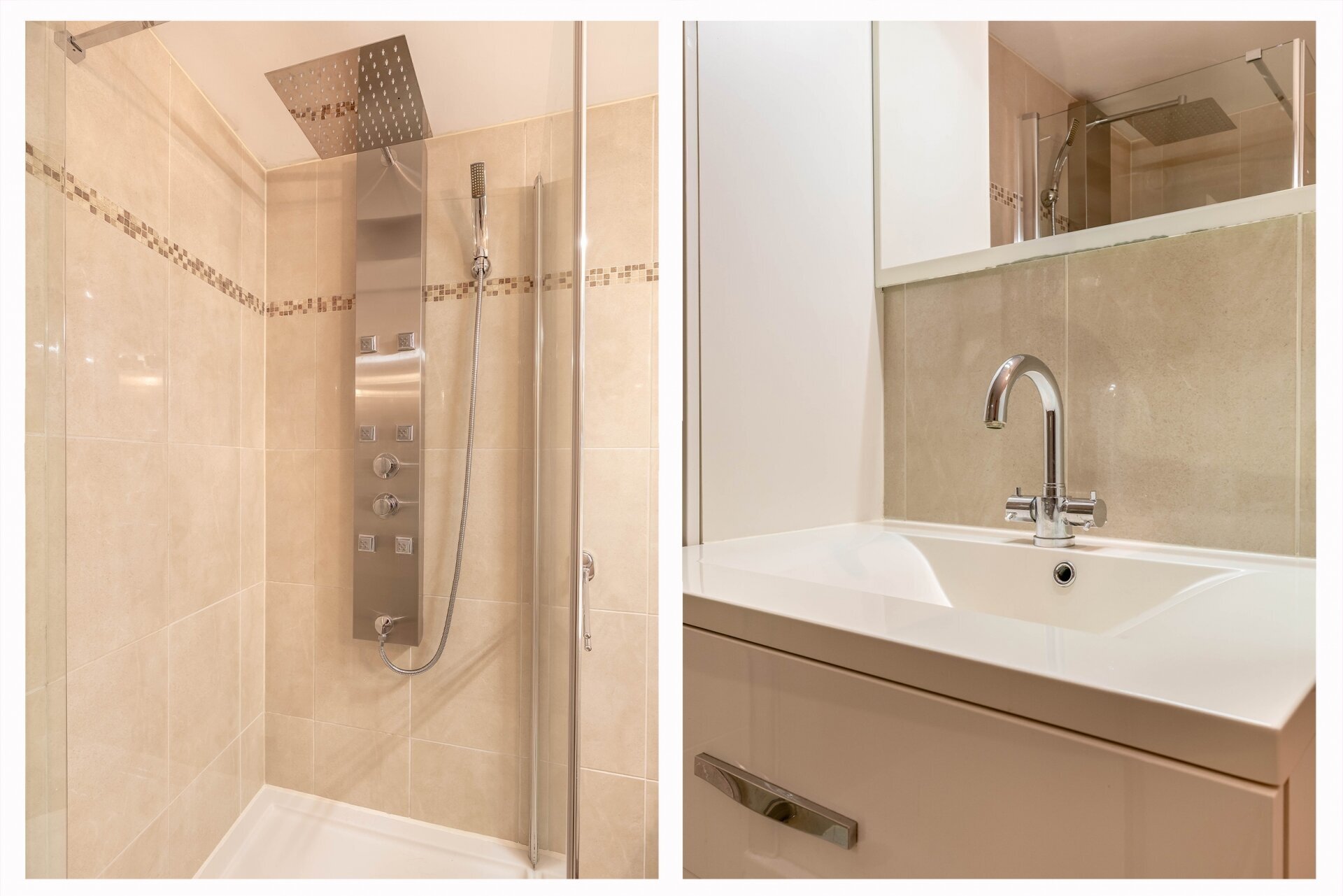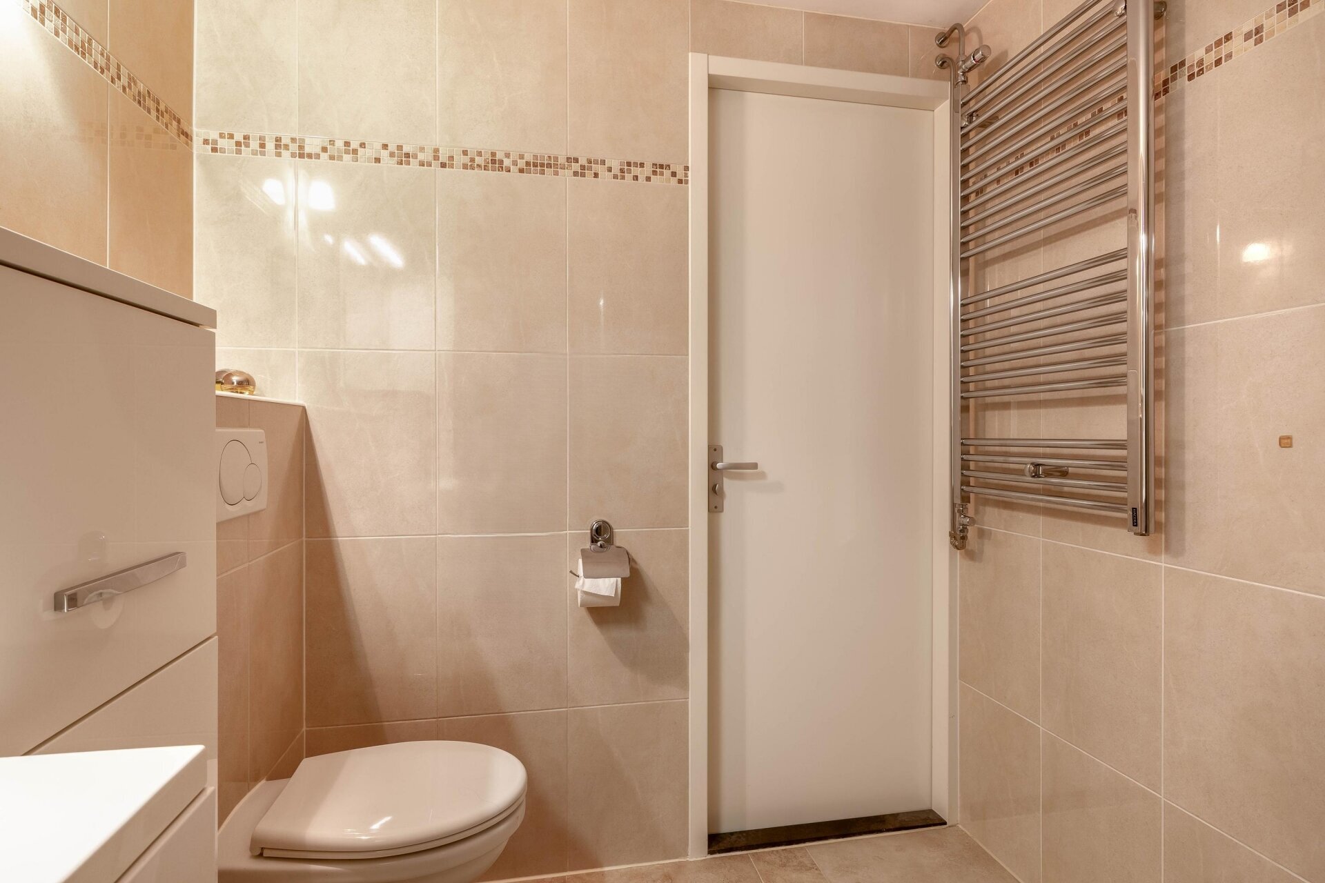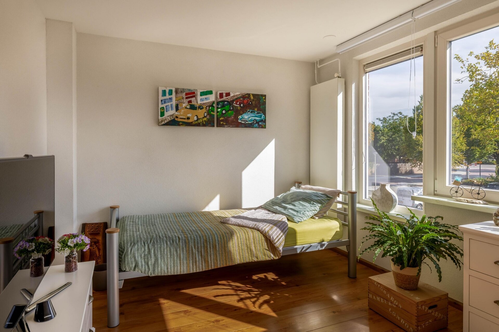 De royale master bedroom bevindt zich aan de achterzijde en is ontstaan door twee kamers samen te voegen. Deze kamer is voorzien van een kunststof dakkapel en handige knieschotten. Aan de voorzijde vind je een tweede slaapkamer met verhuisraam en schuifkastenwand. De centrale badkamer is compleet ingericht met een douche, toilet, wastafelmeubel en een handdoekradiator.