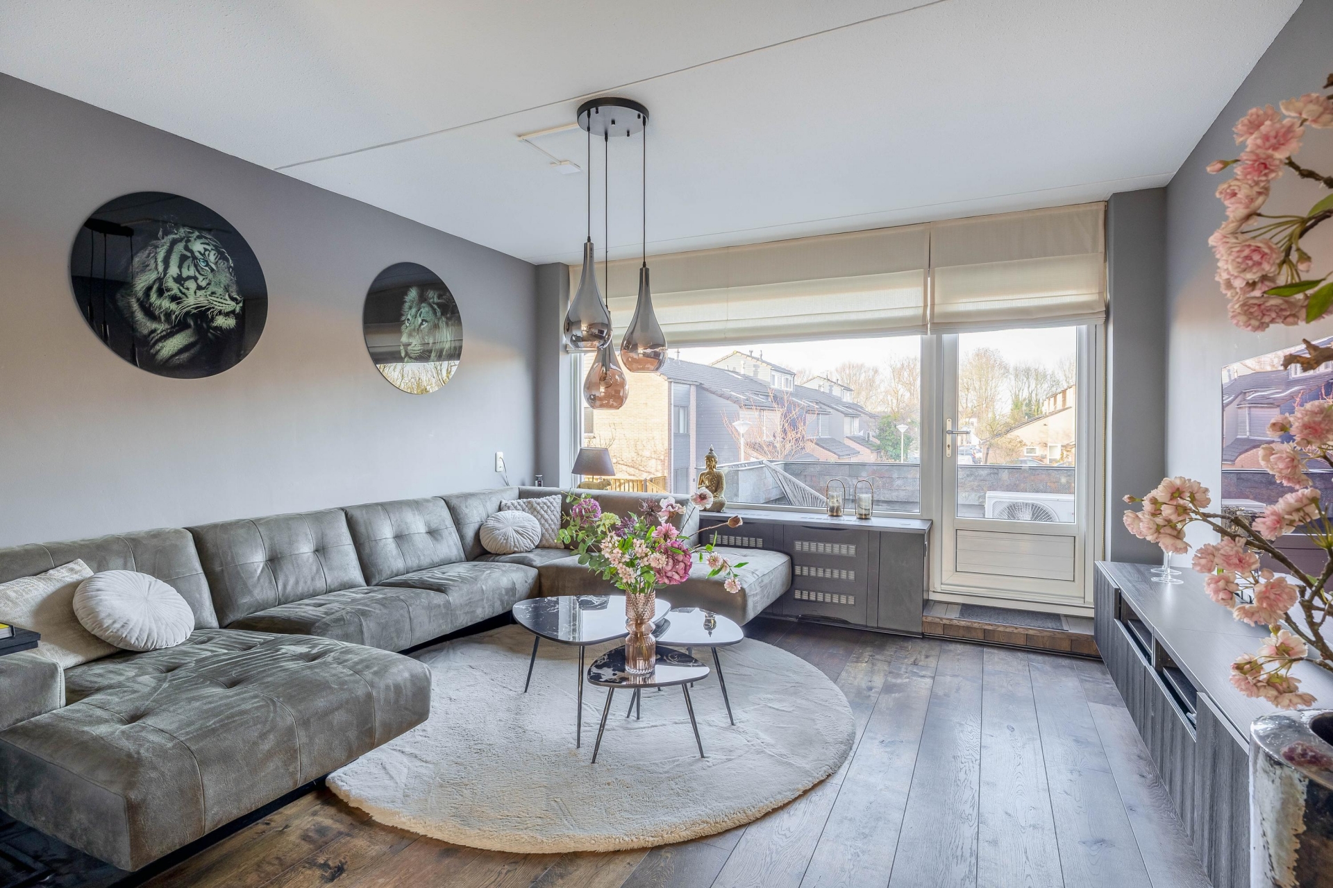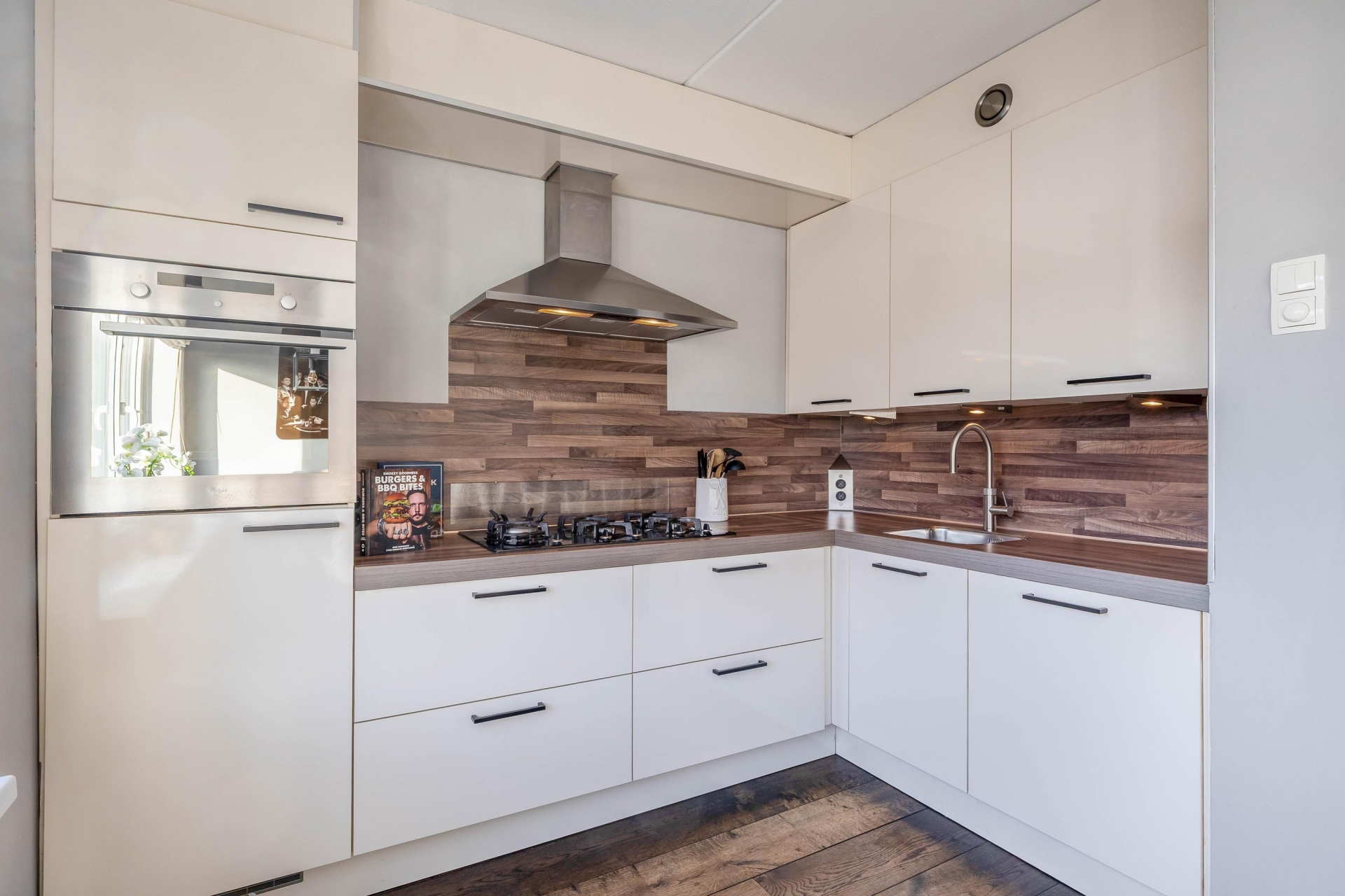 De eerste verdieping is de echte leefverdieping. Hier vind je een diepe woonkamer met een warme houten vloer en veel lichtinval. Doordat je op hoogte woont, heb je een vrijer uitzicht en stap je vanuit de woonkamer zo het balkon aan de voorzijde op, gelegen op het westen. Een heerlijke plek om na het werk nog even van de zon te genieten. Aan de achterzijde ligt de open keuken in hoekopstelling. Deze is voorzien van onder andere een 5-pits gasfornuis met wokbrander, oven, koelkast, vaatwasser en een Quooker. Een fijne, centrale plek waar koken en samenzijn samenkomen.