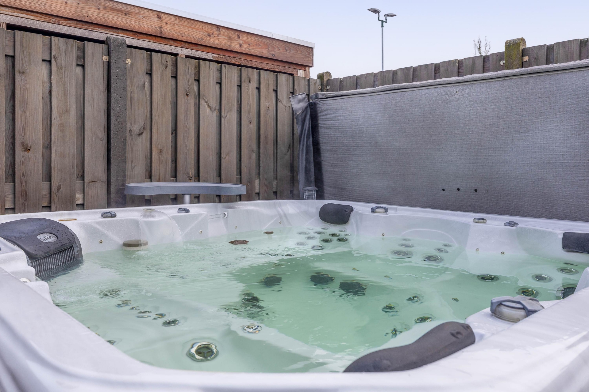 De achtertuin is onderhoudsvriendelijk aangelegd en volledig betegeld. Hier geniet je in de ochtend en vroege middag van de zon, doordat de tuin op het oosten ligt. De jacuzzi is aangesloten op een eigen groep en er is elektra aanwezig. Aan de voorzijde parkeer je eenvoudig op je eigen oprit, waar al een aansluiting voor een laadpaal is voorbereid.