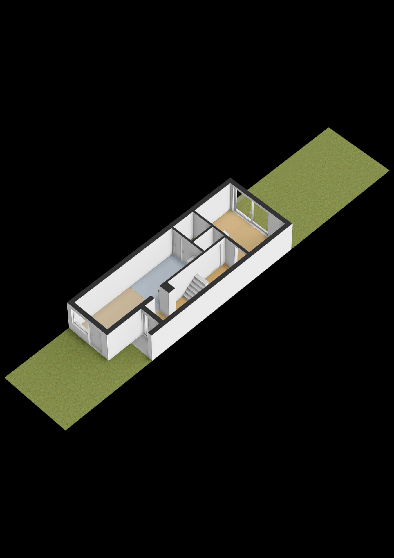 Dit huis is oorspronkelijk gebouwd als drive-in woning en dat merk je aan de praktische en veelzijdige indeling. Op de begane grond kom je binnen in een ruime hal met modern toilet. Aan de voorzijde bevindt zich een grote kamer met een eigen entree. Deze ruimte is voorzien van een praktisch keukenblok en leent zich perfect als thuiskantoor, praktijkruimte of salon aan huis, maar kan net zo goed worden gebruikt als woon- of slaapkamer. Aan de achterzijde ligt de tuinkamer met een brede schuifpui naar de achtertuin. Dankzij de strakke wandafwerking, inbouwverlichting en pvc vloer voelt deze verdieping direct verzorgd aan.